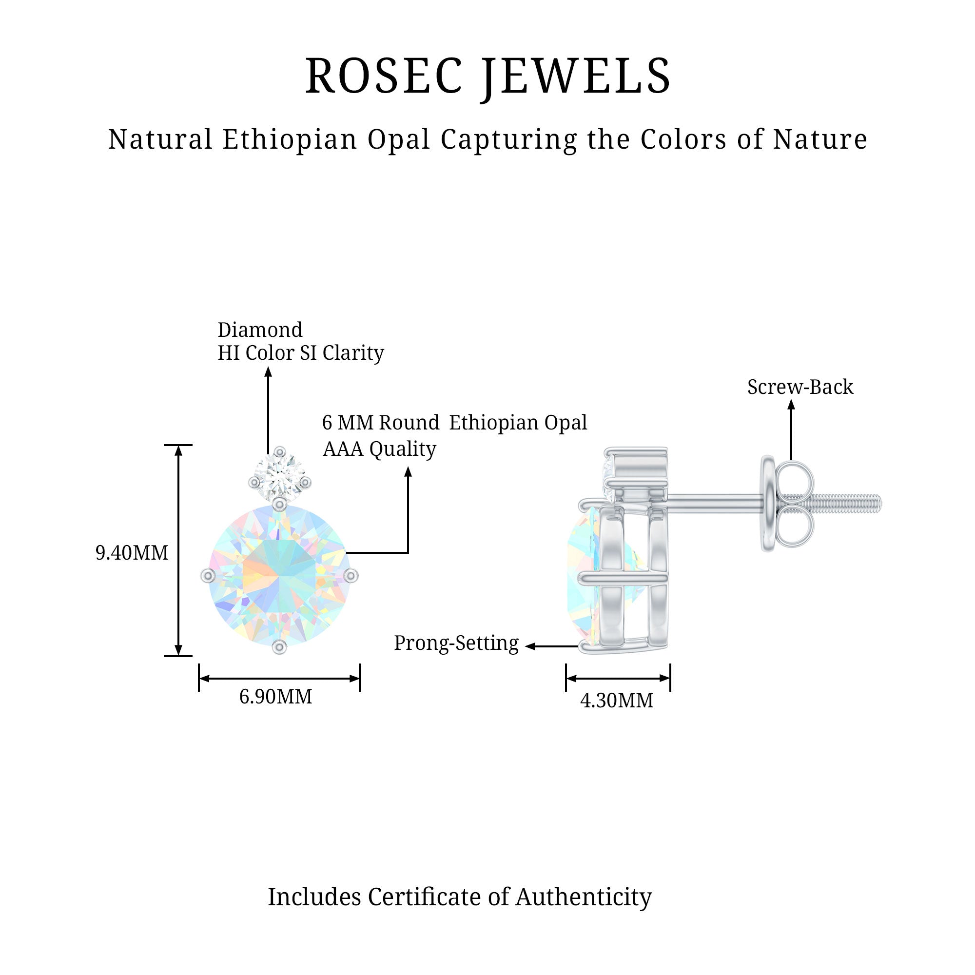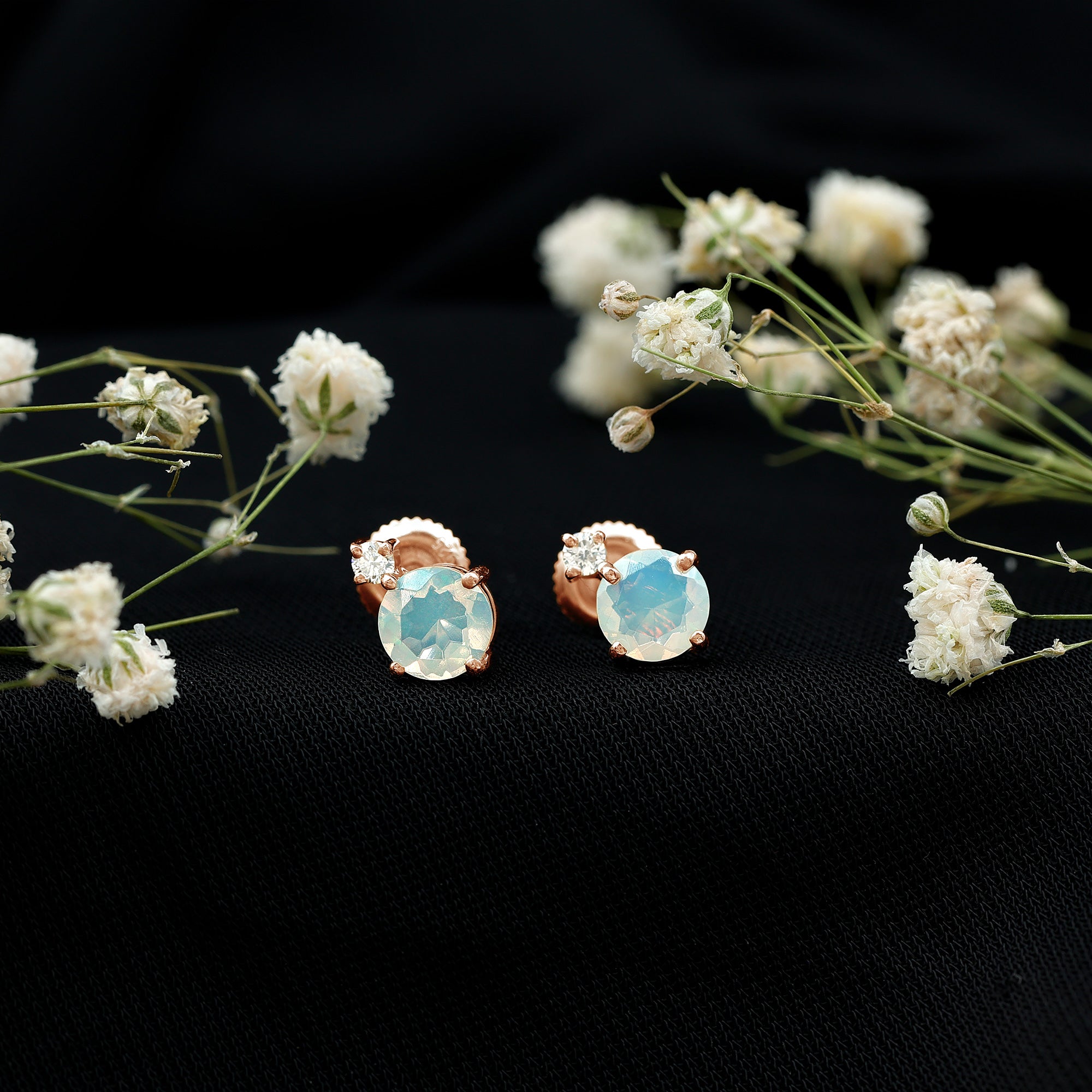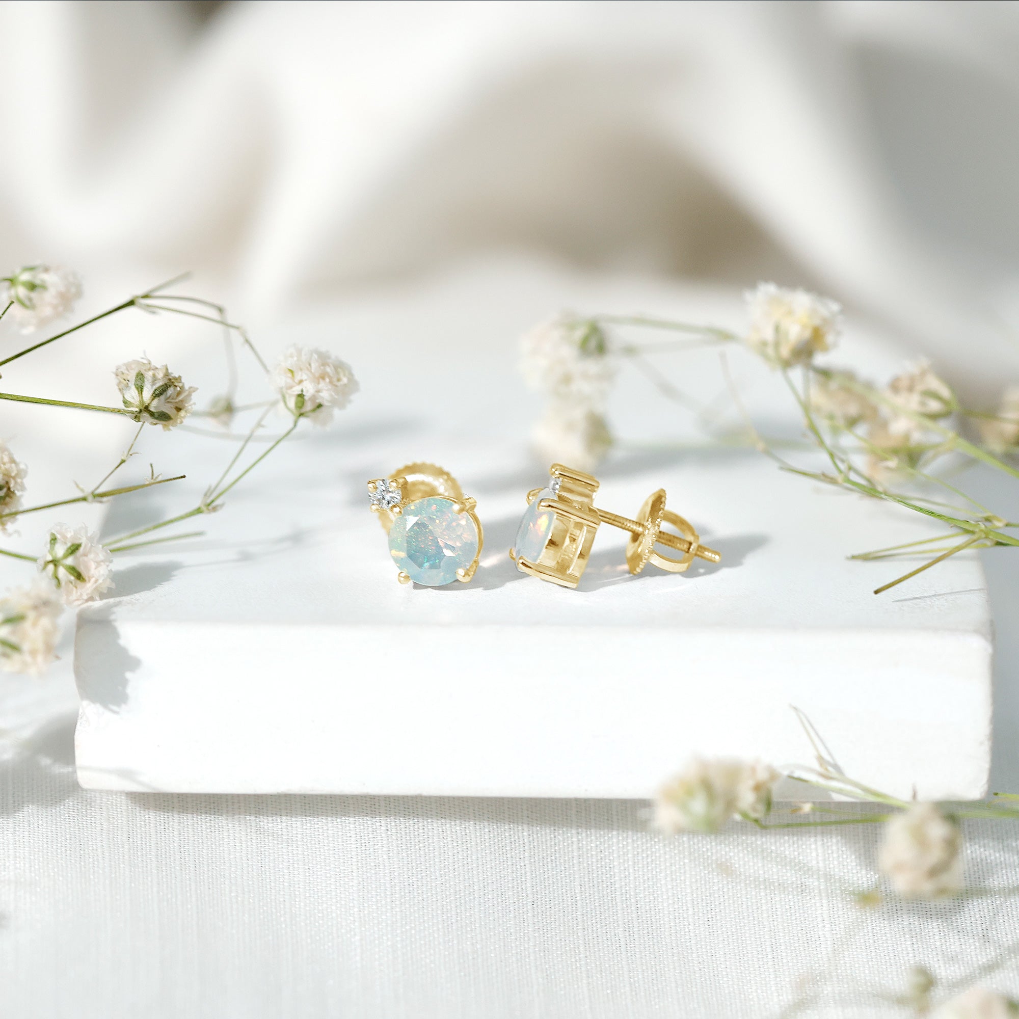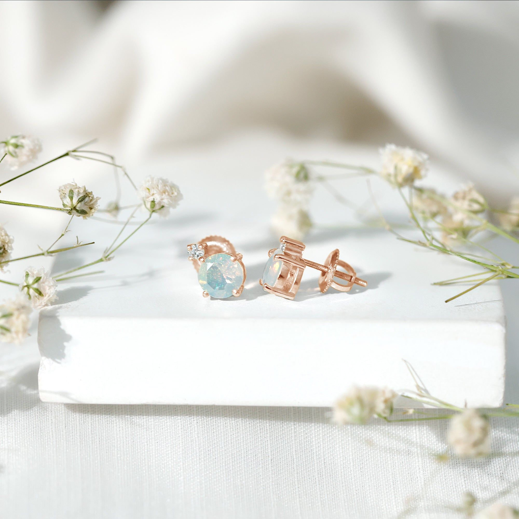 Had your eyes got stuck on such beautiful Opal Stud Earrings that truly reflect like a rainbow? Having a lustrous shine these Solitaire Stud Earrings are subtle and gives a sophisticated look to your outfits. Adorned with Round Shape Ethiopian Opal in Prong Setting with a Diamond on the top of these Stud Earrings. Being classic and effortlessly stylish these Screw Back Stud Earrings are perfect for the day or the evening date. These Opal Studs makes stunning October birthstone jewelry and are the jewelry box staple.