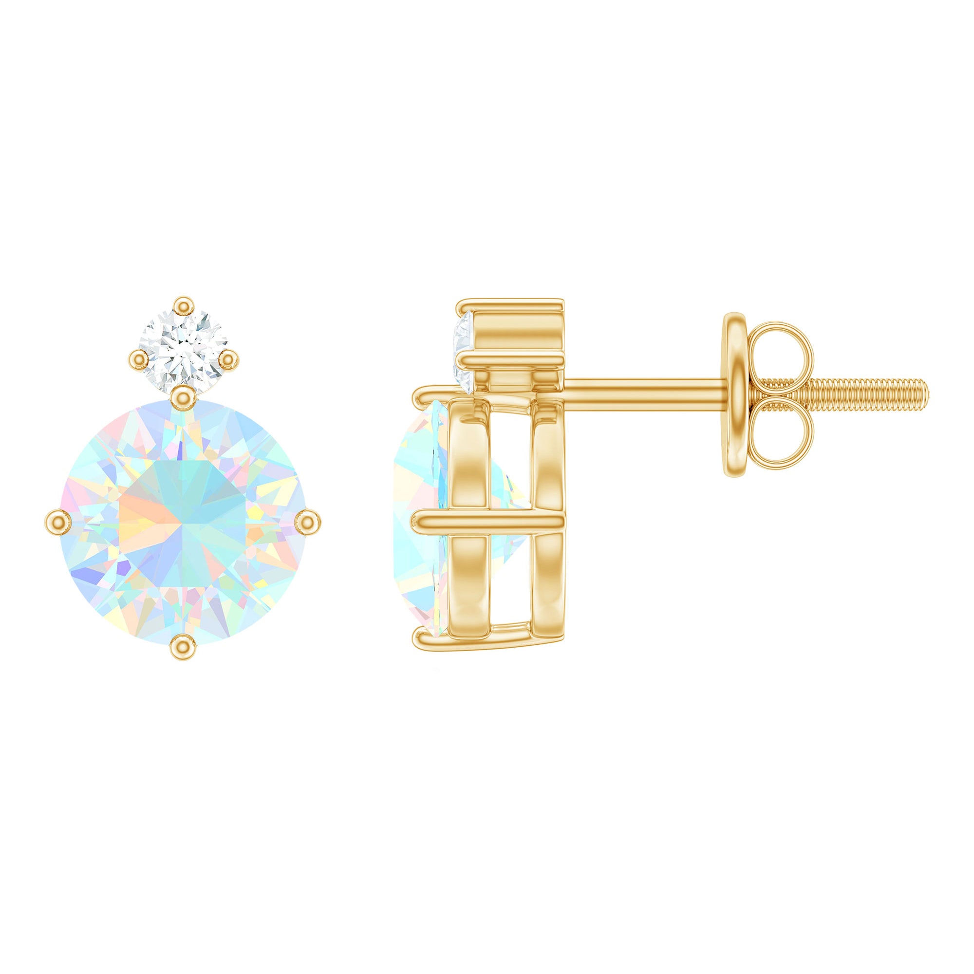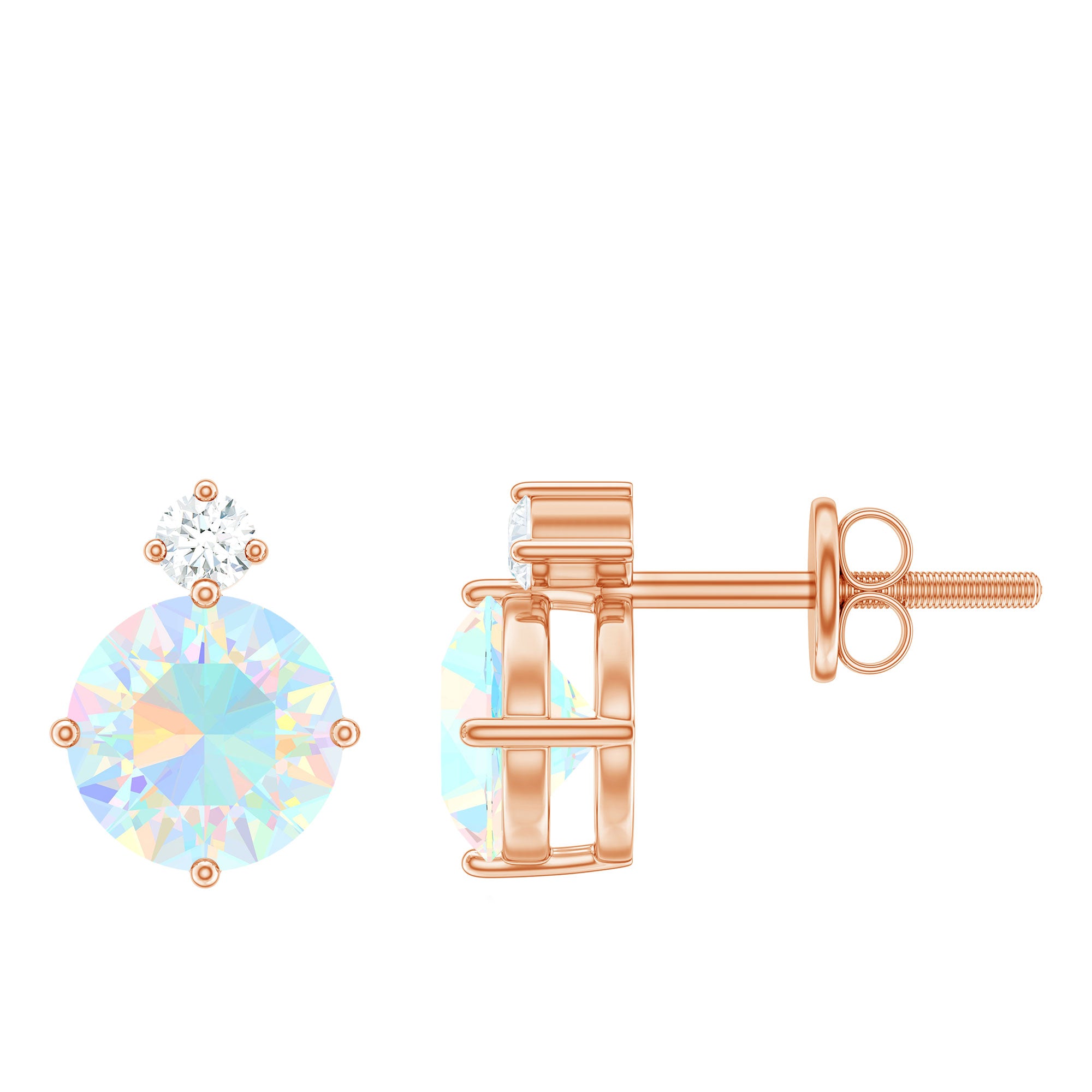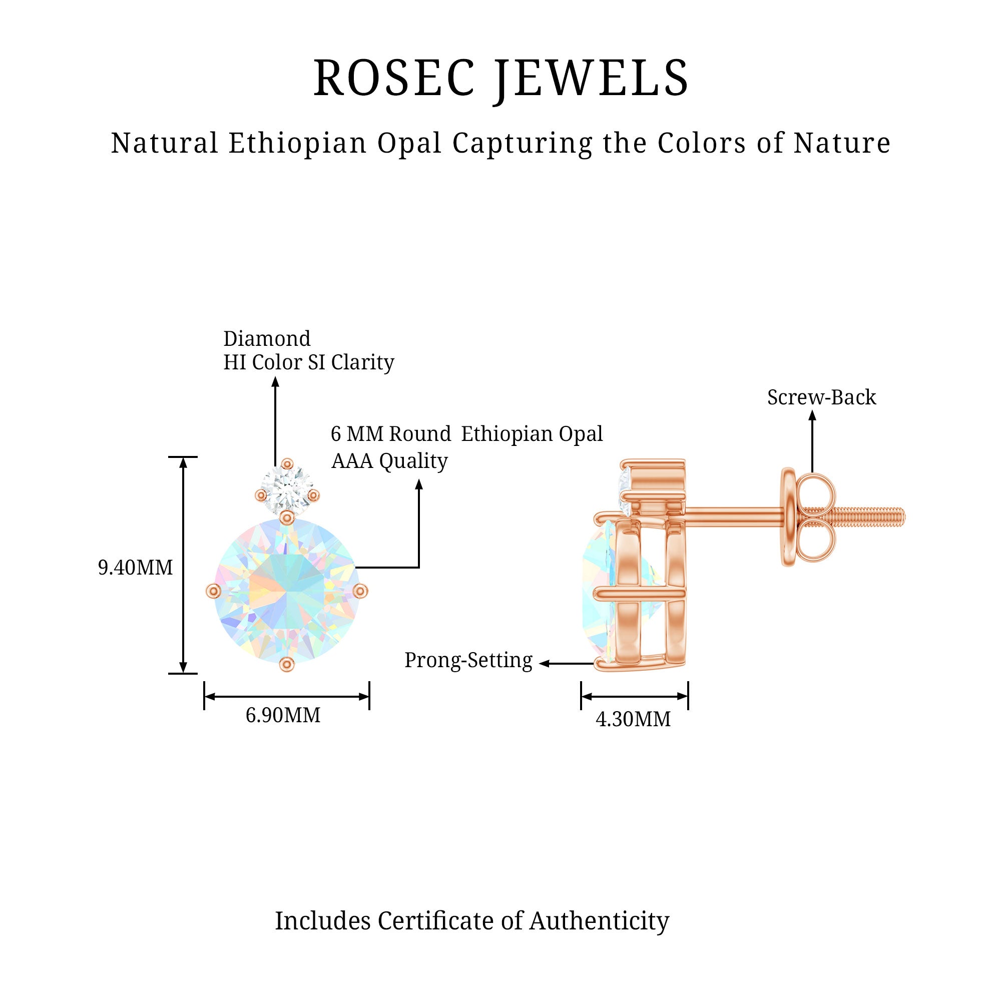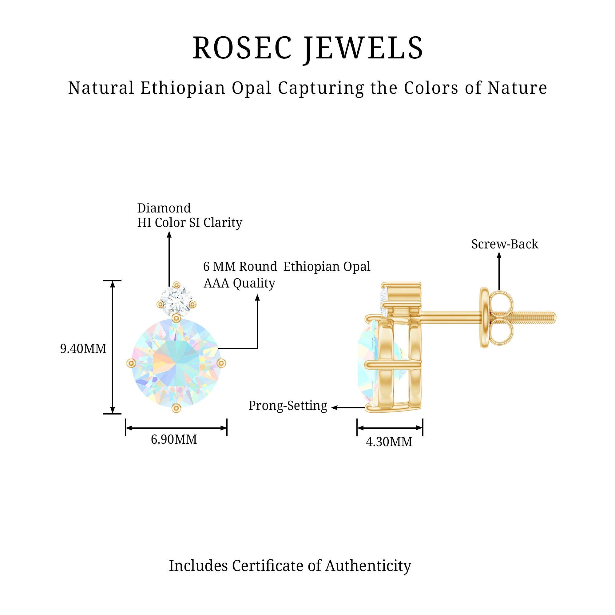 Had your eyes got stuck on such beautiful Opal Stud Earrings that truly reflect like a rainbow? Having a lustrous shine these Solitaire Stud Earrings are subtle and gives a sophisticated look to your outfits. Adorned with Round Shape Ethiopian Opal in Prong Setting with a Diamond on the top of these Stud Earrings. Being classic and effortlessly stylish these Screw Back Stud Earrings are perfect for the day or the evening date. These Opal Studs makes stunning October birthstone jewelry and are the jewelry box staple.