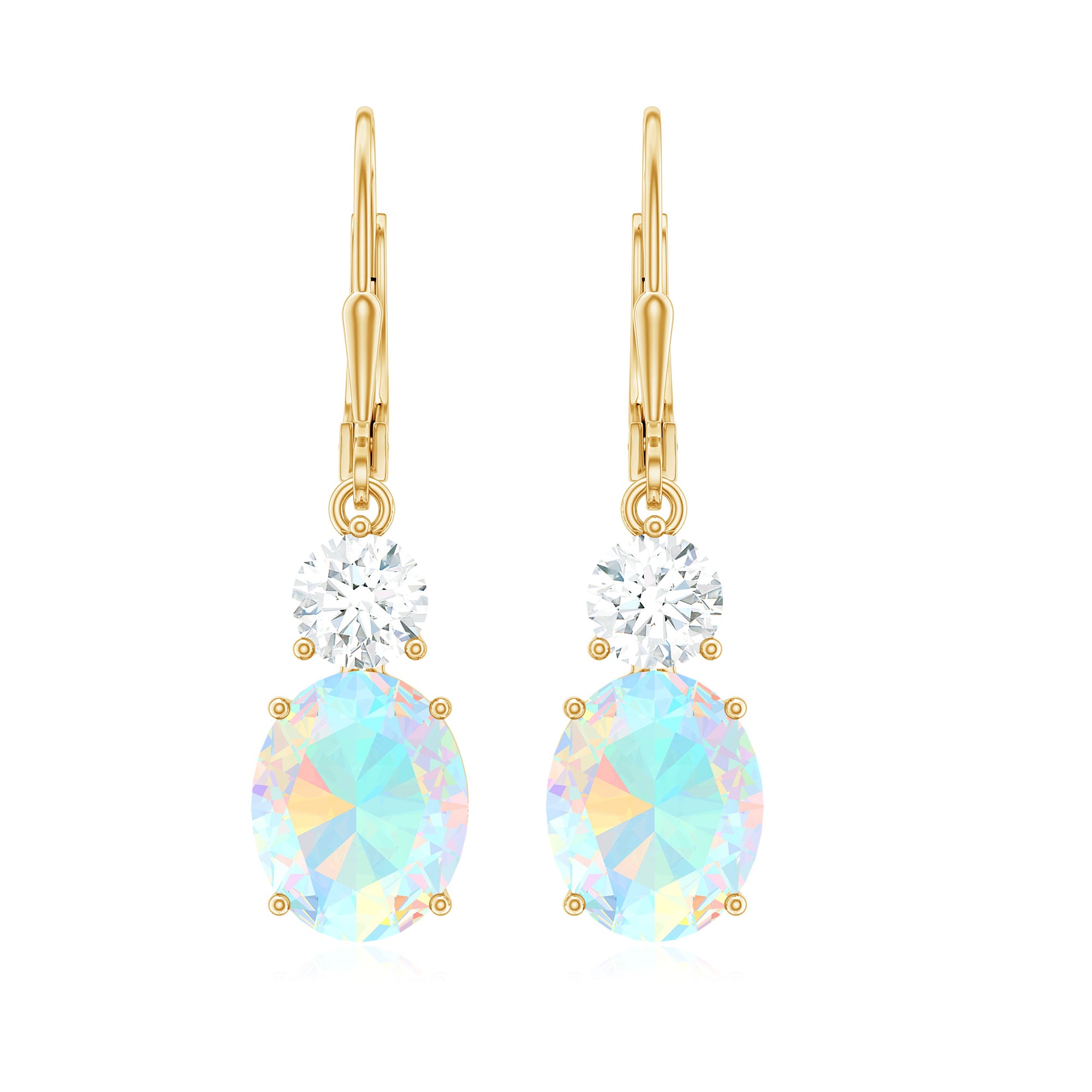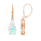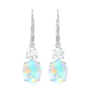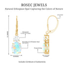 Oval Shape Ethiopian Opal Leverback Drop Earrings With Moissanite