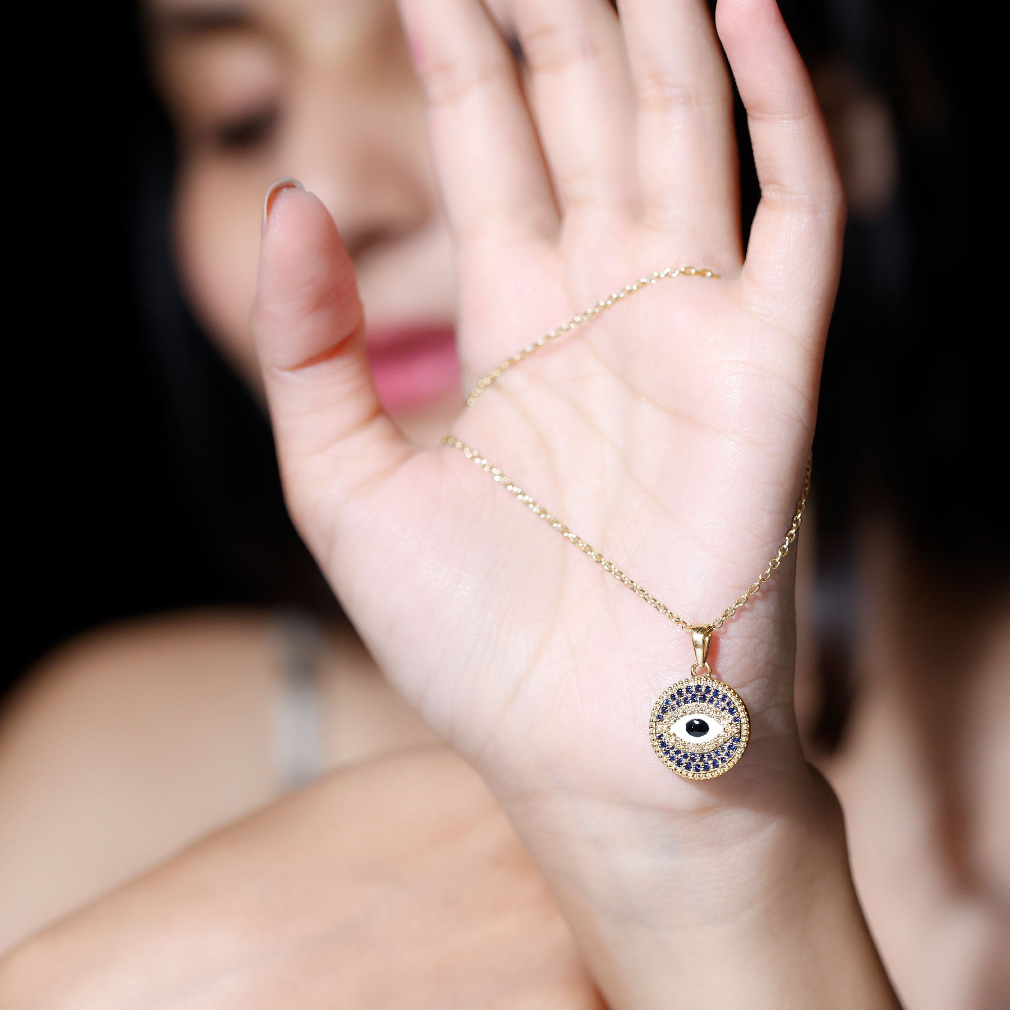 Evil Eye Necklace with Lab Grown Blue Sapphire and Moissanite