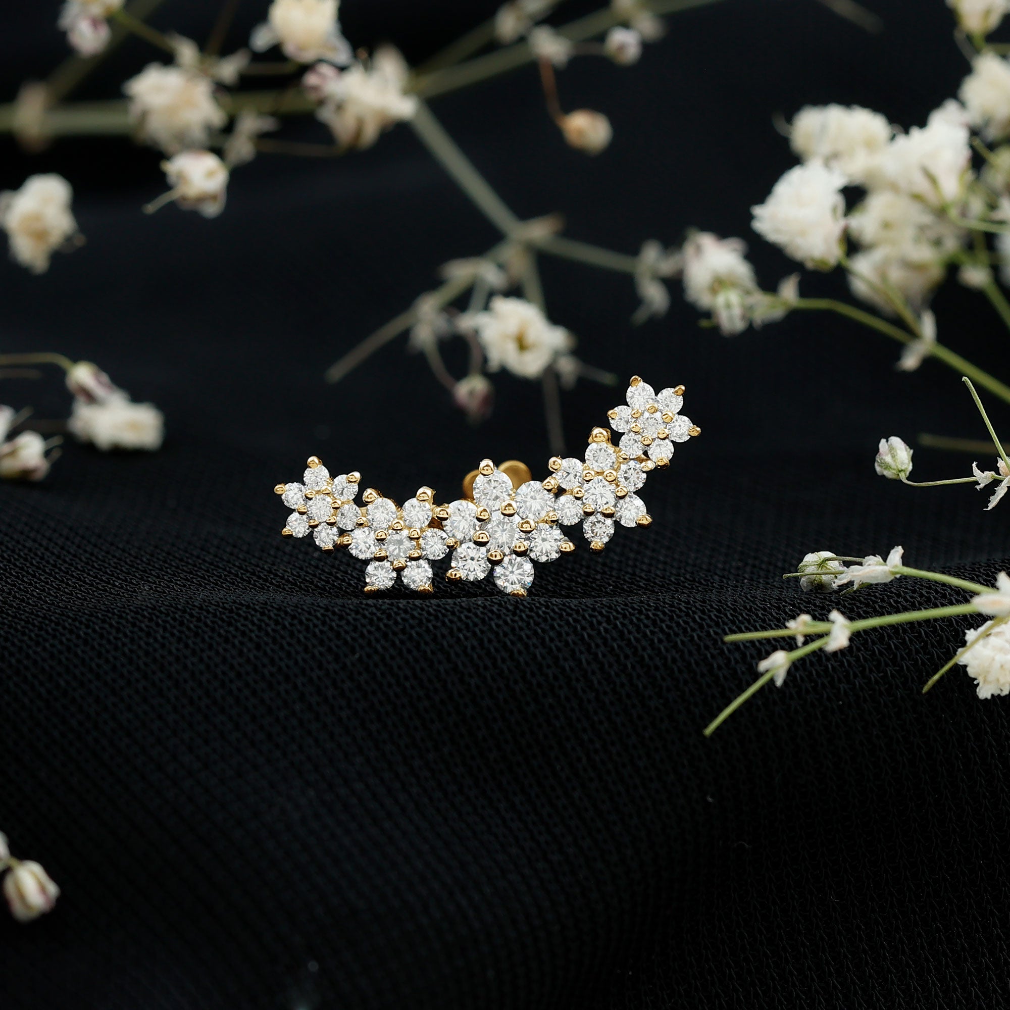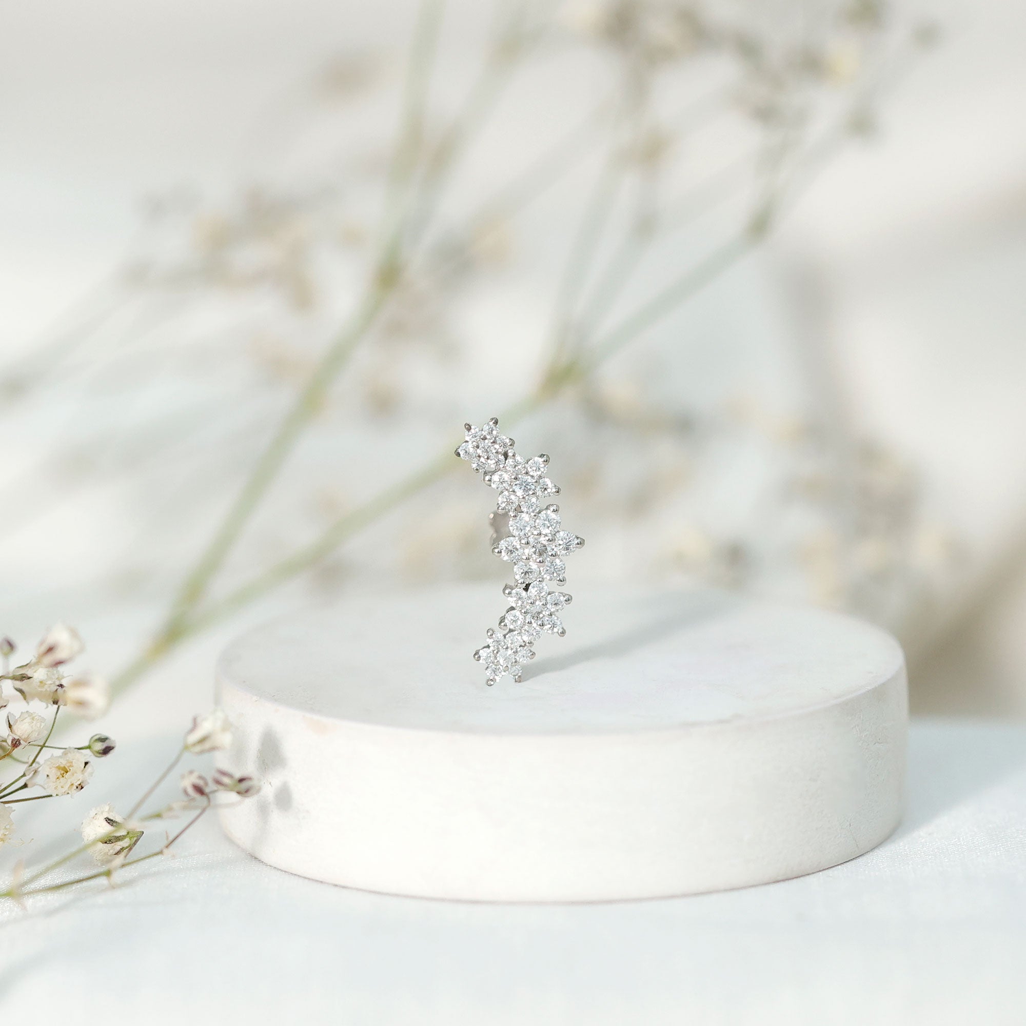 Exquisite Moissanite Flower Inspired Crawler Earring