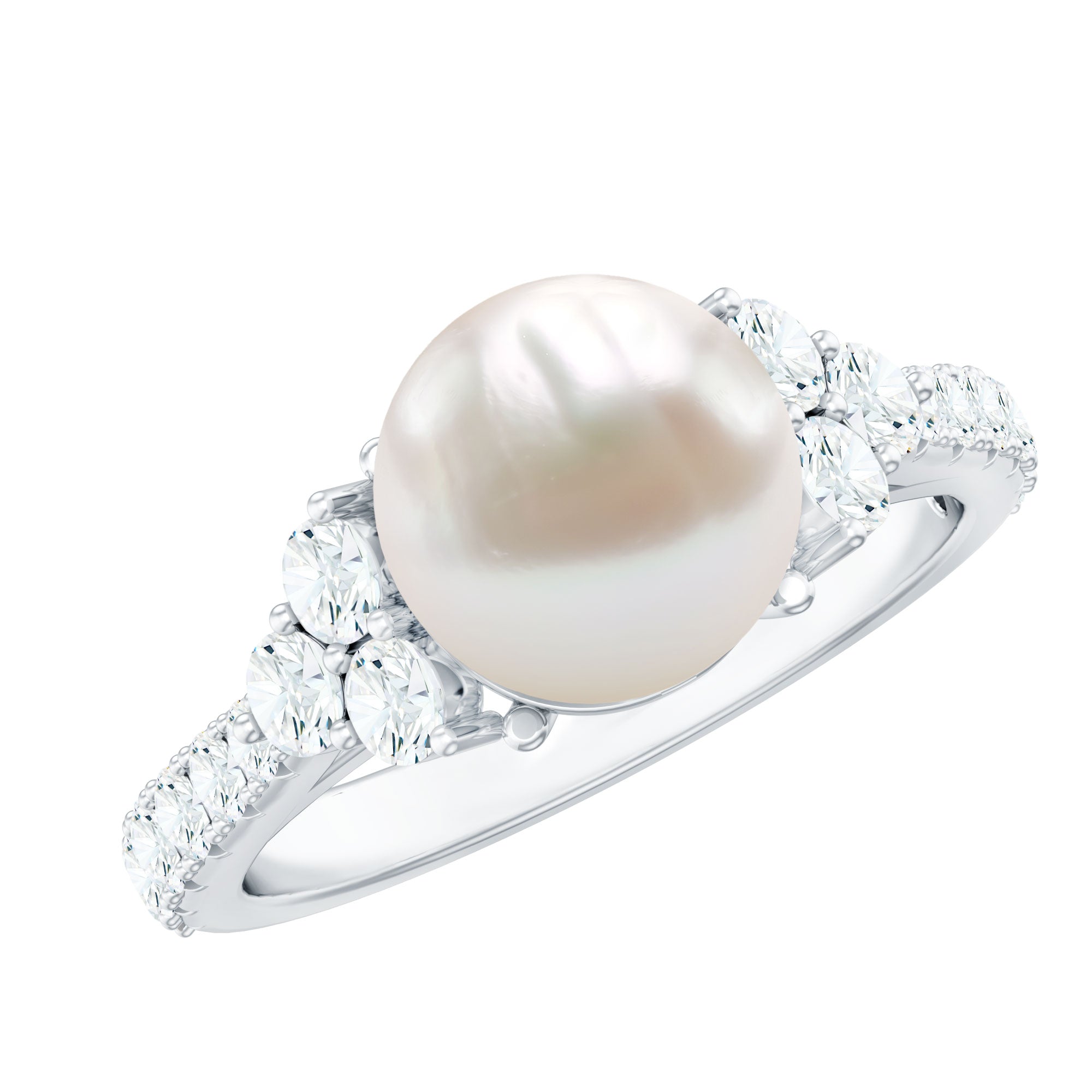 Exuberant Freshwater Pearl and Diamond Engagement Ring