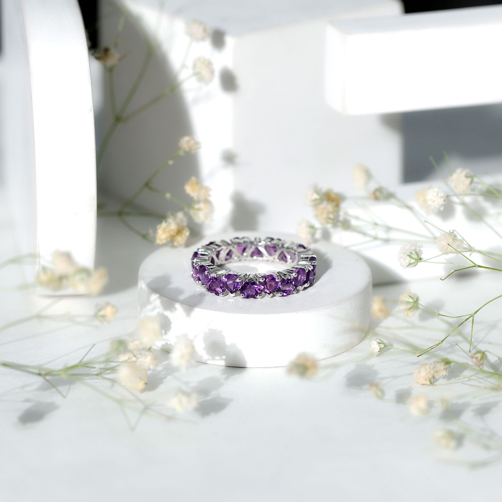February Birthstone Amethyst Heart Eternity Ring in Gold