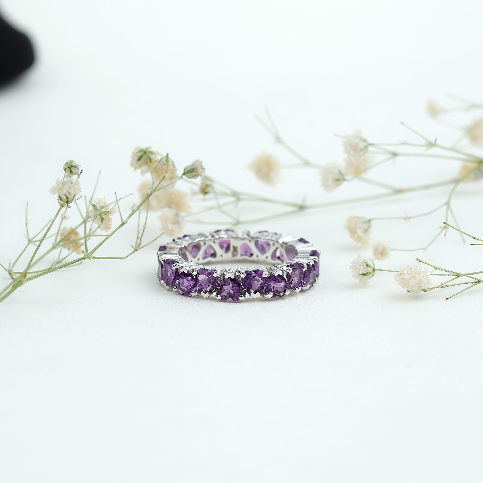 Celebrate your timeless love with this stunning Full Eternity Ring made of Solid Gold. It features Heart Shape Amethyst stones set in Claw Settings for a luxurious touch. Give your significant other this beautiful ring to symbolize your everlasting love.