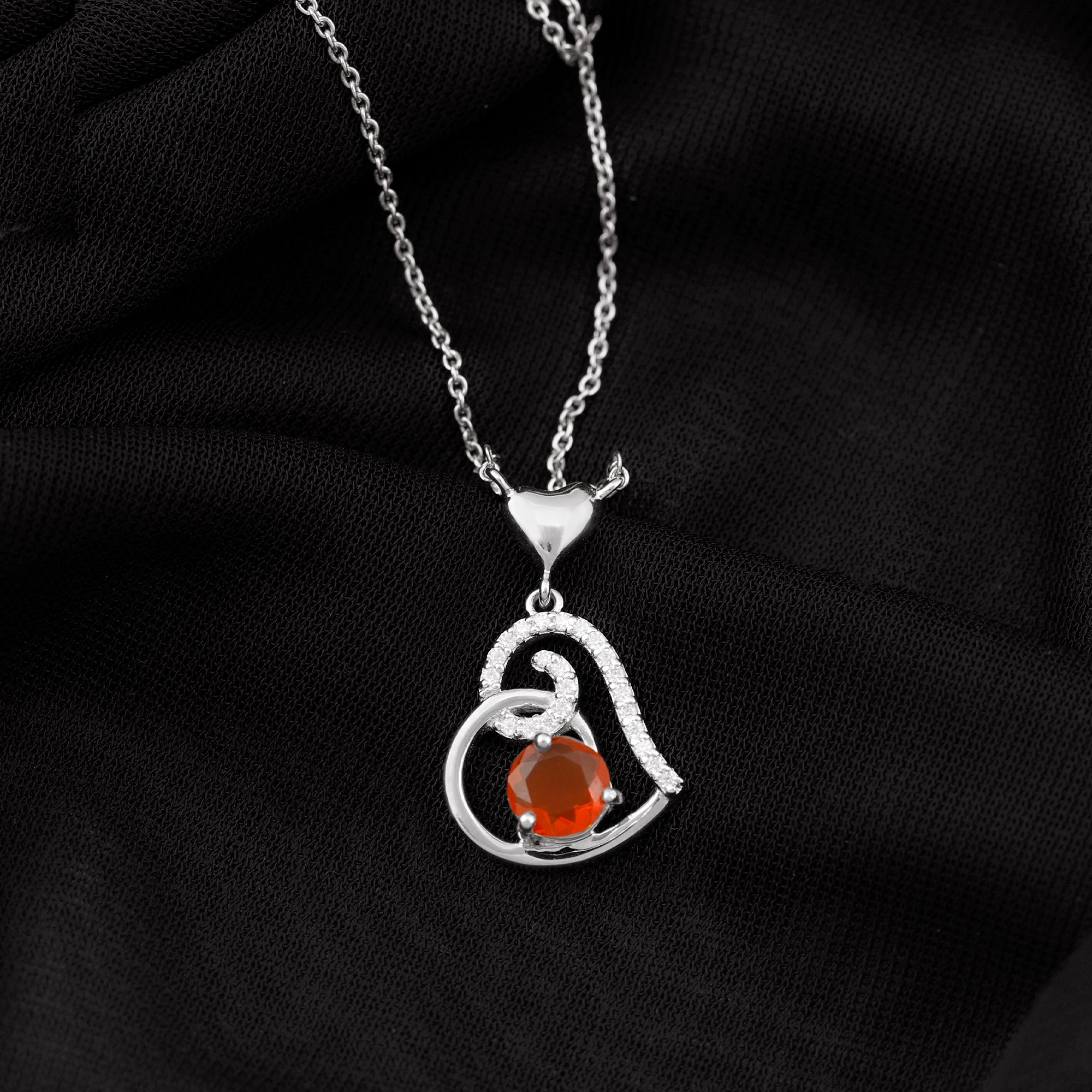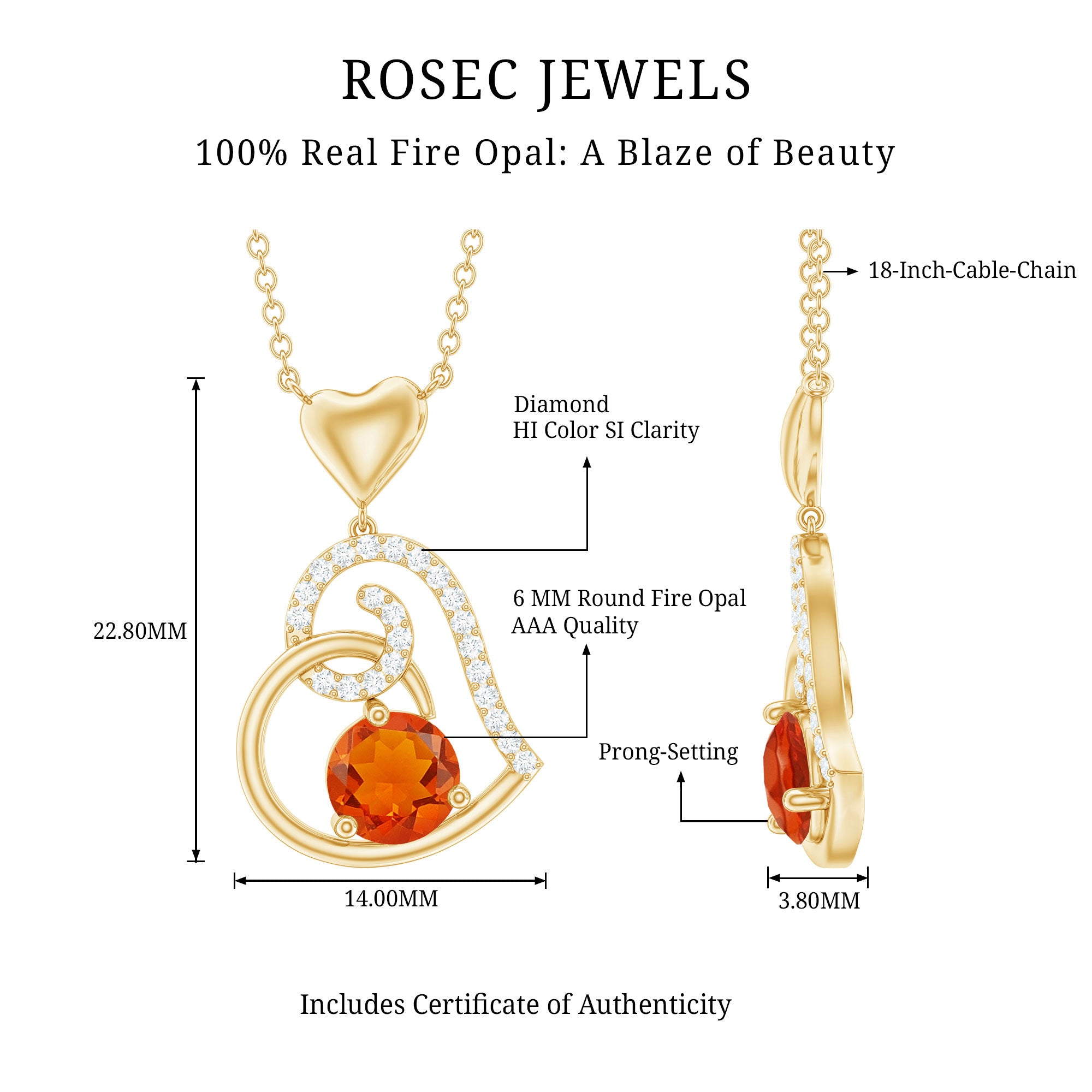 Be Dazzle with these beautiful Heart Drop Pendant embellished with Round Shape Fire Opal as Solitaire in 3 Prong Setting and Round Shape Diamond in Prong Setting, Crafted in Solid Gold.