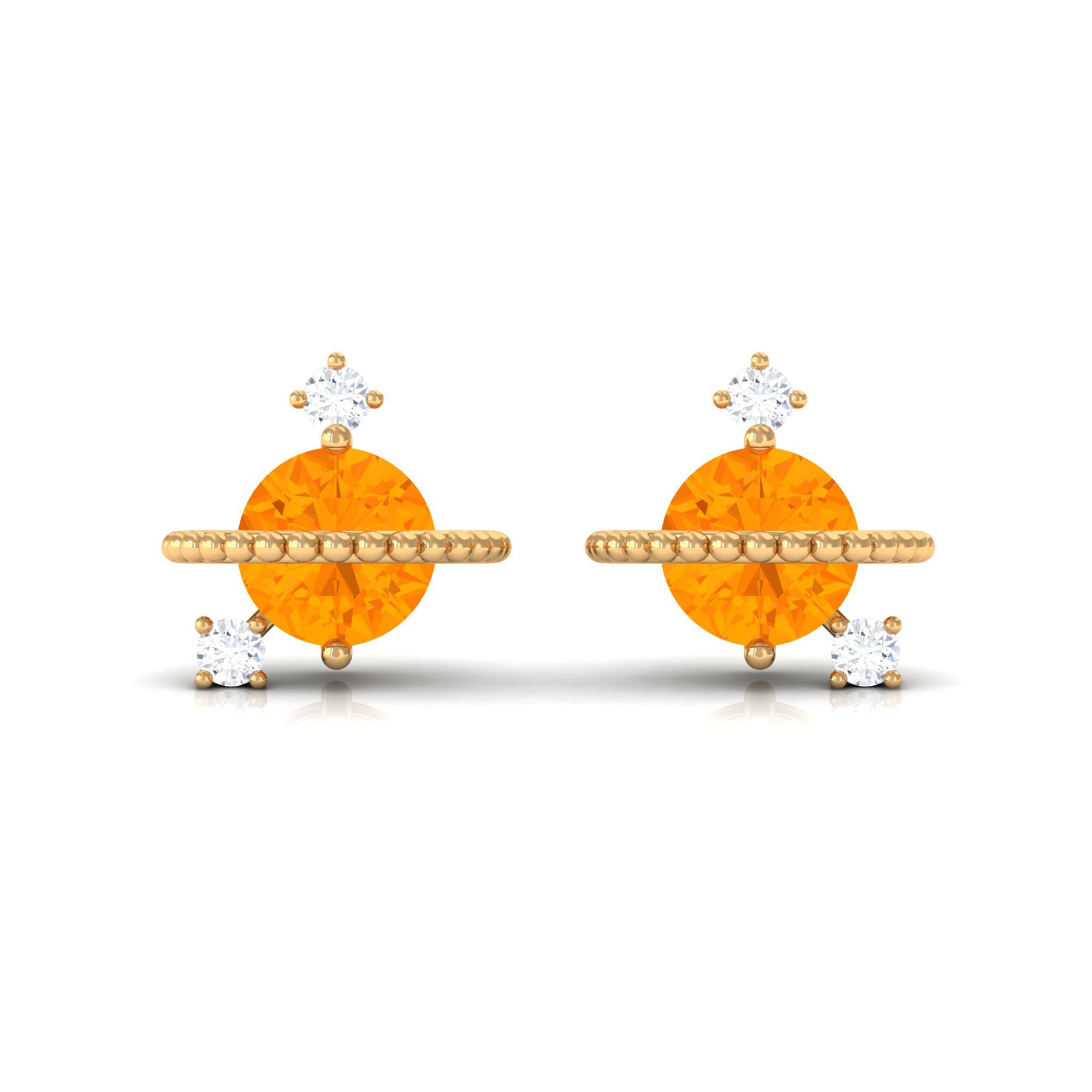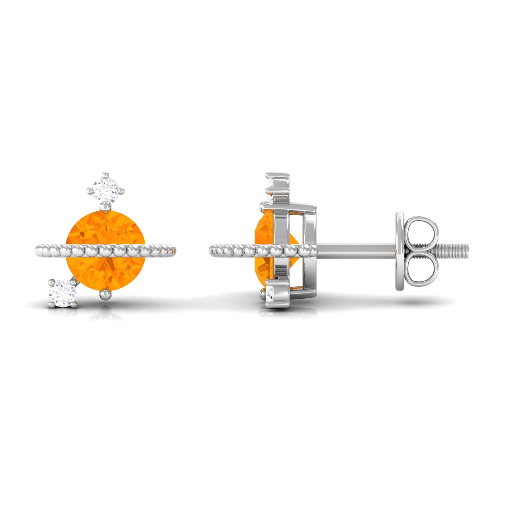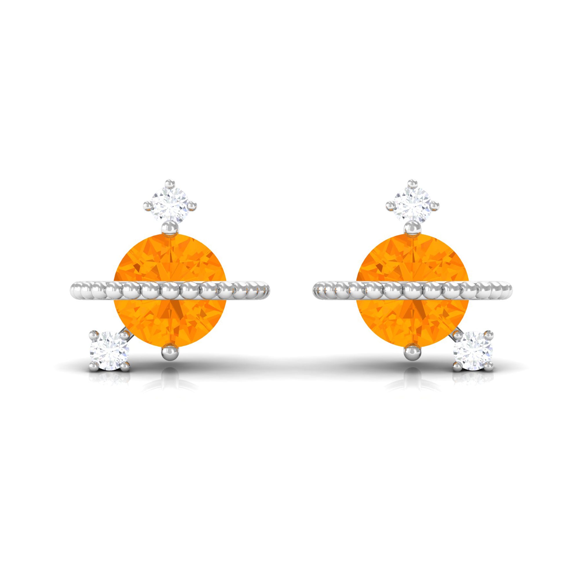 Fire Opal Contemporary Celestial Stud Earrings with Diamond