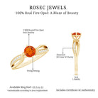 Make a brilliant statement of love with our dazzling Solitaire Engagement Ring-a perfect choice for the one you cherish. This captivating piece showcases a stunning Round Shape Fire Opal, elegantly cradled in a diagonal prong setting, accentuated by Round Diamond gems gracing the infinity shank. This Infinity Engagement Ring embodies both beauty and enduring commitment.