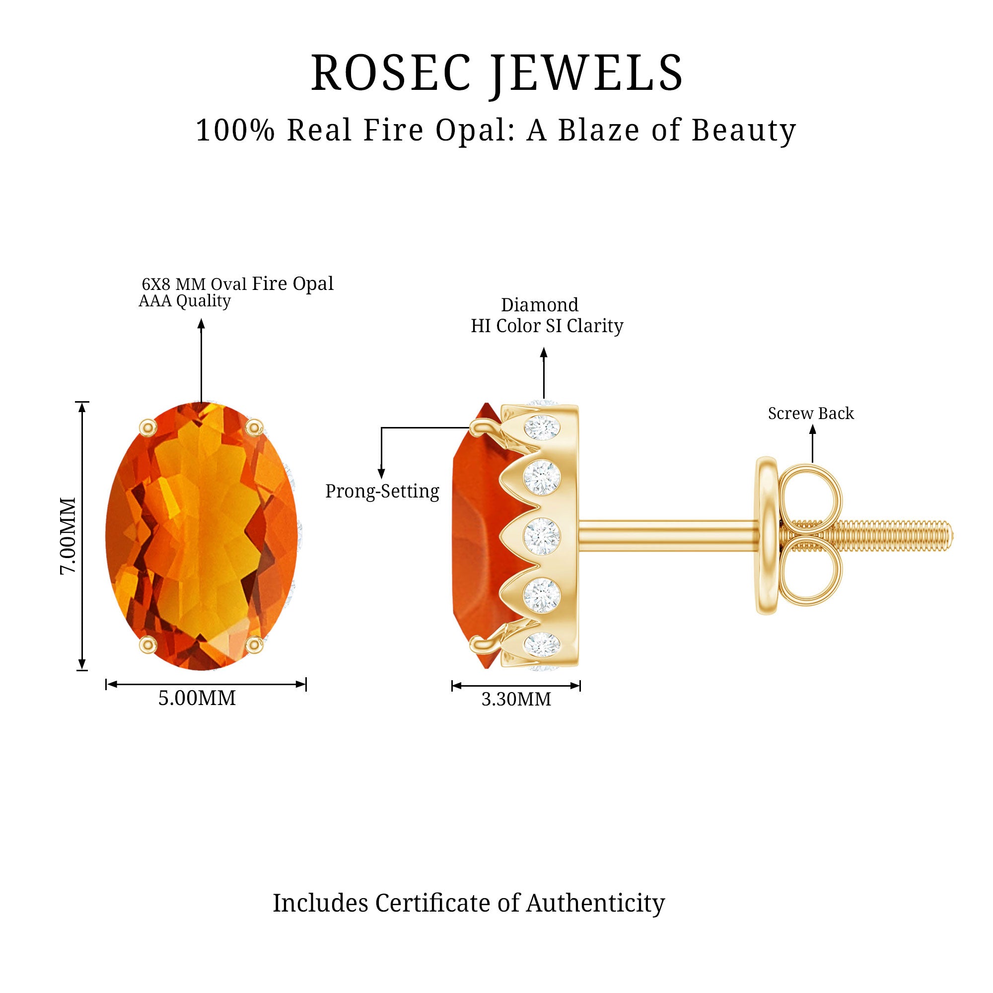When you shine in our Fire Opal stud earrings, attention becomes an admirer, not a demander! You will definitely cherish these moments for long. Featuring AAA quality Oval Shaped Fire Opal as the solitaire in a prong setting to make these stud earrings. To add an artistic touch, HI SI diamonds are gracefully placed on the sides of the metal frame, invisible and truly magical. Give them a try.
