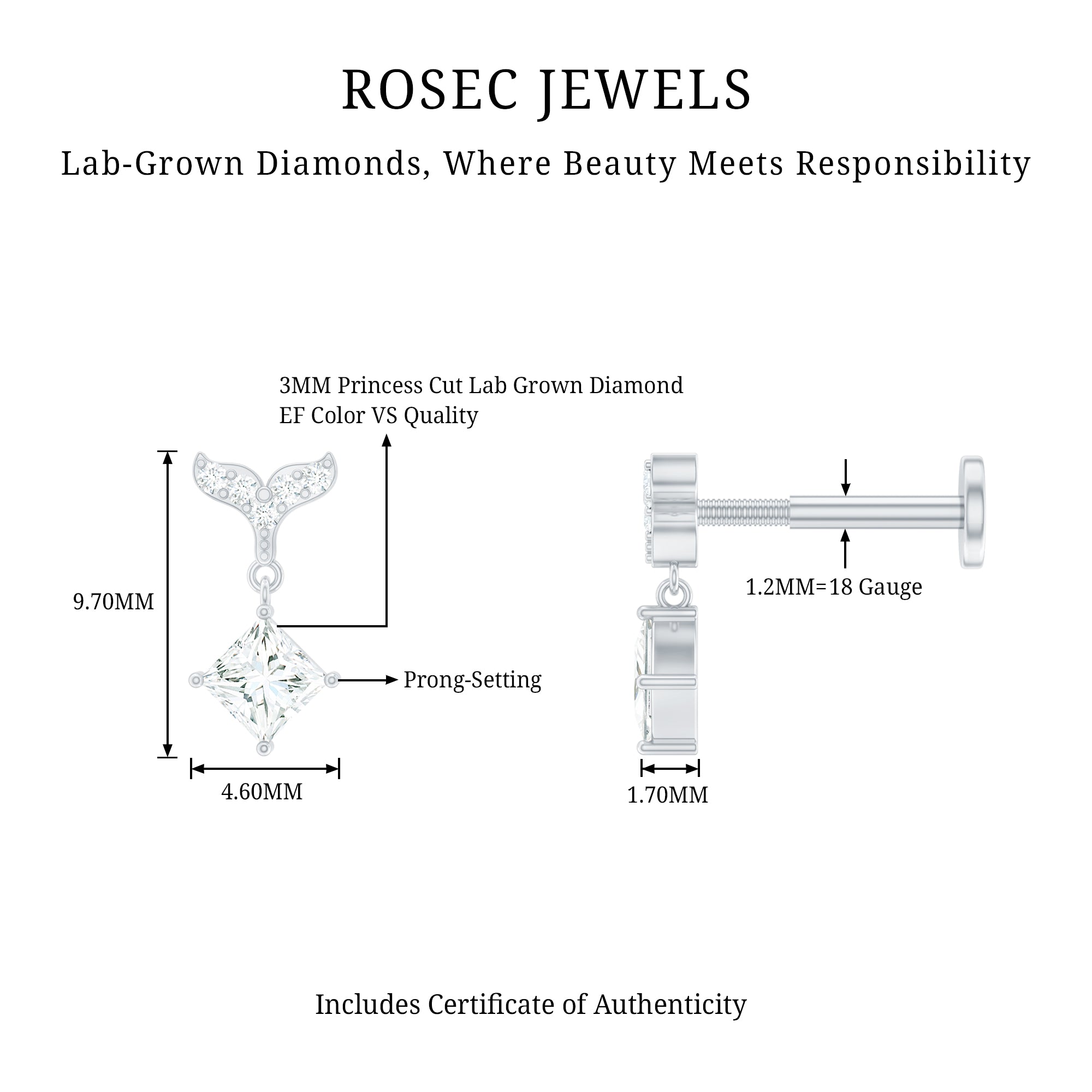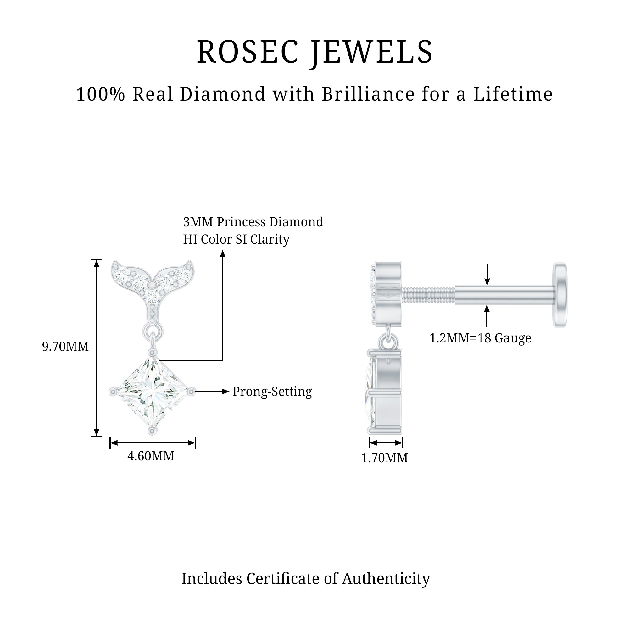 We know youve been crushing over this Fish Tail Diamond Drop Earring! Featuring Round Diamonds studded on the fish tail while a Princess Cut Diamond hanging as drop. You can simply wear it on your Helix, Cartilage, Conch, Tragus, or Upper Lobe Piercing. The Flat Back Closure will keep it snugly secured in place. Whether you want to add a touch of sparkle to your ear stack or amp up any party or everyday look, go with this Diamond Earring surely you wont regret it! Looking for a perfect gift? Grab this Diamond Earring for your special girl and add a touch of sparkle to her piercing jewelry collection.