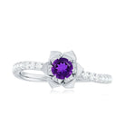 Floral Inspired Amethyst Rose Engagement Ring with Diamond