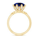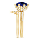 This stunning Floral Ring Set has 10 mm Round Shape Lab Created Blue Sapphire sitting amid the center, adorned with the petals of the basket in Moissanite. To give an opulent appeal, this Ring is adorned with sparkling Moissanite on the shank. Along with it to give it a more stunning effect is the v shaped chevron band having a leaf frame studded with Moissanite. This unique design Floral Wedding Engagement Ring Set is a symbol of everlasting love. The beautiful sparkle and everlasting shine of this Lab Sapphire Ring Set create a harmonious and breathtaking combination. Crafted with meticulous attention to detail, this set exudes elegance and timeless charm, making it an ideal choice for your special day.