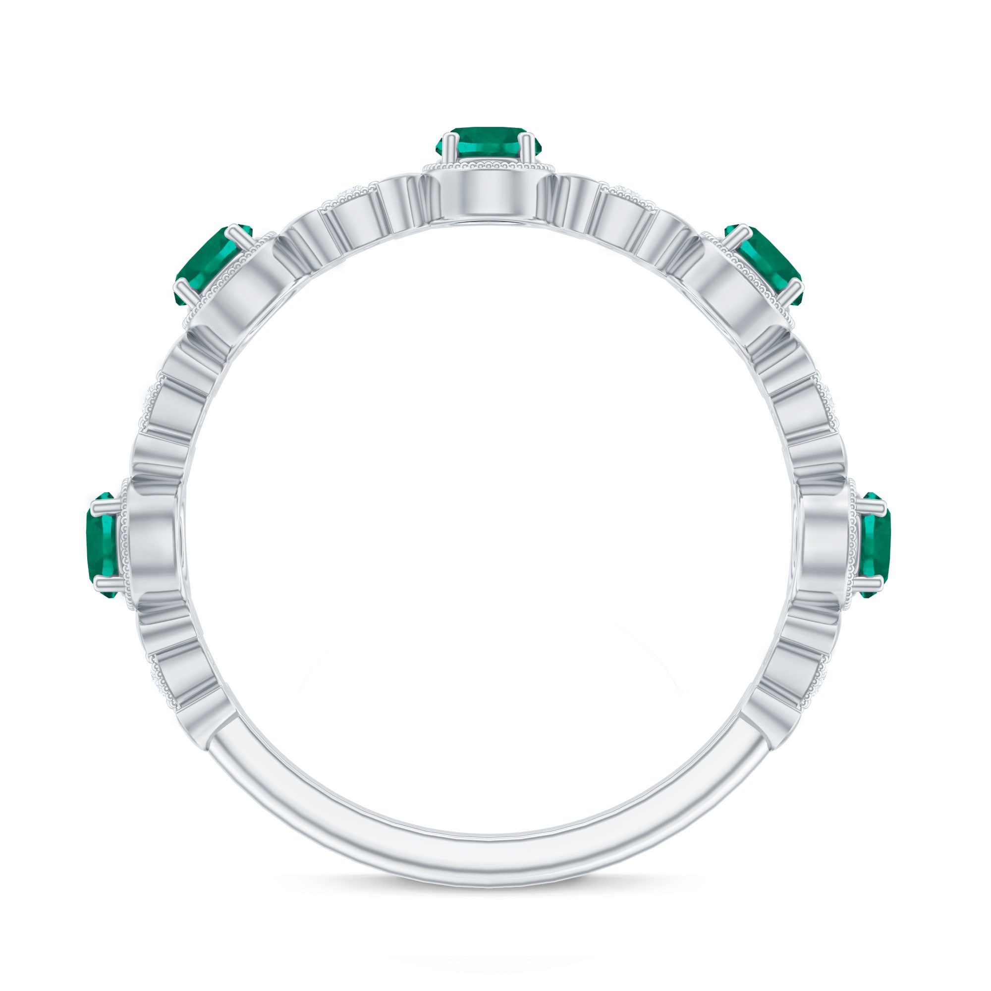 Nature Inspired Lab Grown Emerald Diamond Half Eternity Anniversary Ring