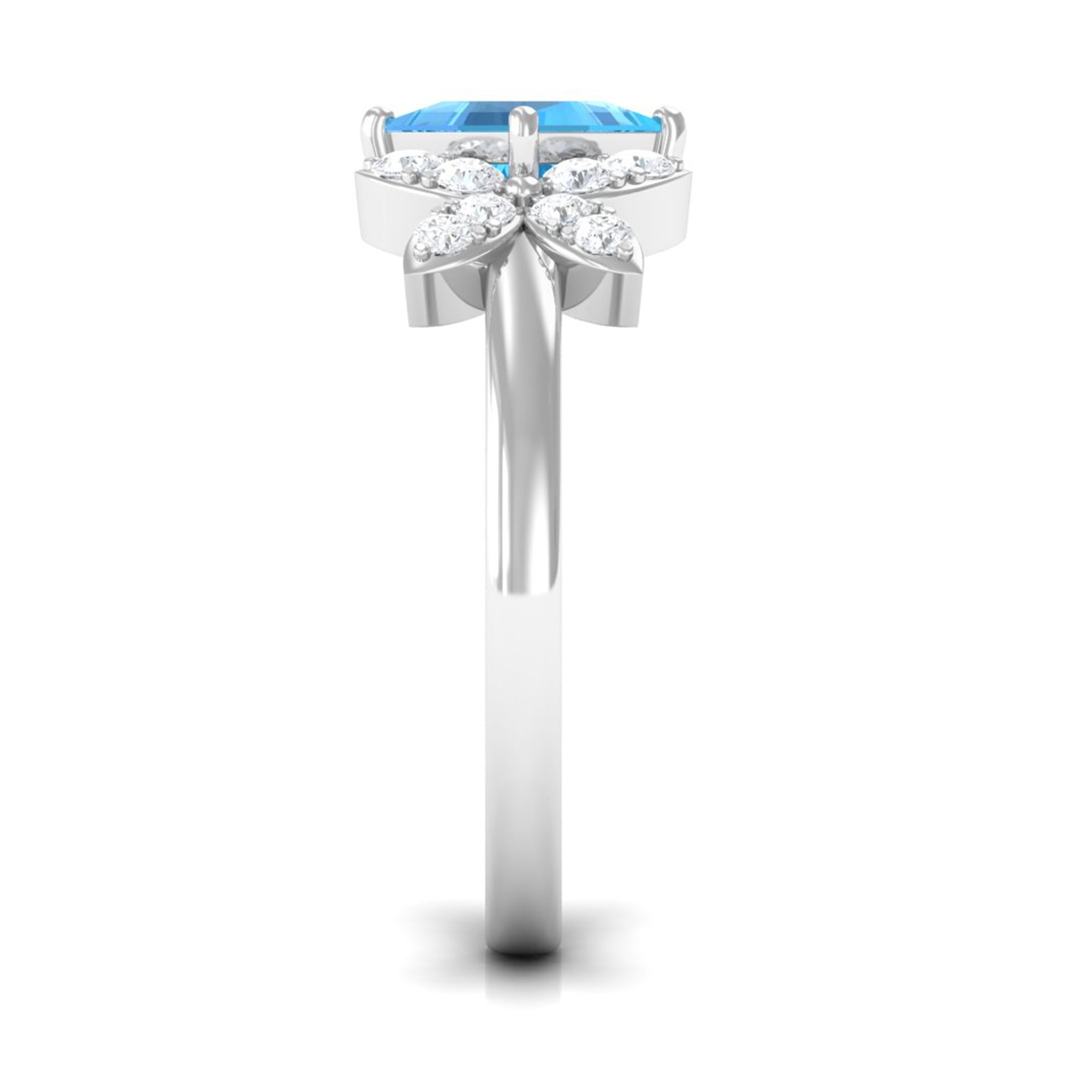 Floral Inspired Swiss Blue Topaz Engagement Ring with Diamond