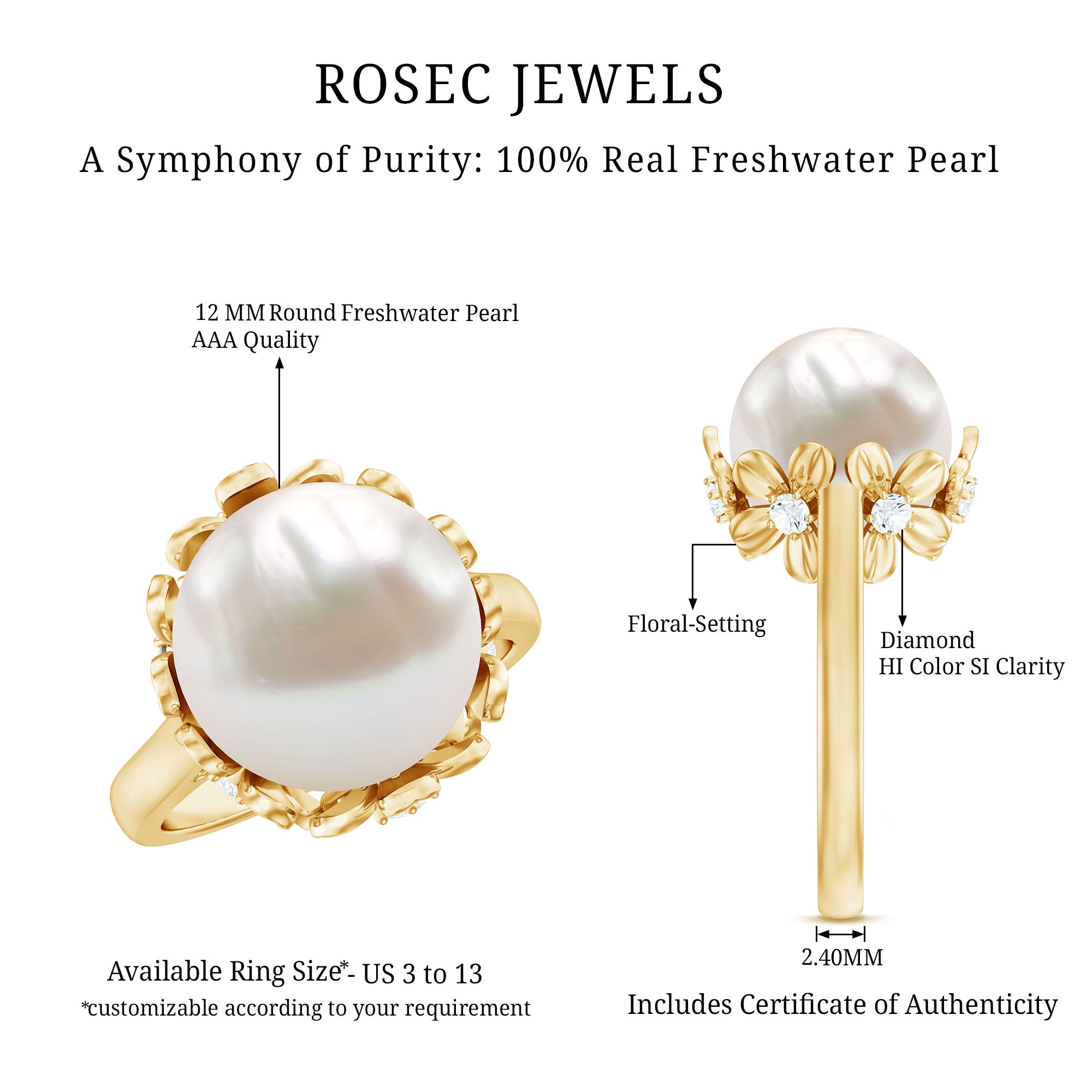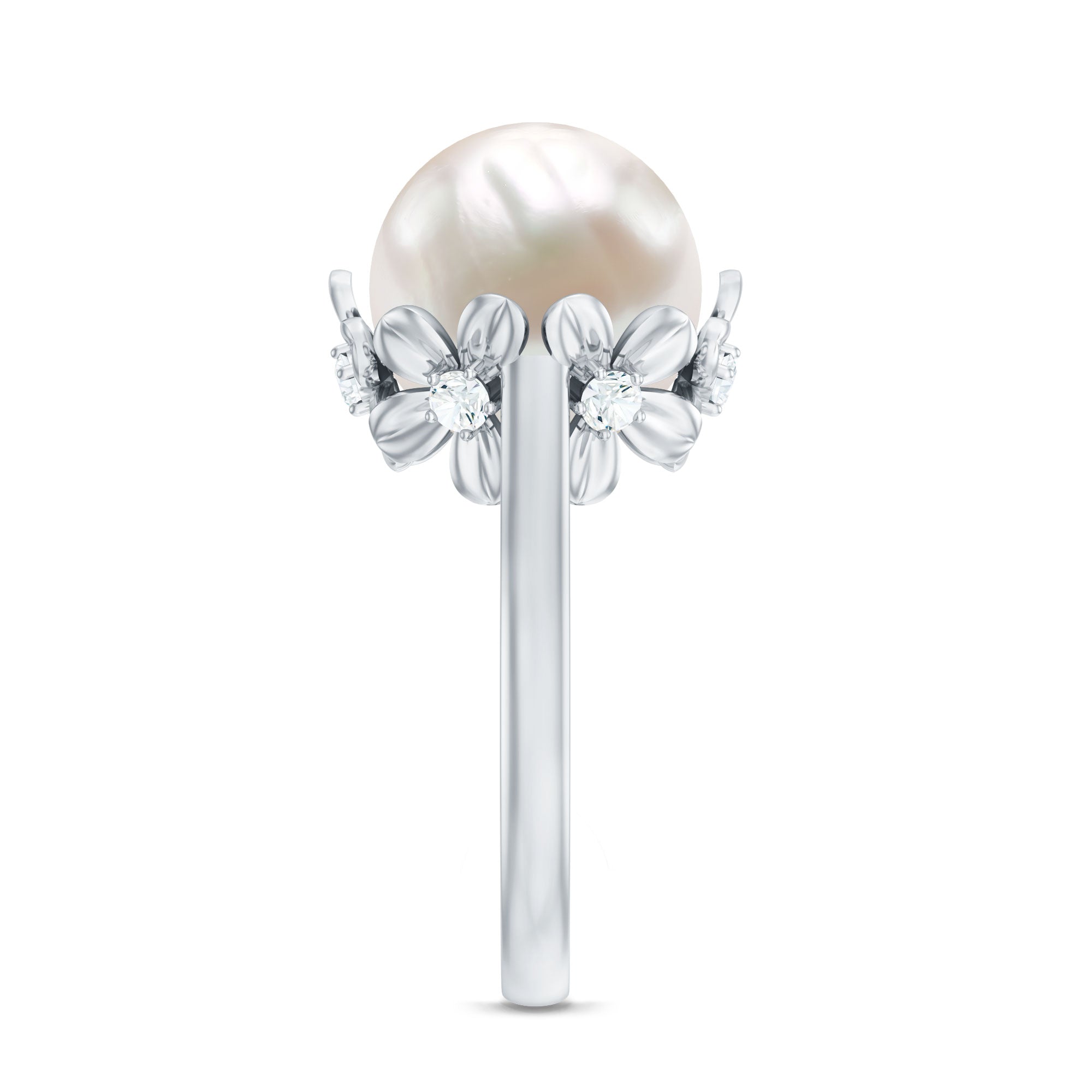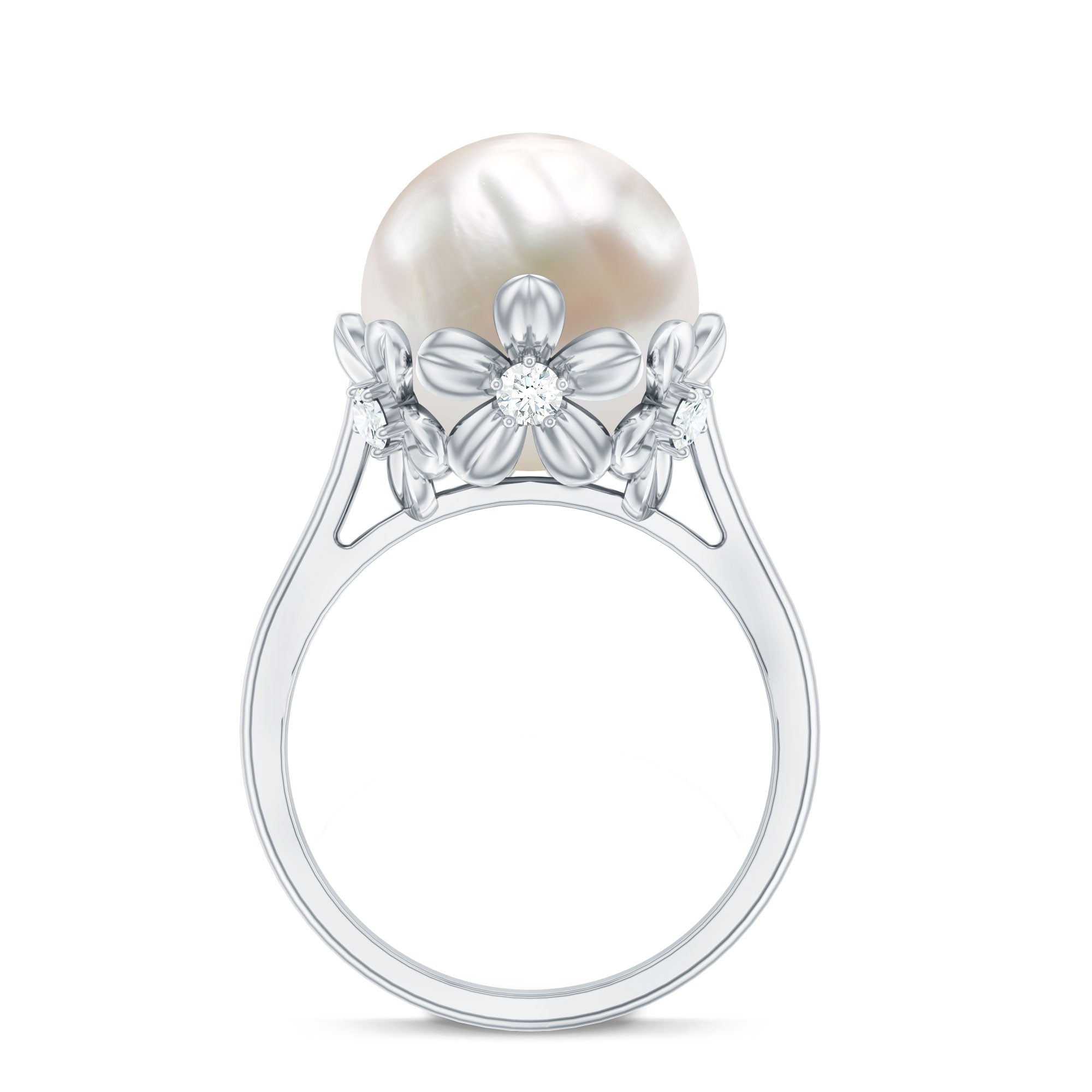 Floral Set Freshwater Pearl Solitaire Ring with Diamond Accent