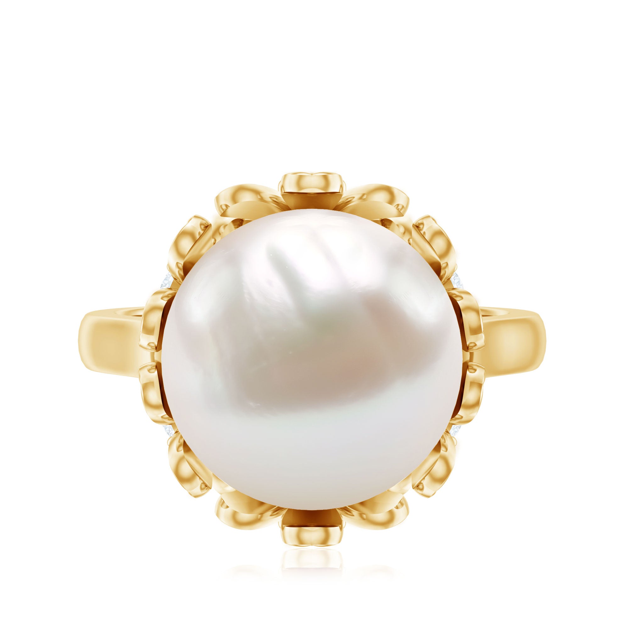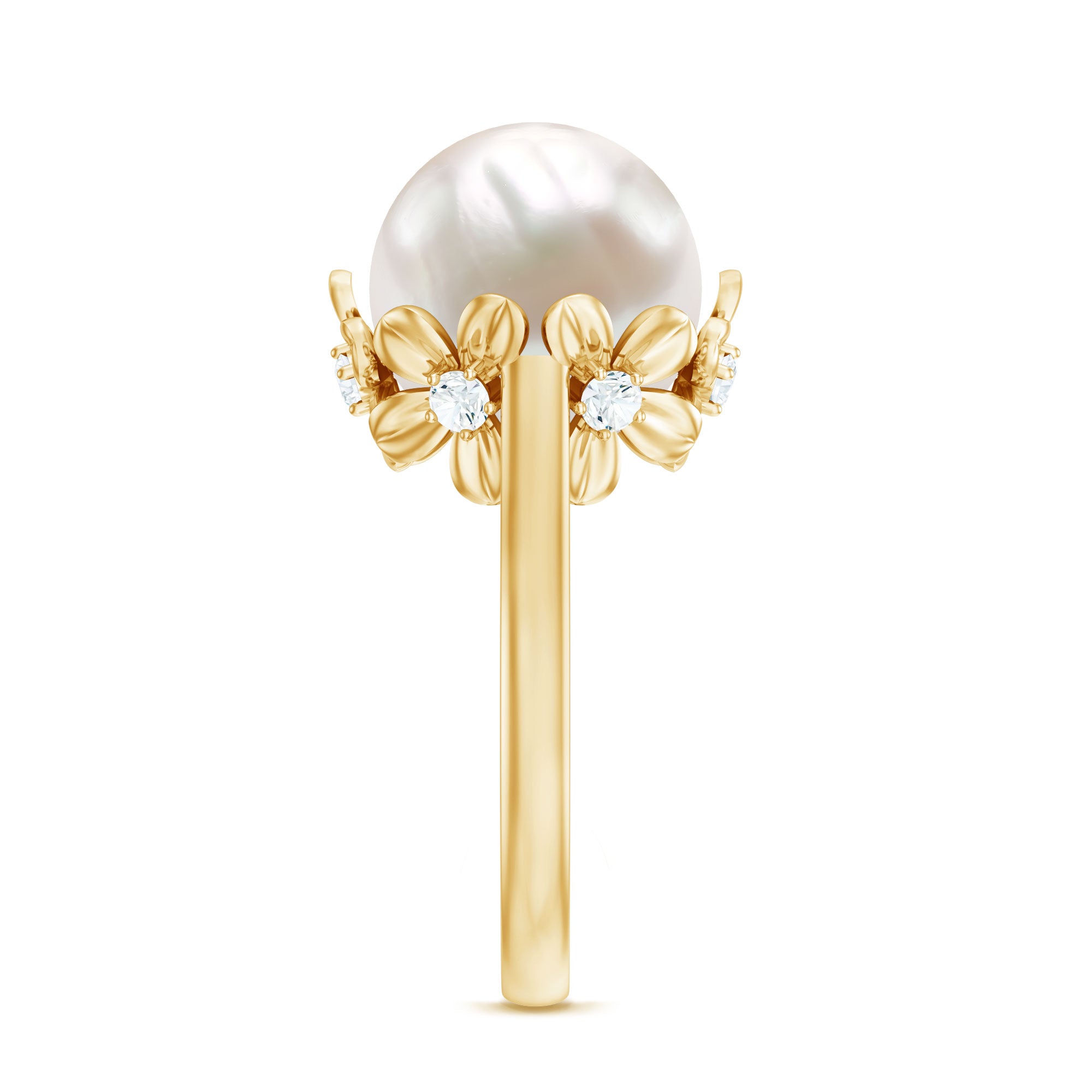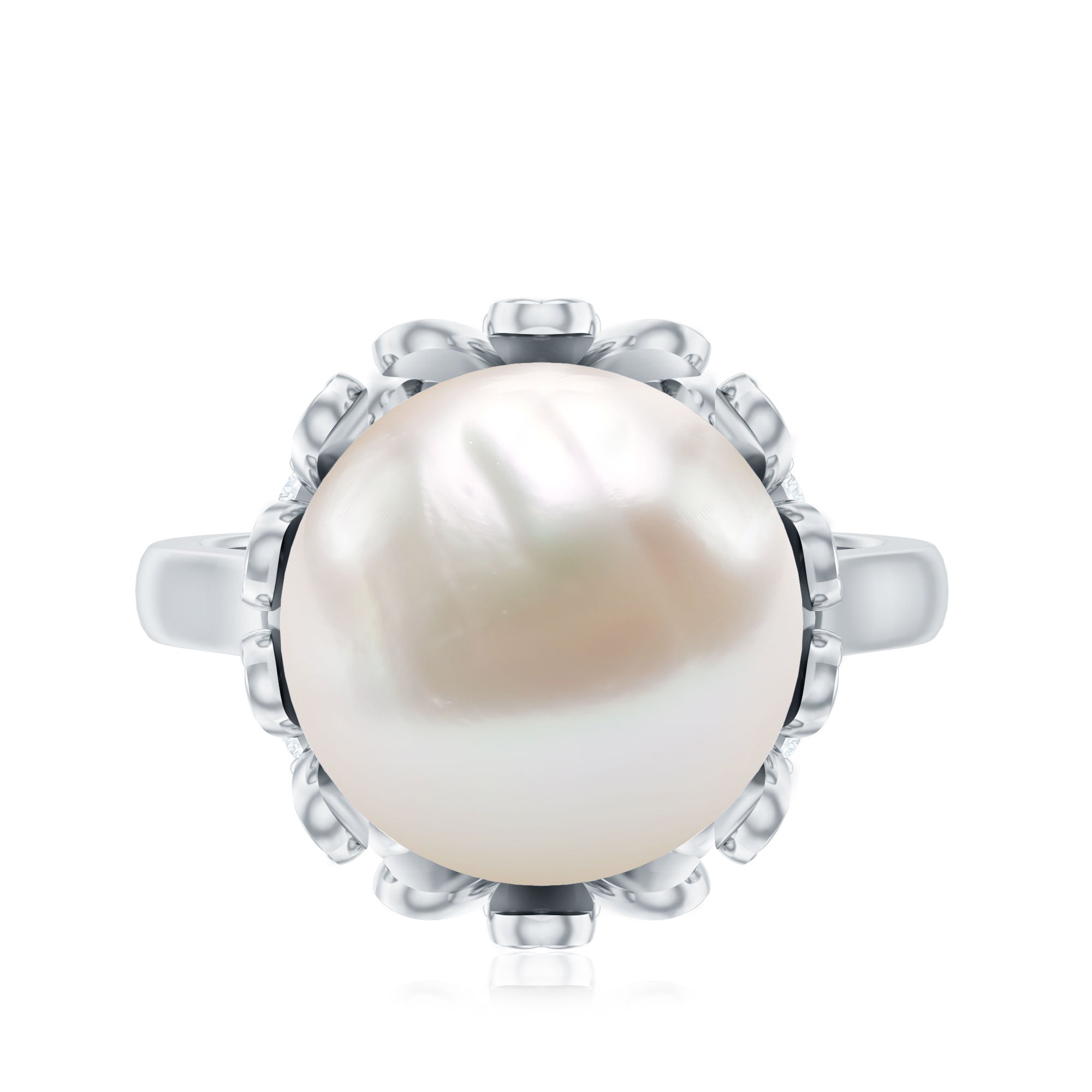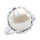 Floral Set Freshwater Pearl Solitaire Ring with Diamond Accent