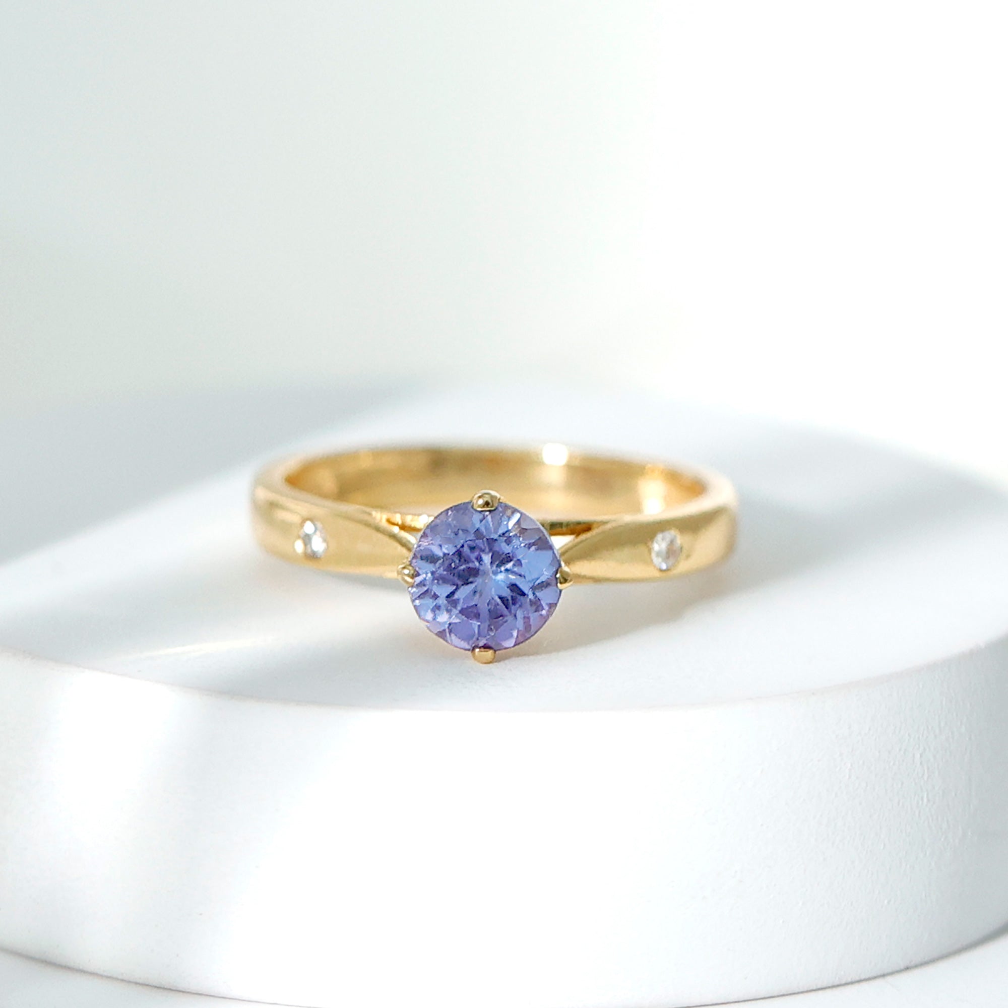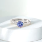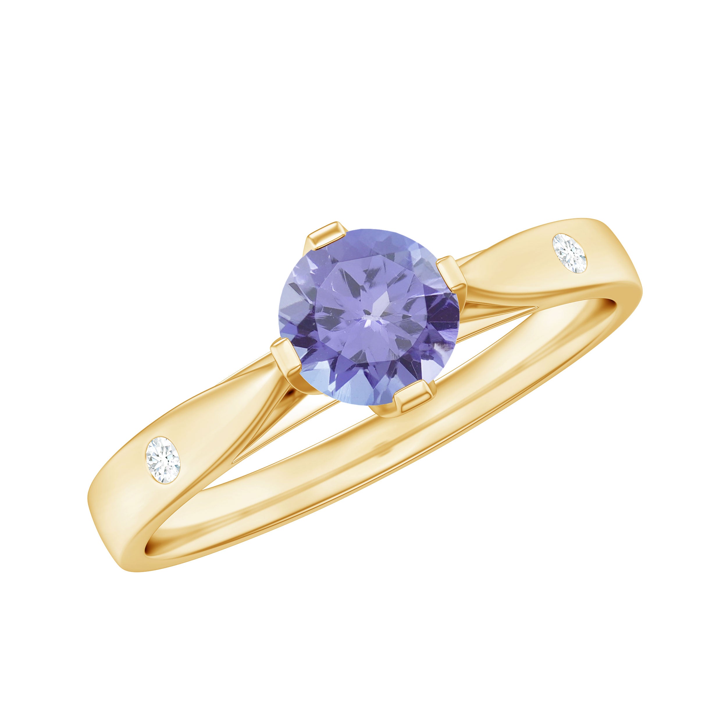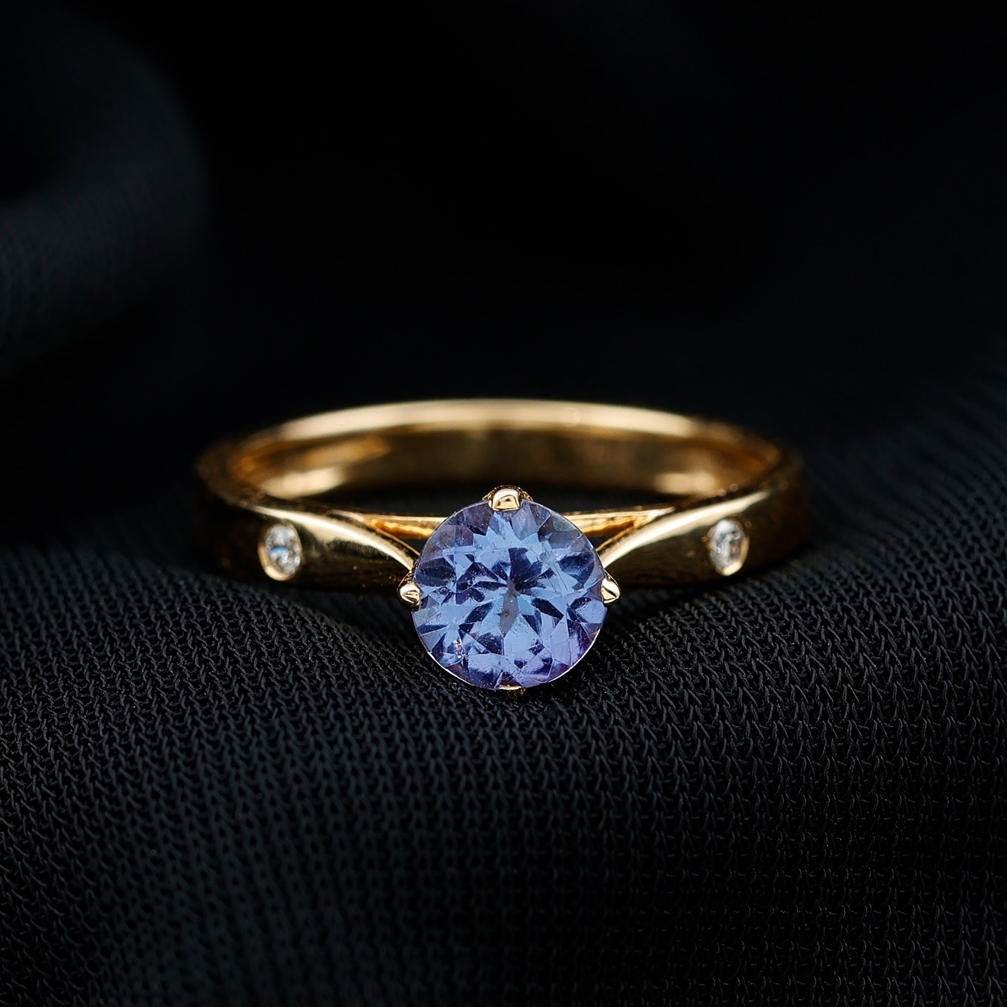 The Solitaire Ring is crafted with Round Shape Tanzanite as Center Stone with Round Shape Diamond gemstones as Side Stones. Grab this Tanzanite Solitaire Ring in Prong Setting for Your Valentine.