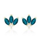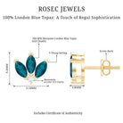 Gracefully designed, these Floral Stud Earrings are adorned with Marquise Cut London Blue Topaz gemstones and round shape Moissanite to make for a charming and trendy choice for special evenings. These 3 Petal Earrings are a perfect addition to your jewelry collection.