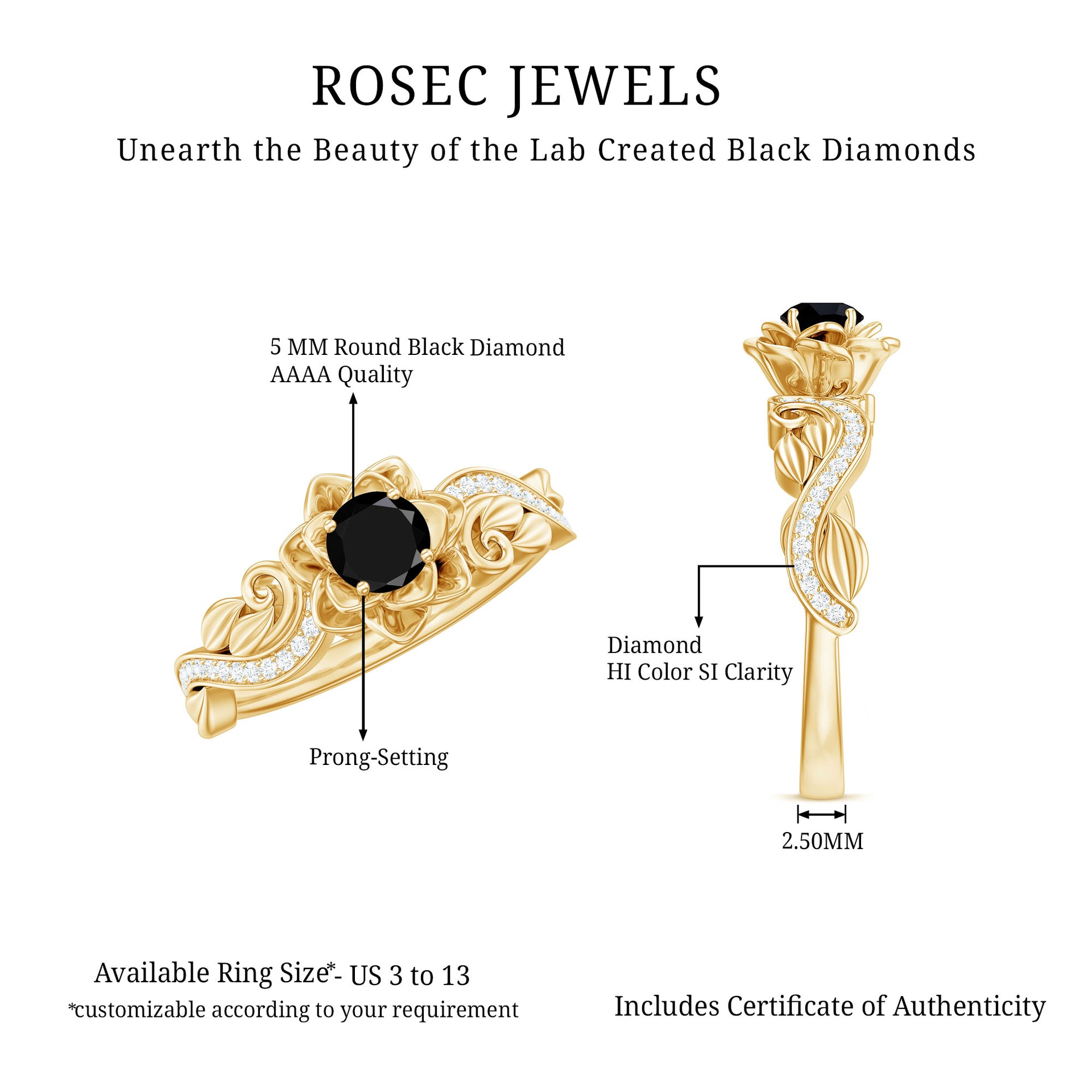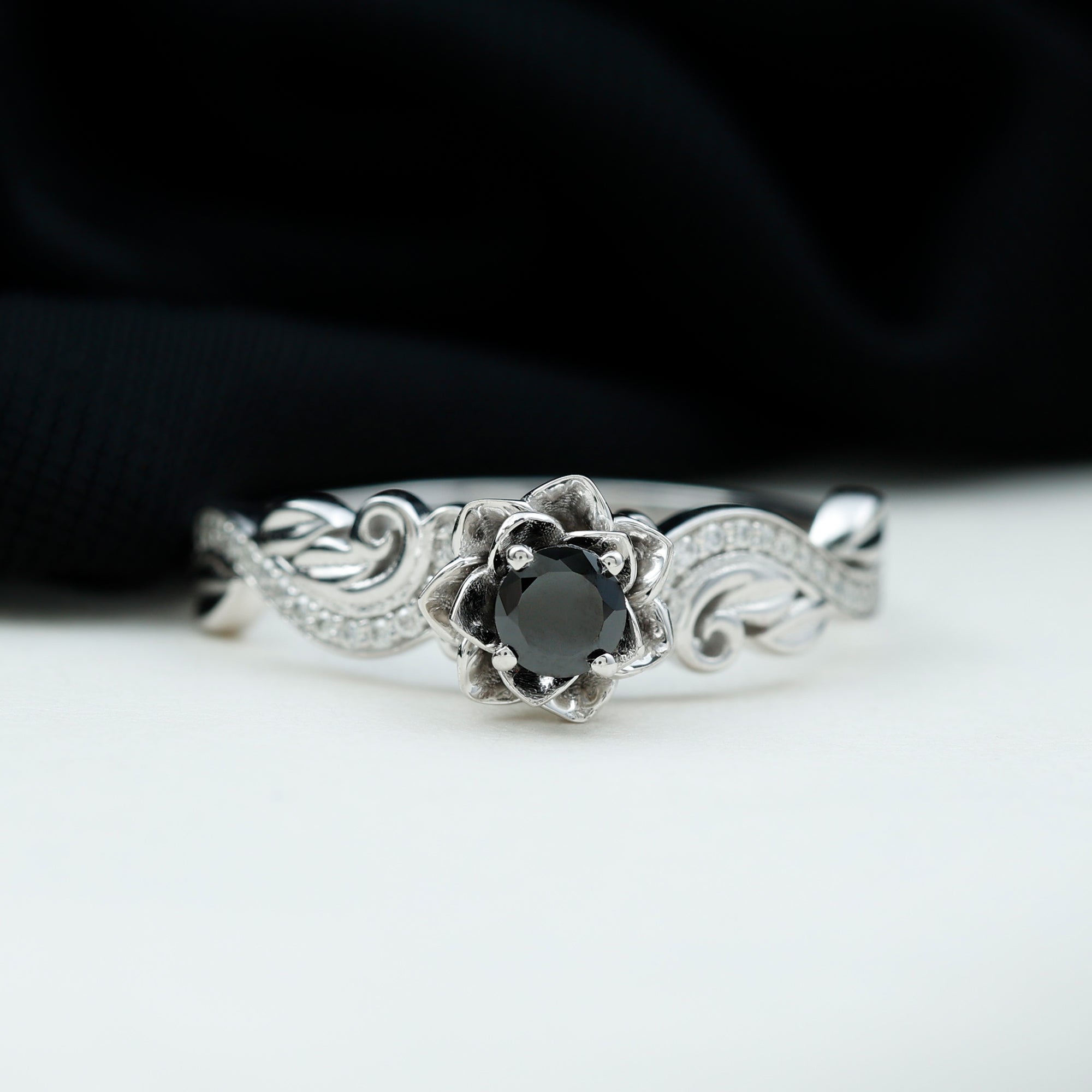 Flower Inspired Created Black Diamond and Diamond Engagement Ring