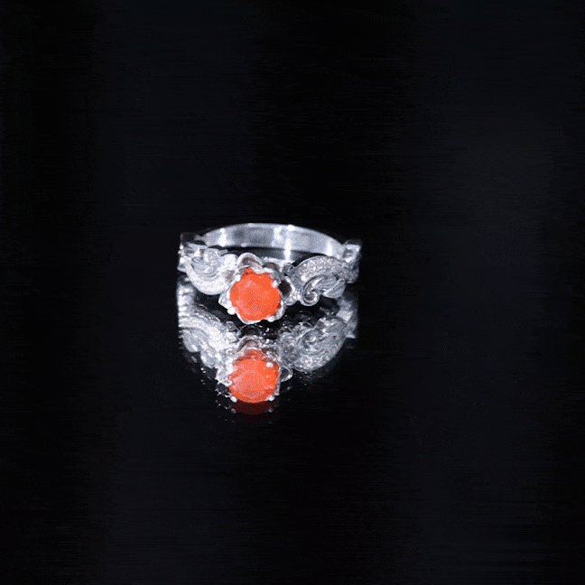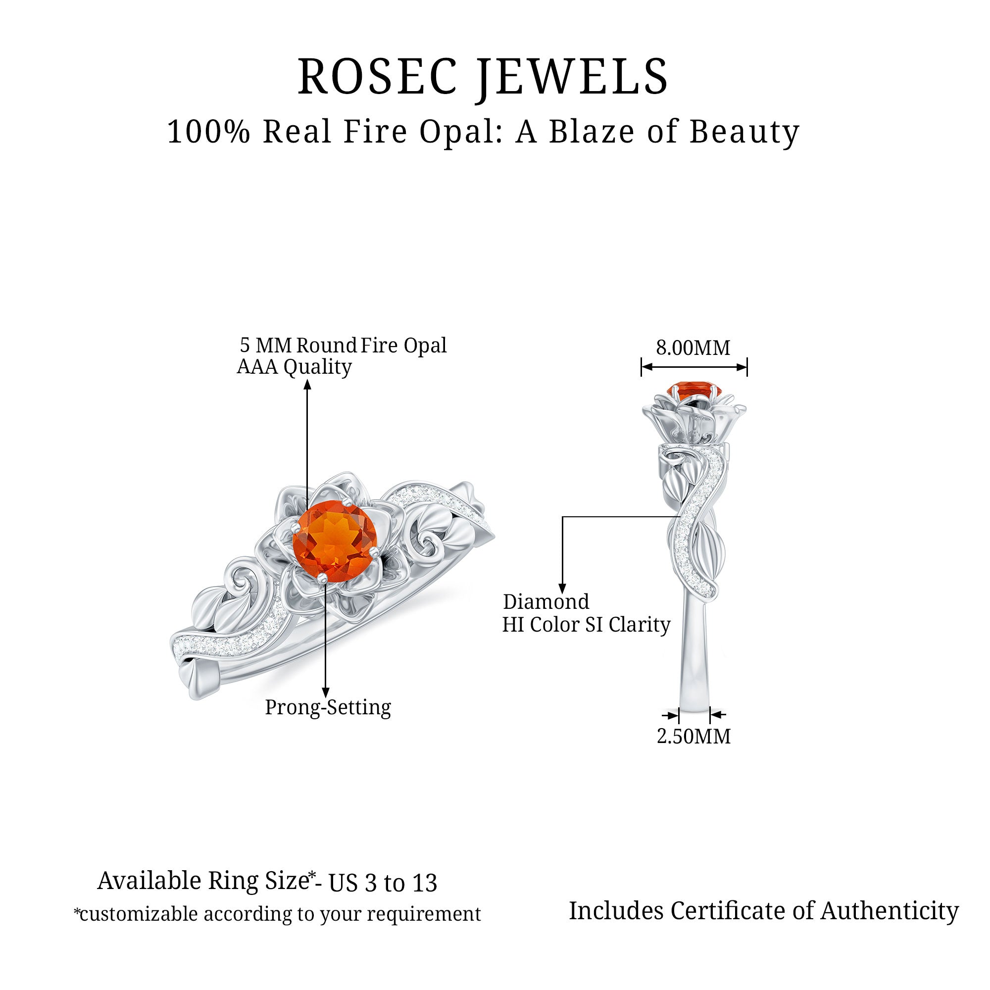 Flower Inspired Fire Opal and Diamond Engagement Ring