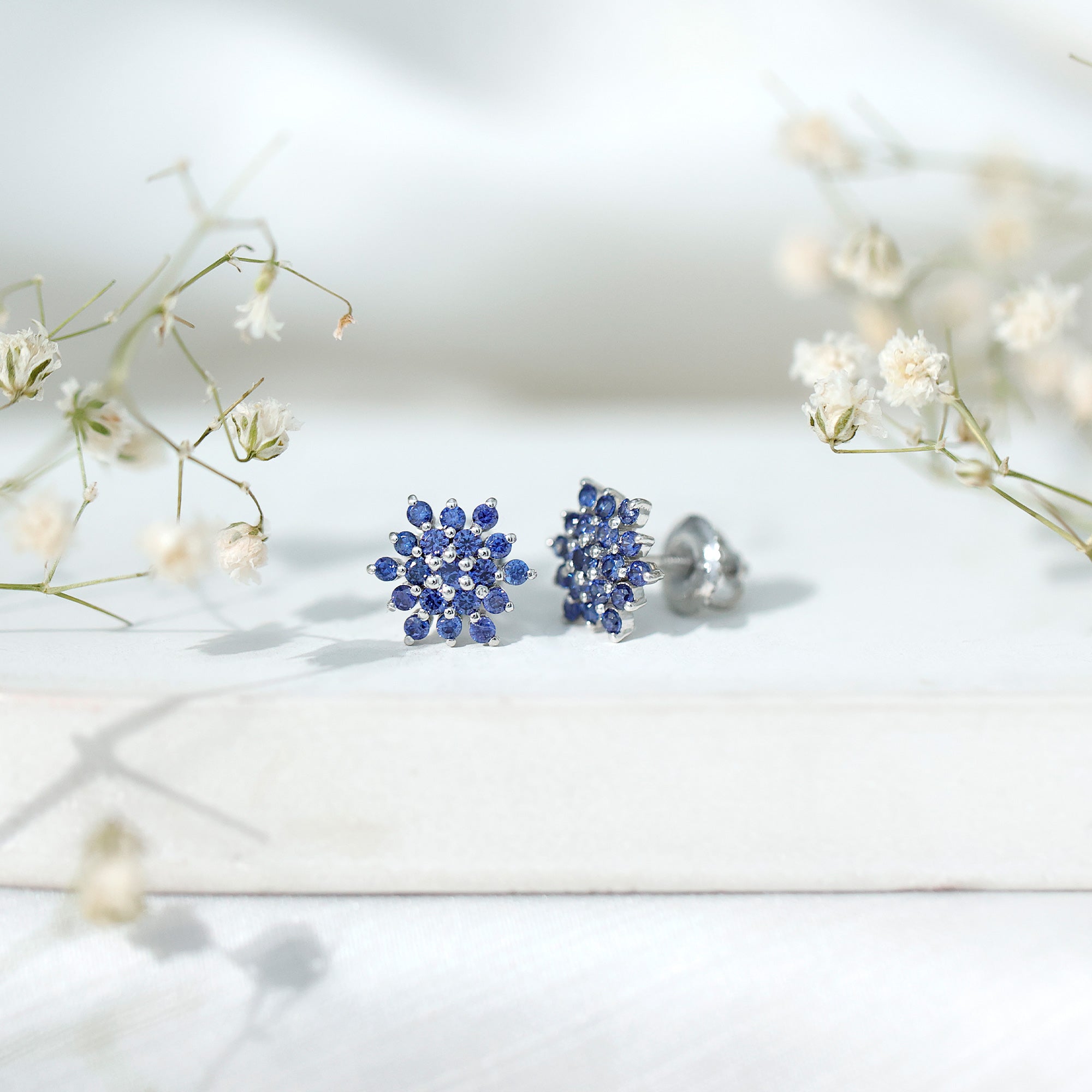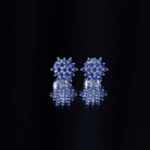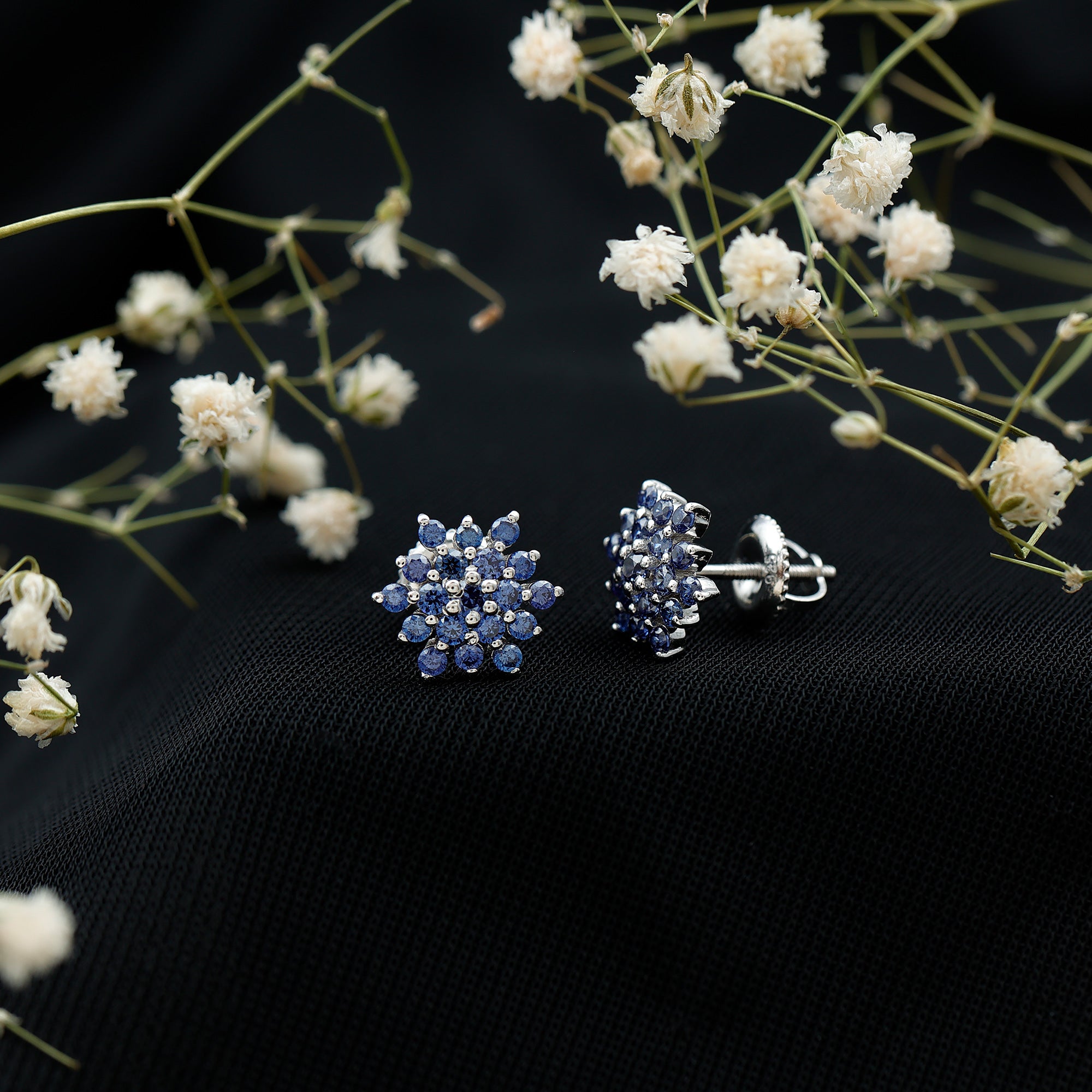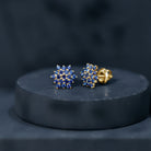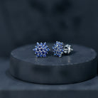 Flower Inspired Lab Grown Blue Sapphire Cluster Stud Earrings