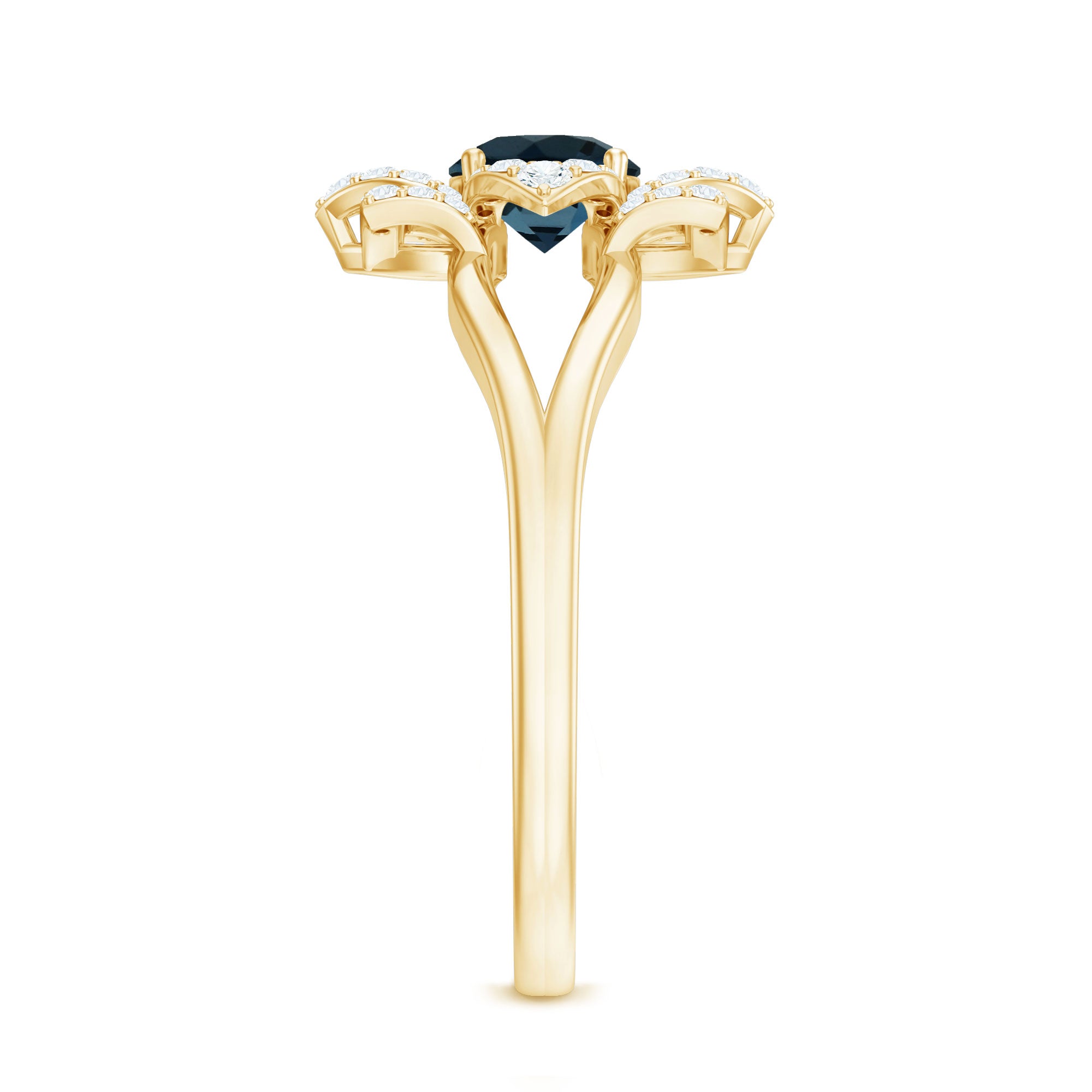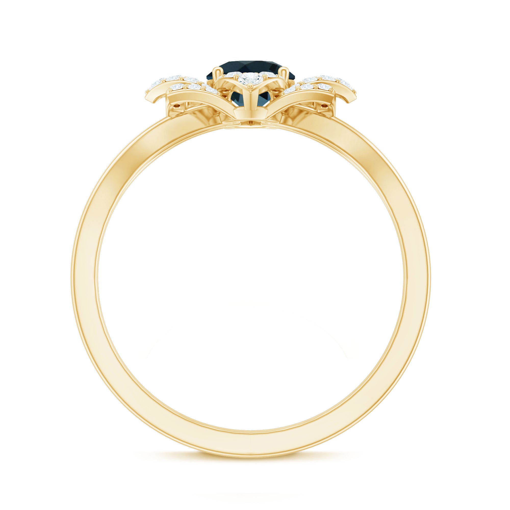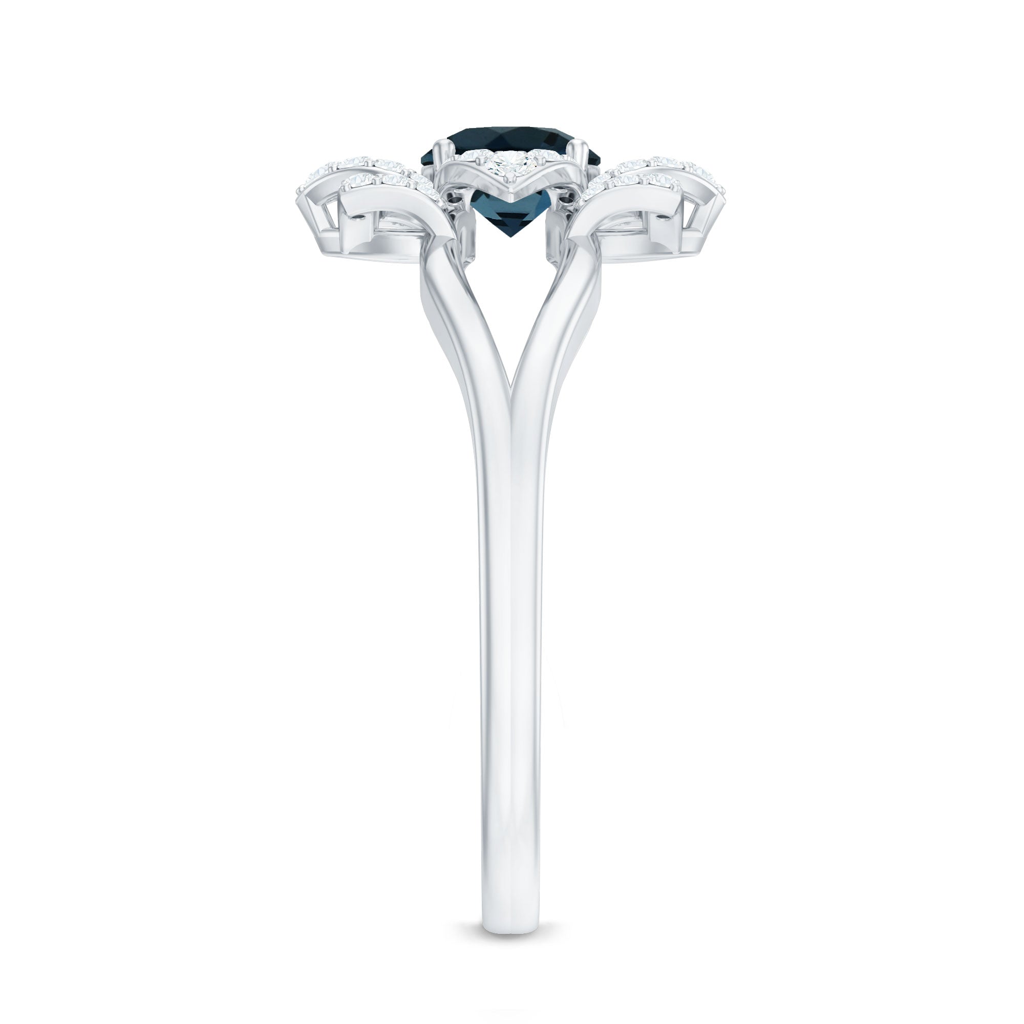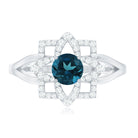 This exquisite Blue Topaz Flower Ring represents a distinctive fusion of craftsmanship and brilliance, intended to elevate every occasion. At its core lies a stunning 5 MM round cut London Blue Topaz, securely fastened by a prong setting. Encircling the central stone is a floral halo, artfully designed with small round Diamond stones arranged to resemble delicate petals. This design imparts the Flower Engagement Ring with a sophisticated yet striking character that exudes elegance and freshness. The split shank contributes to an open, airy aesthetic that complements the intricate floral setting. The overall appearance combines modern structure with floral delicacy, making it perfect for those who value exquisite design with a personal touch. Whether selected as an engagement ring or worn as a bold cocktail piece, this London Blue Topaz Engagement Ring effortlessly captures attention. The flower motif introduces a romantic essence, while the split band and meticulous stone arrangement provide a unique, contemporary flair. The AAA quality london blue topaz and HI-SI Diamond stone delivers exceptional brilliance and is recognized for its durability, rendering this Cocktail Ring ideal for both daily wear and special events. It serves as a wonderful means to convey individuality and style through a piece that is both meaningful and beautifully crafted.