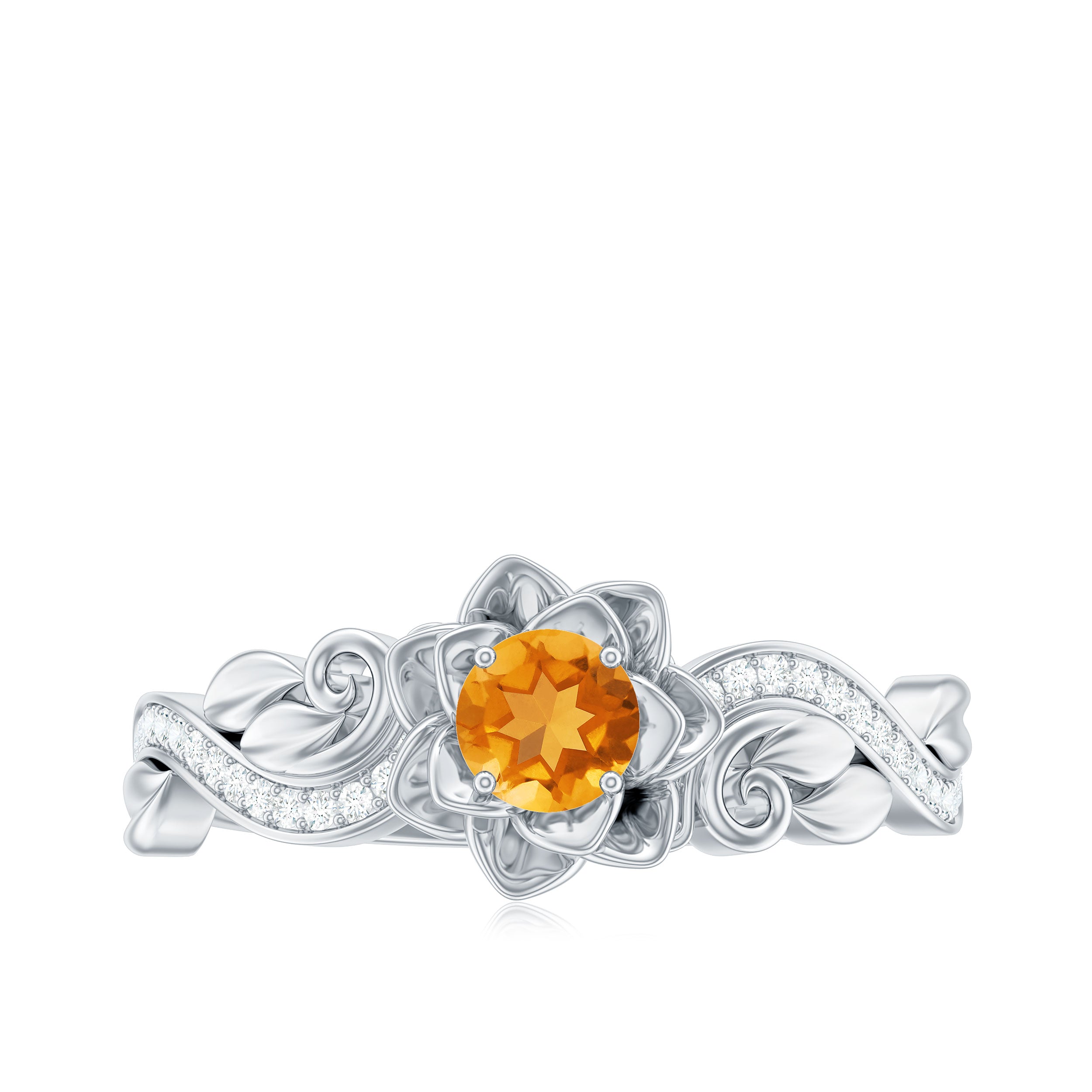 Flower Inspired Natural Citrine and Diamond Engagement Ring