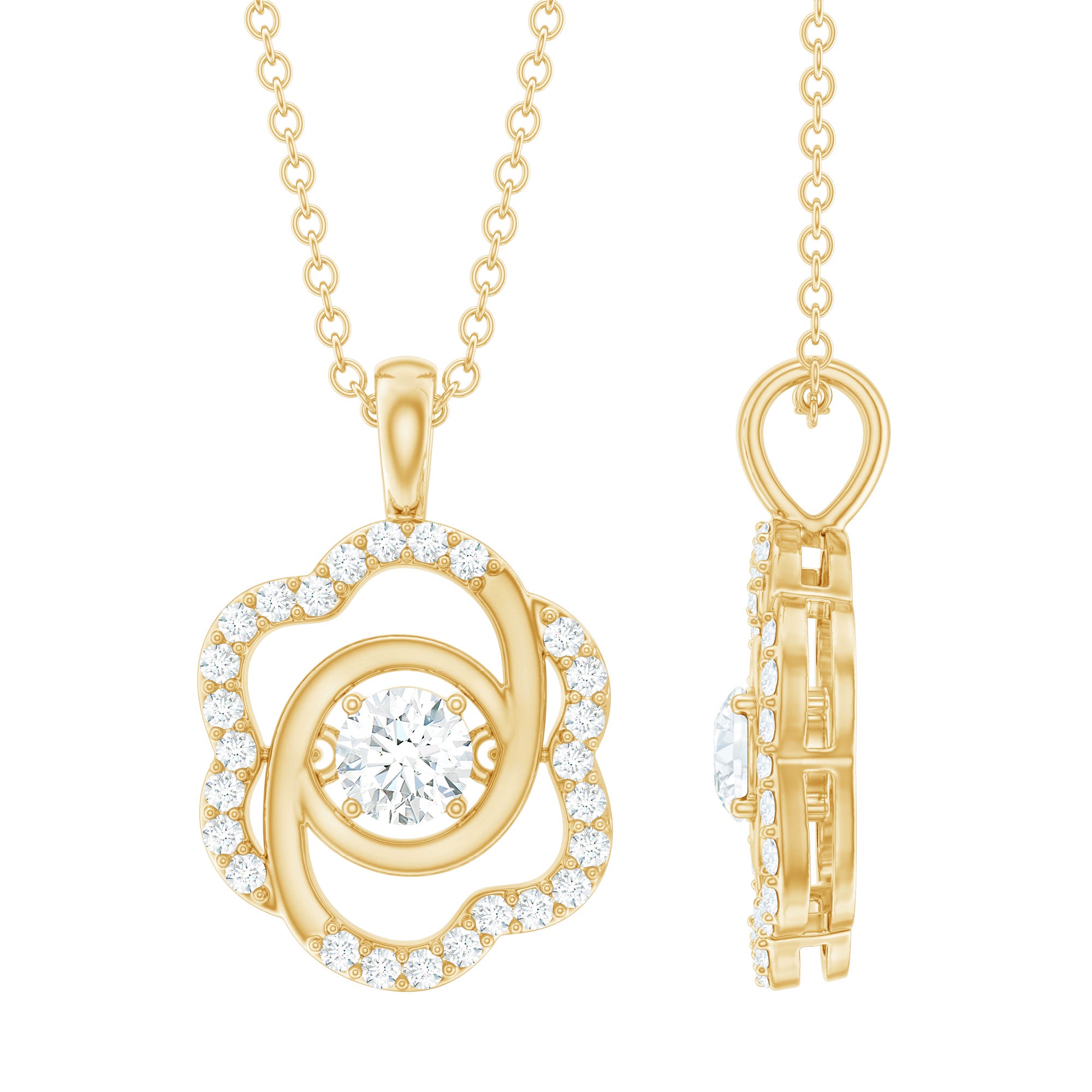 Flourish in elegance with our Flower Pendant Necklace featuring a 4 mm Round Shape Diamond (Lab Grown) at the center set in a safe prong setting. The delicately crafted floral motif is aptivating and accentuated by dainty gemstones. Elevate your style with this mesmerizing Ef-Vs Quality Diamond Pendant Necklace (Synthetic) brought to you by Rosec Jewels, committed to merging stunning aesthetics with ethical practices. Also, this Diamond Floral Necklace can be your lady loves in-budget birthstone pendant as a diamond is an April Birthstone. Our jewelry comes in a premium box that can later be used to store the jewelry when not in use.