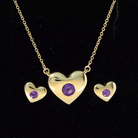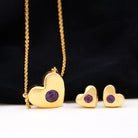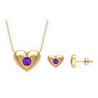 Elevate your style with this Lovely Heart Necklace and Earrings Set, adorned with Round Shape Amethyst gemstones delicately set as solitaire in a flush setting. This exquisite set is a symbol of elegance and love, making it a perfect accessory for any special occasion or as a heartfelt gift to cherish.