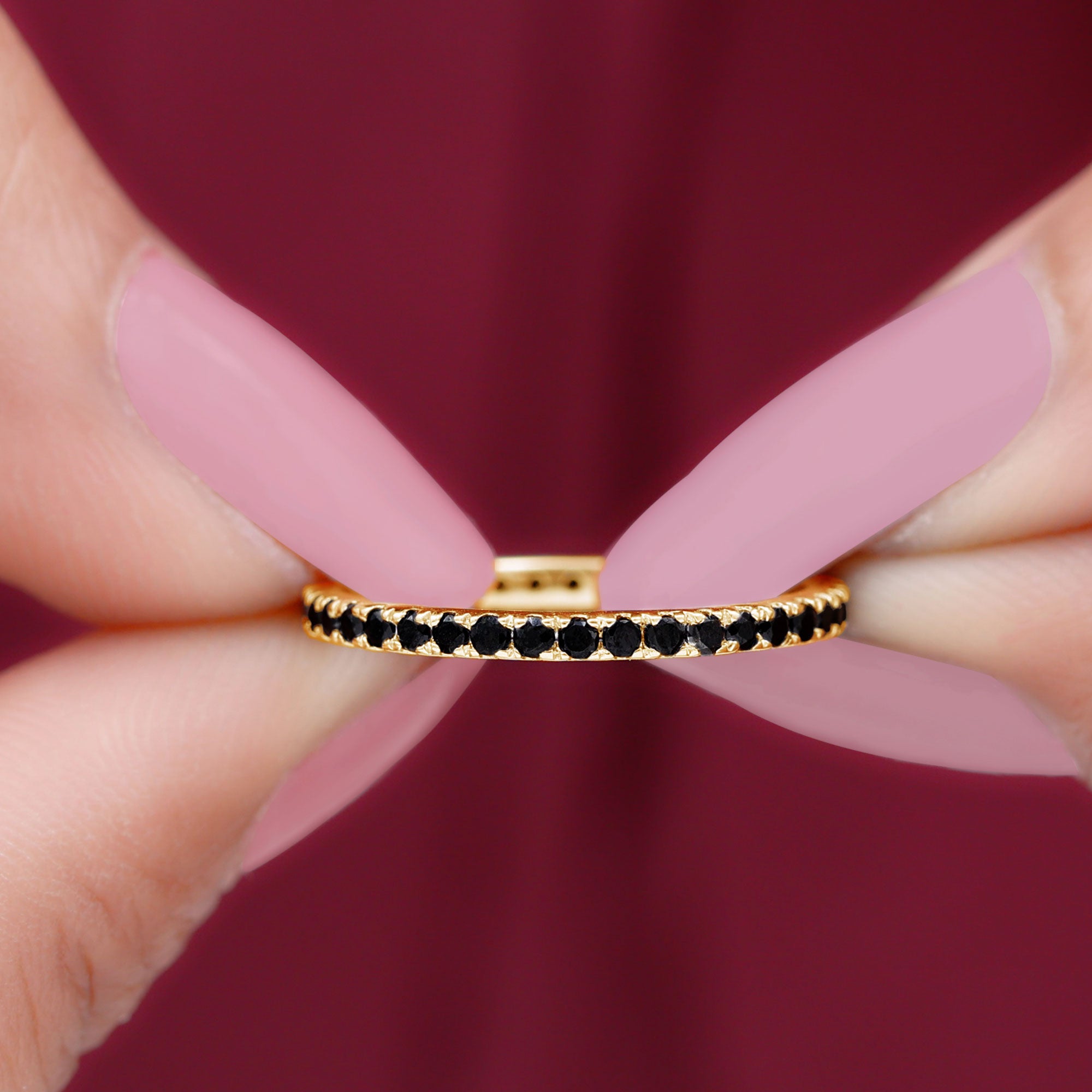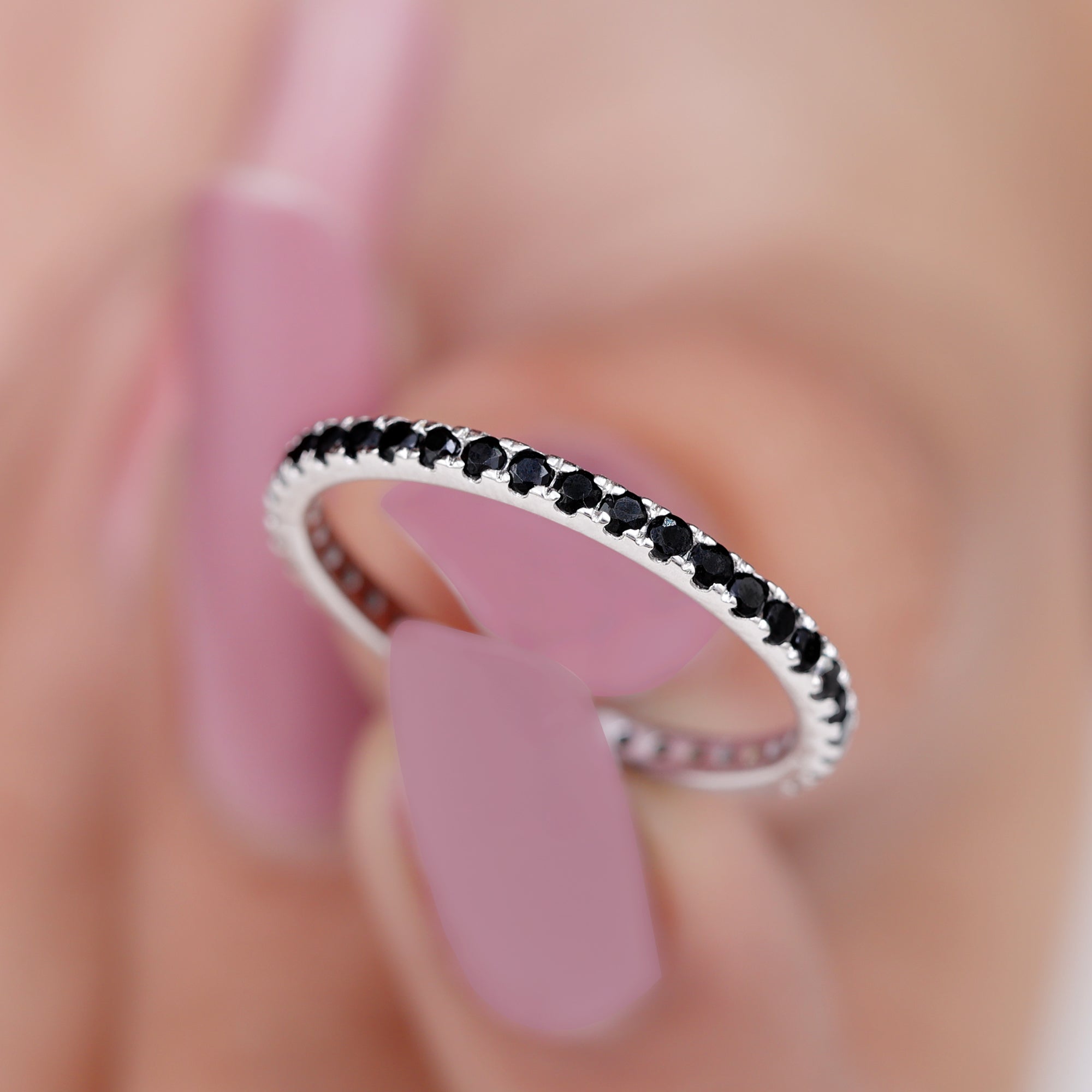 This Valentines day surprise your beloved by gifting this Full Eternity Stackable Ring. The Ring is Exquisitely designed with round shape Black Spinel stones in French Pave setting forming a Beautiful Eternity Ring.