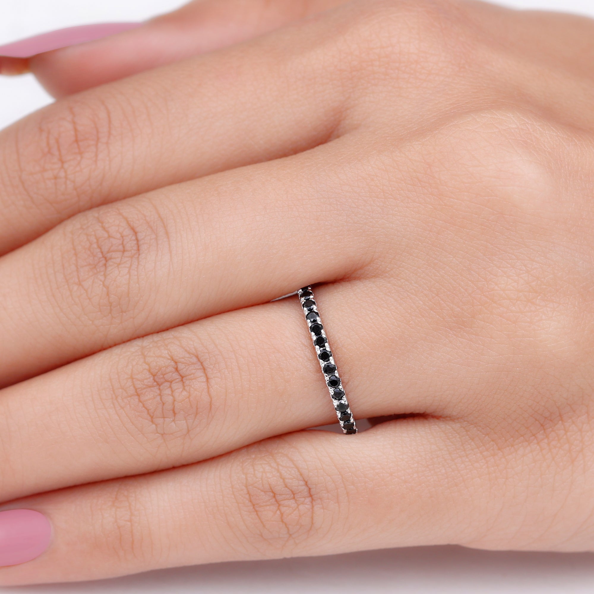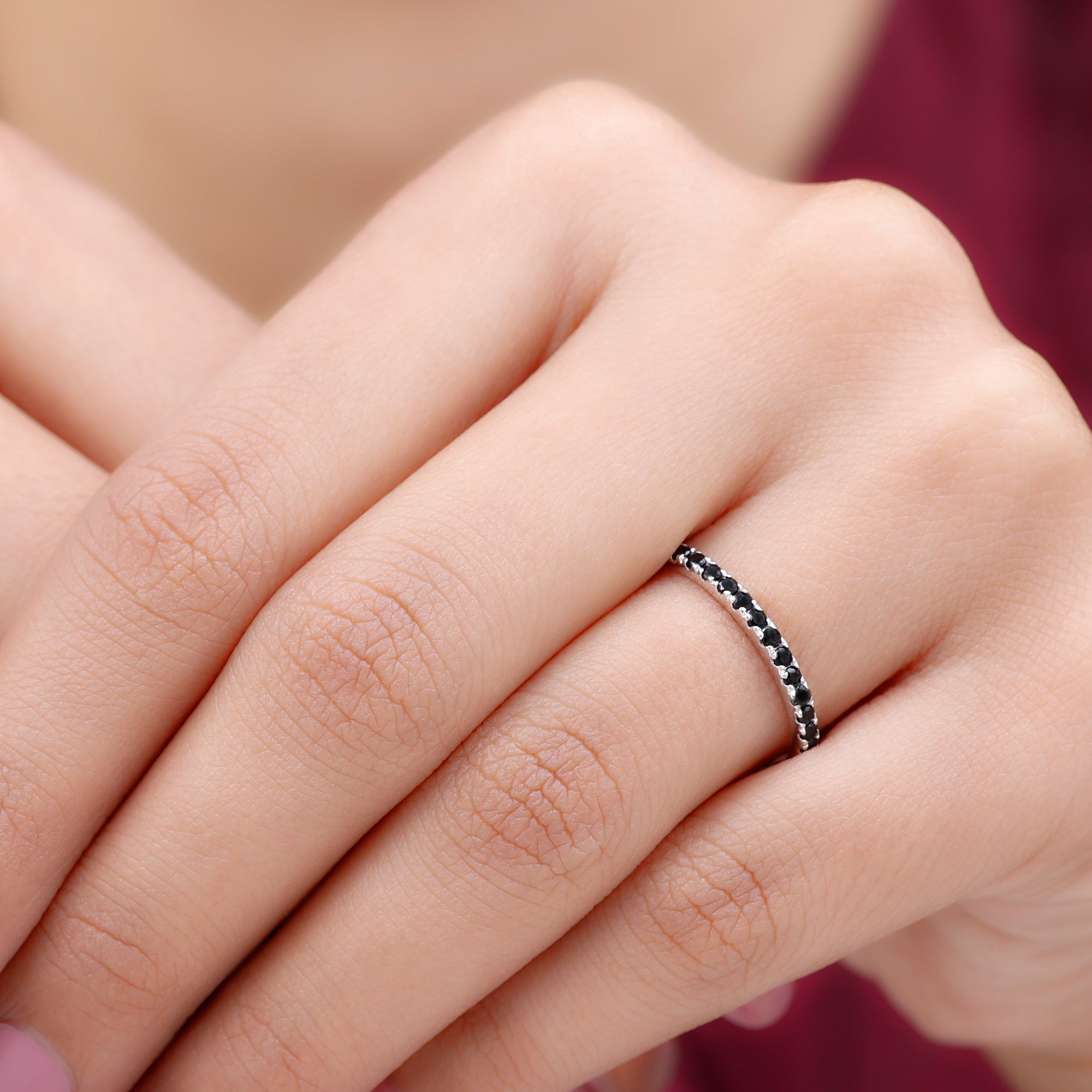 French Pave Set Black Spinel Stackable Full Eternity Ring