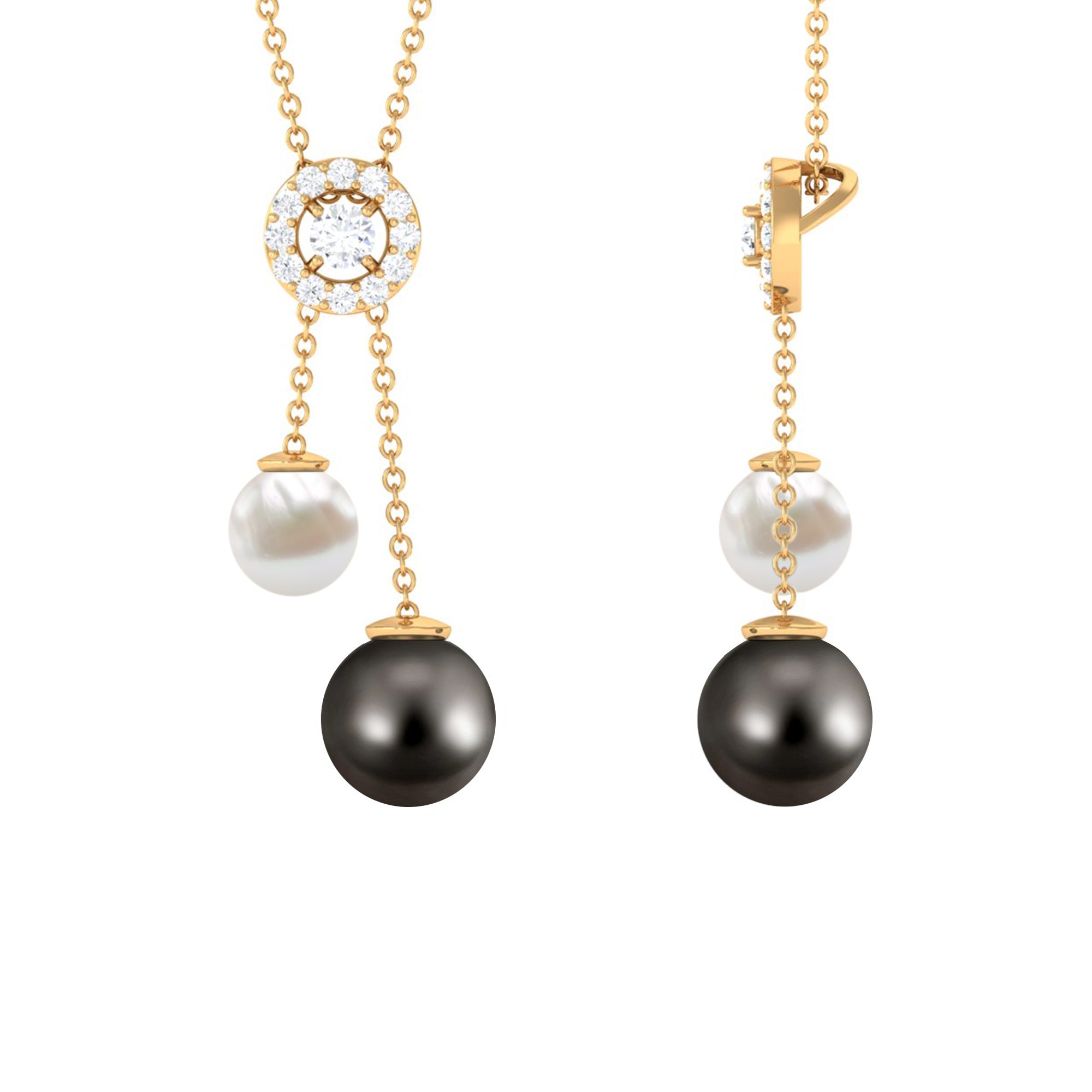 Freshwater and Tahitian Pearl Dangle Pendant with Moissanite