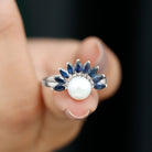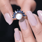 Freshwater Cultured Pearl Floral Inspired Cocktail Ring with Blue Sapphire