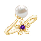 Freshwater Pearl and Amethyst Floral Toi Et Moi Ring