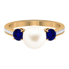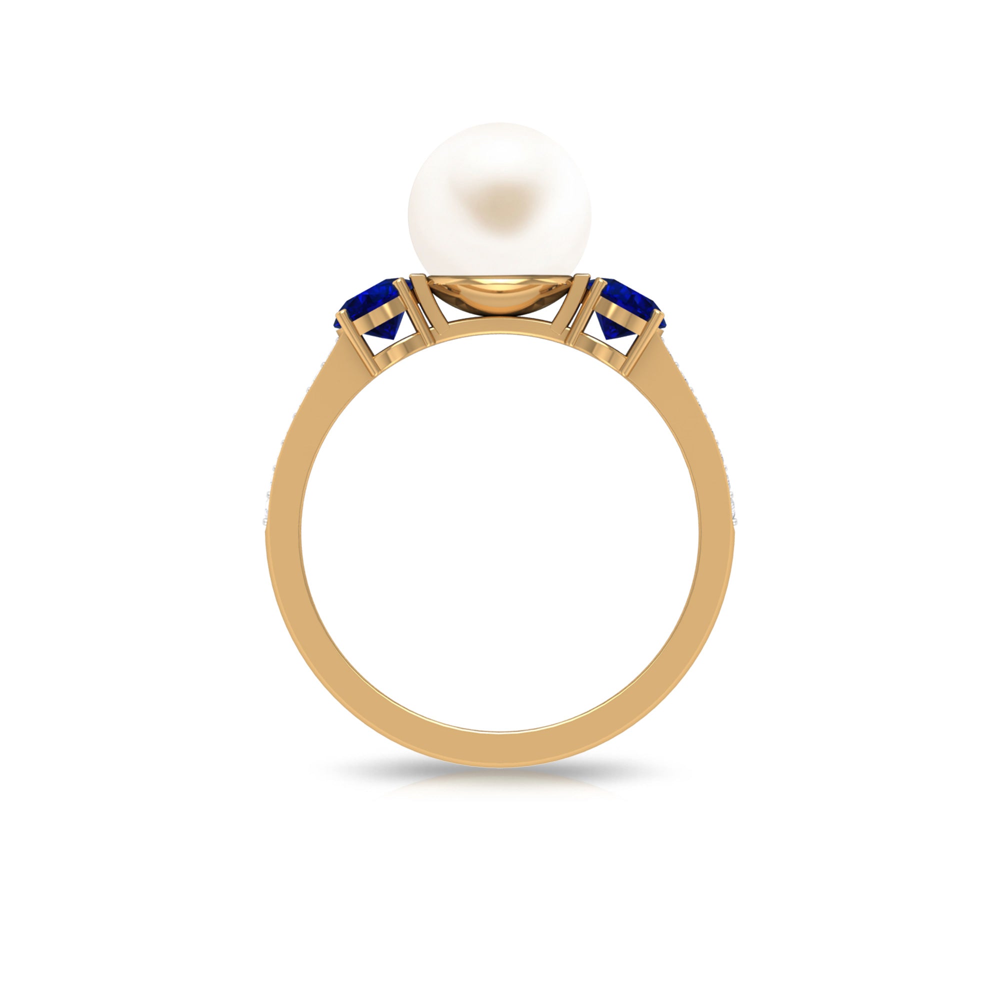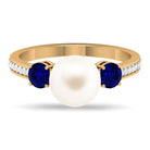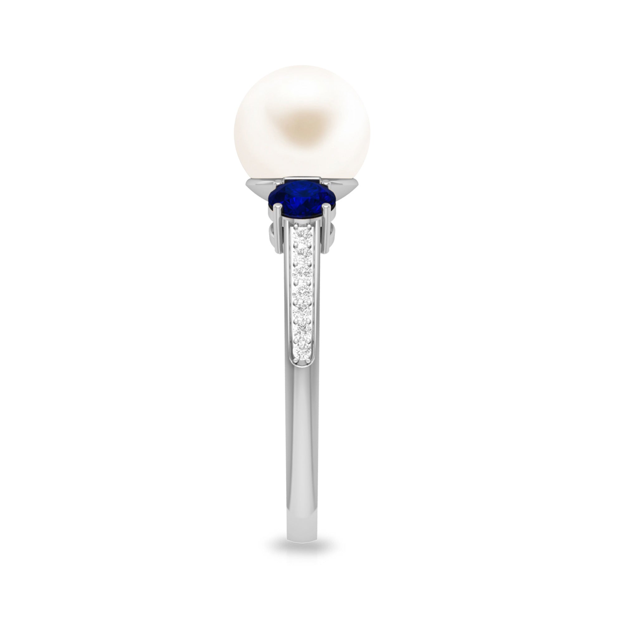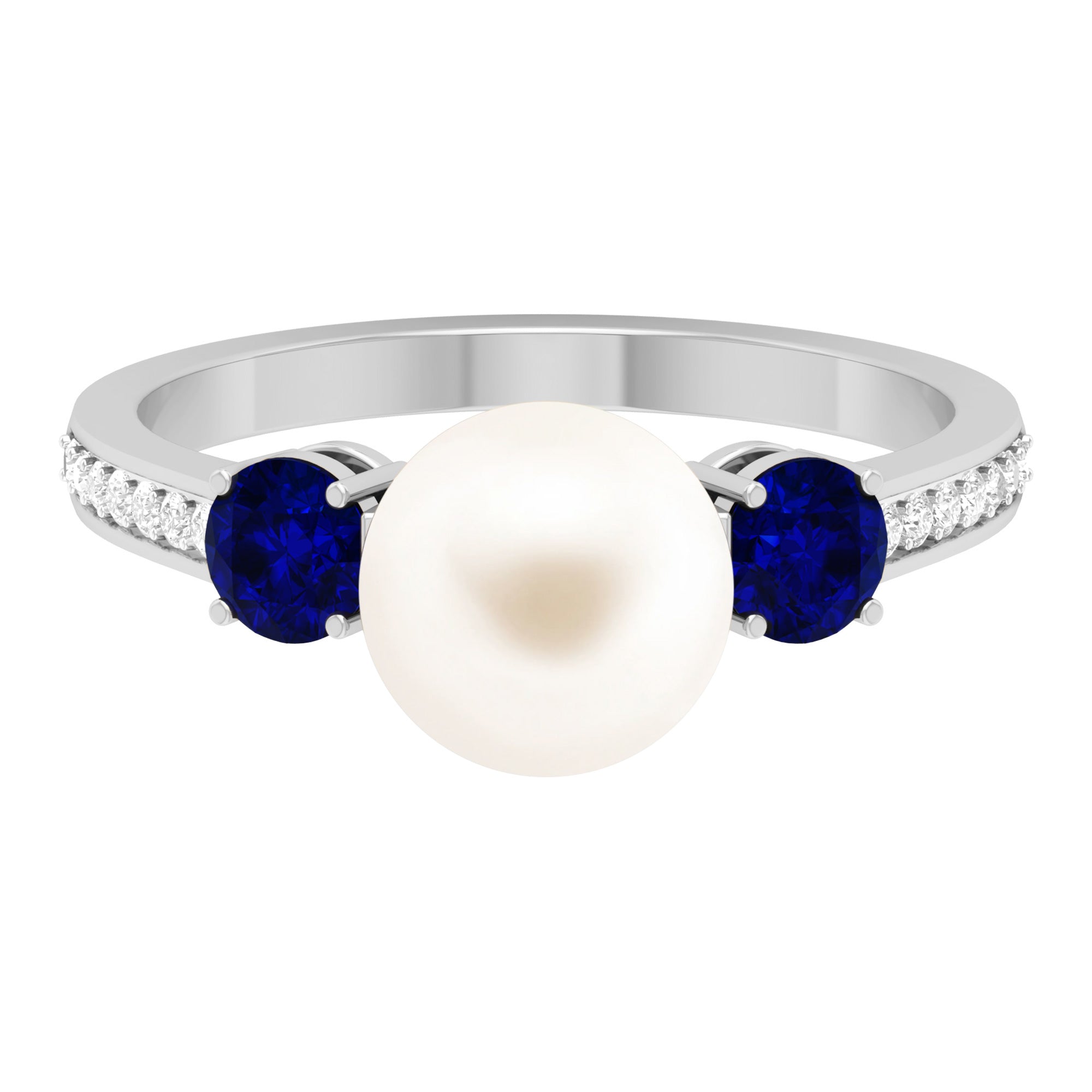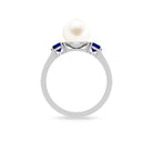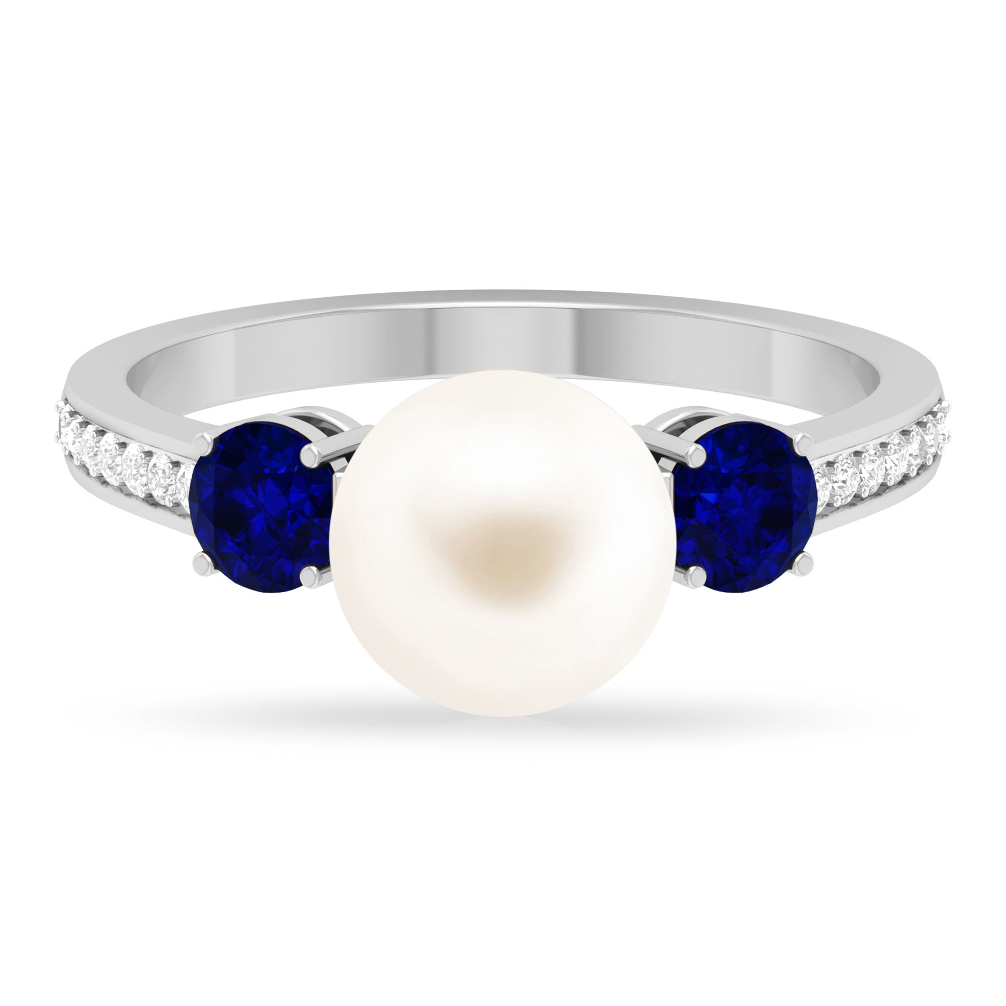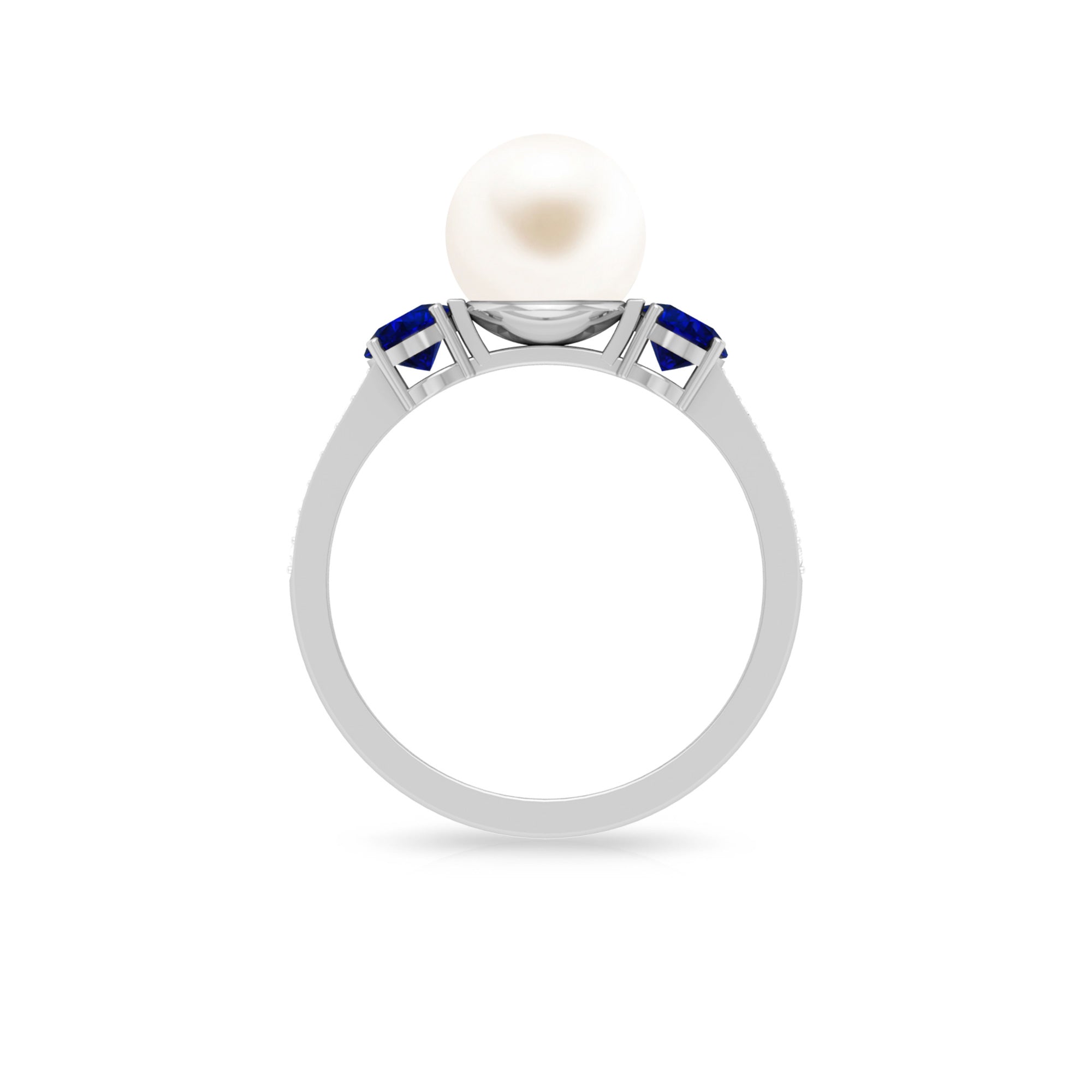 Freshwater Pearl and Blue Sapphire Engagement Ring with Moissanite