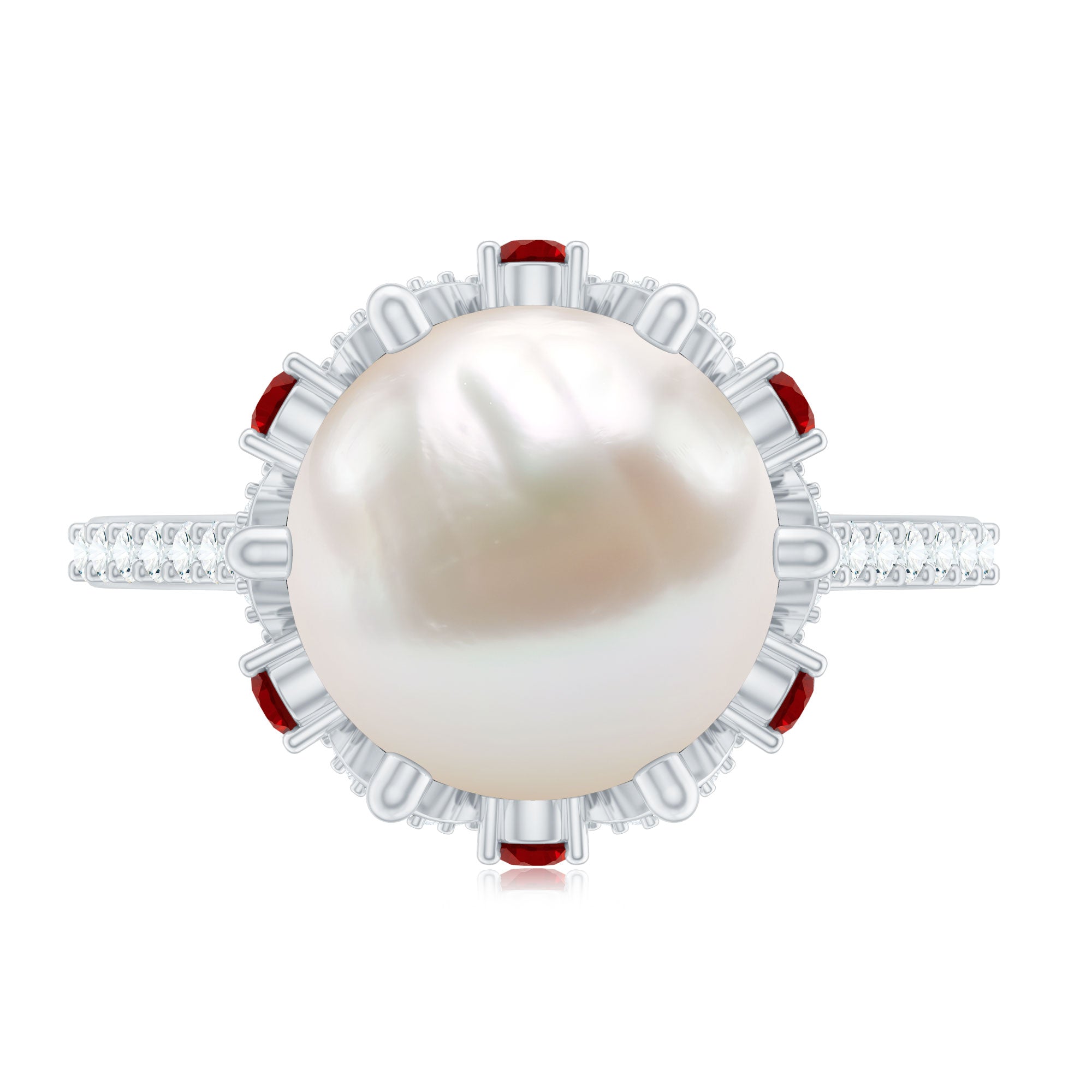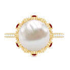 Freshwater Pearl and Created Ruby Cocktail Ring with Moissanite Accent