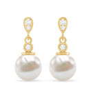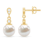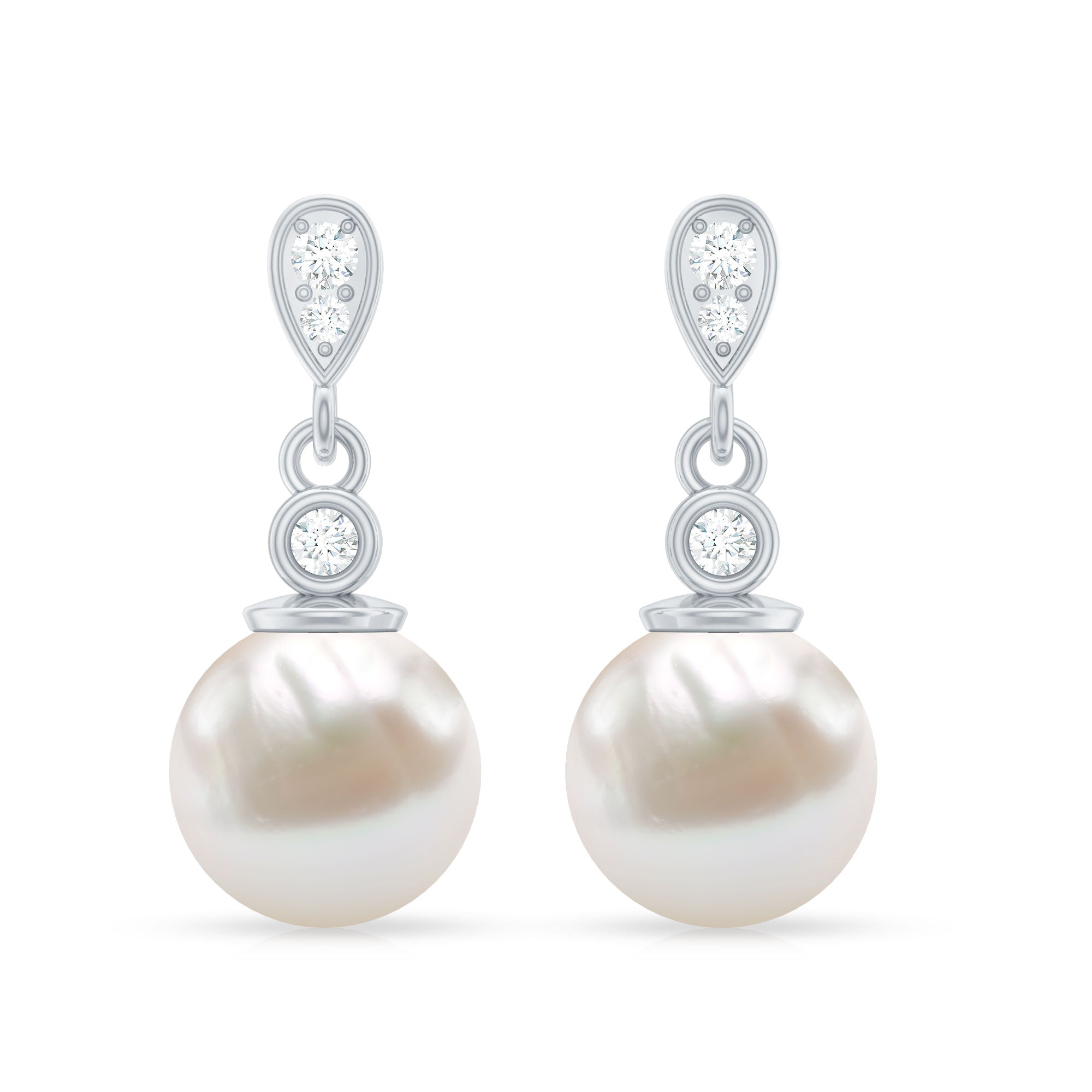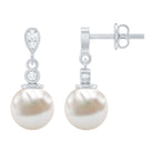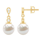 These lovely Drop Earrings are adorned with Freshwater Pearl and Round Shape Diamond stones to make for an elegant gift for your loved one. With the option to choose your preferred metal type, these white pearl earrings can be customized to suit your personal style.