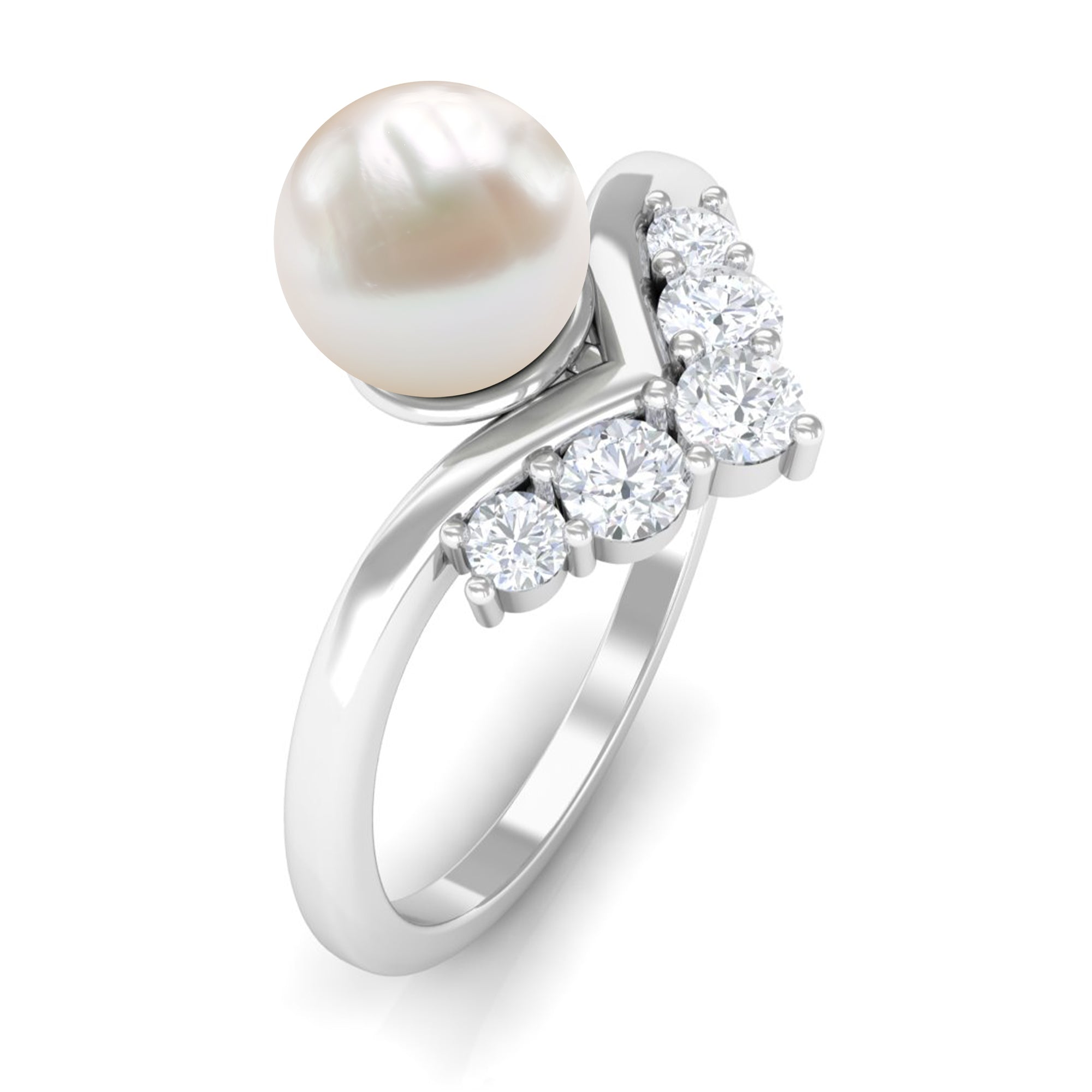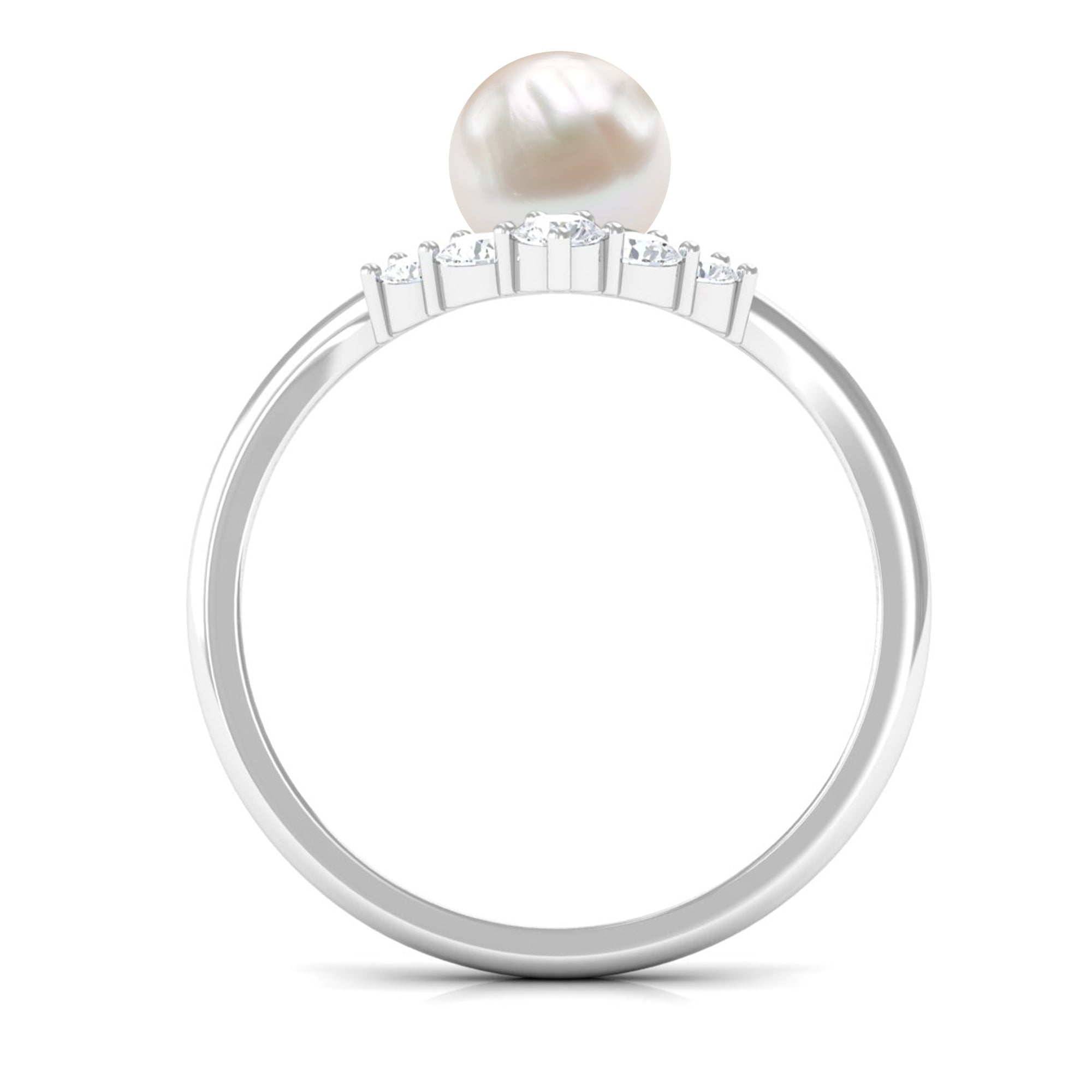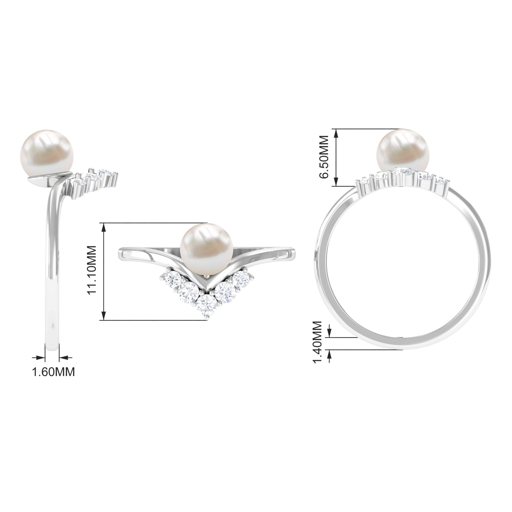 Freshwater Pearl and Diamond Minimal Chevron Ring