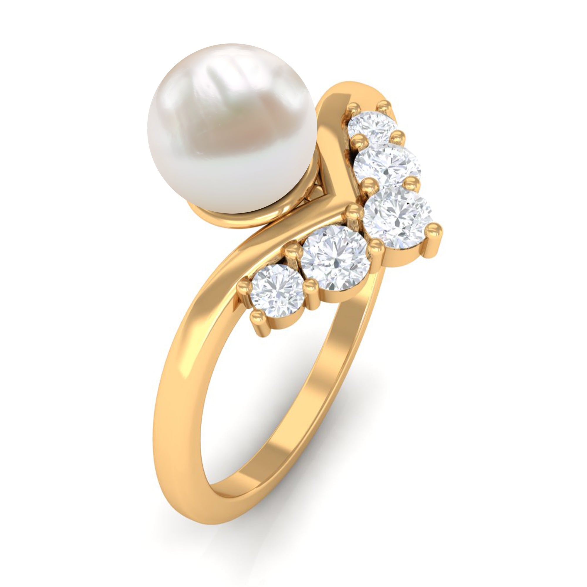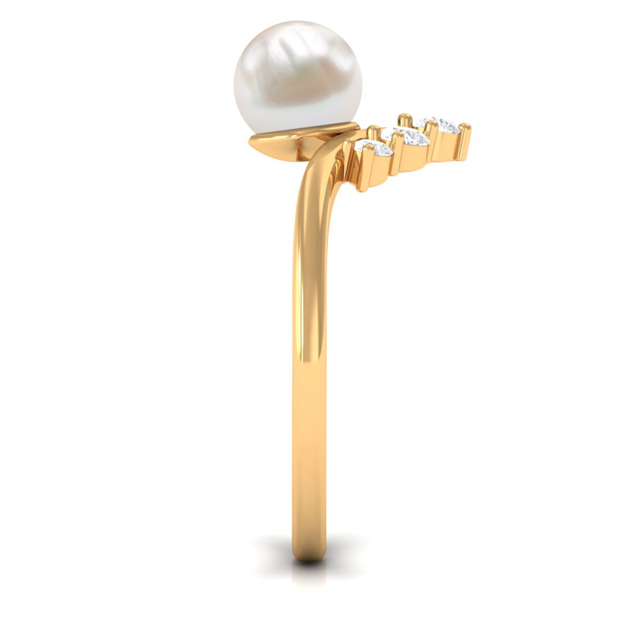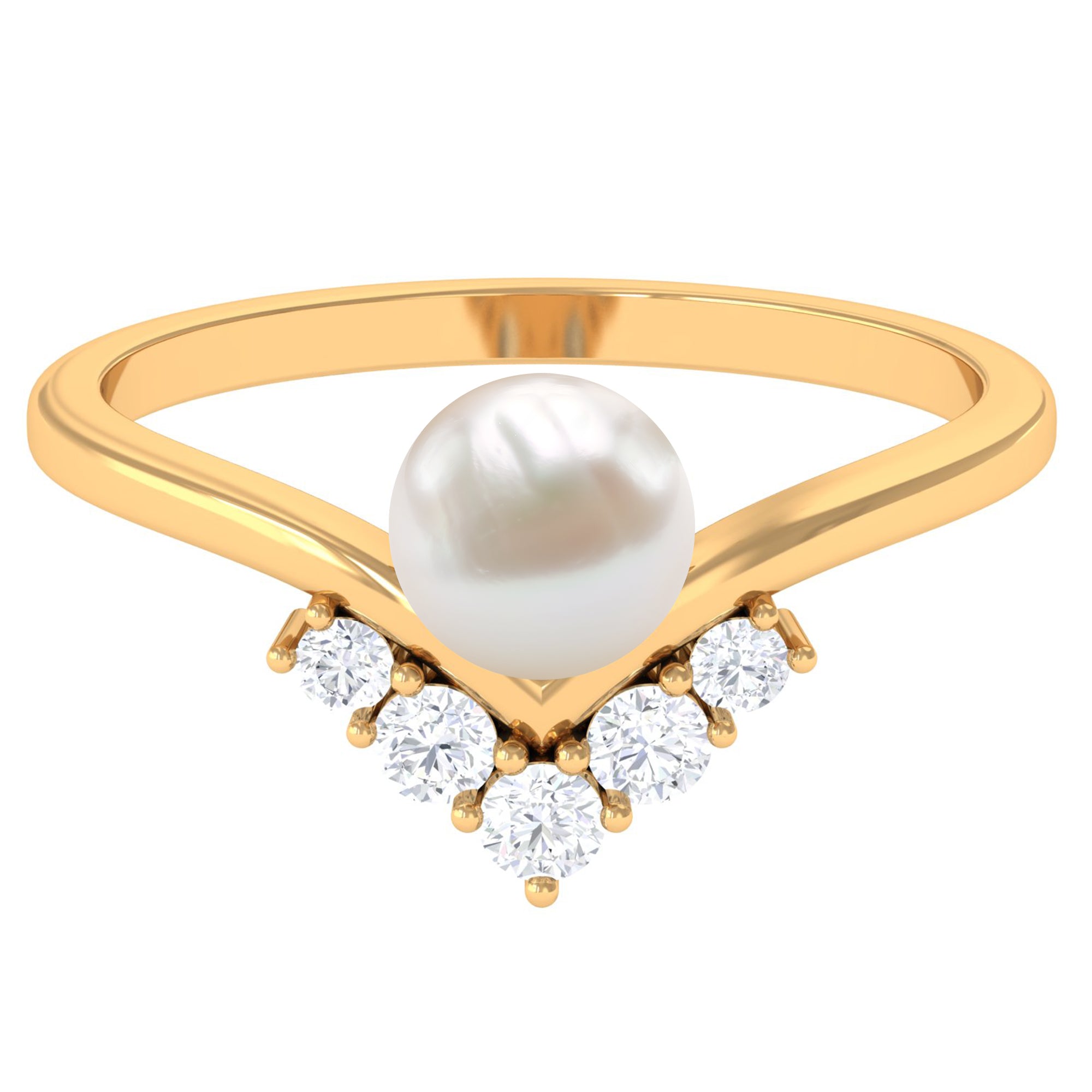 Delight your pretty lady with this Freshwater Pearl Chevron Ring, it is crafted in Gold for sumptuous look. Round Petite Diamond are arranged on the shank to add a touch of charm to this Pearl Minimal Ring. The White Pearl Ring creates a contemporary look to the wearer. Get this Gold Chevron Ring for your lady and impress her with your choice.