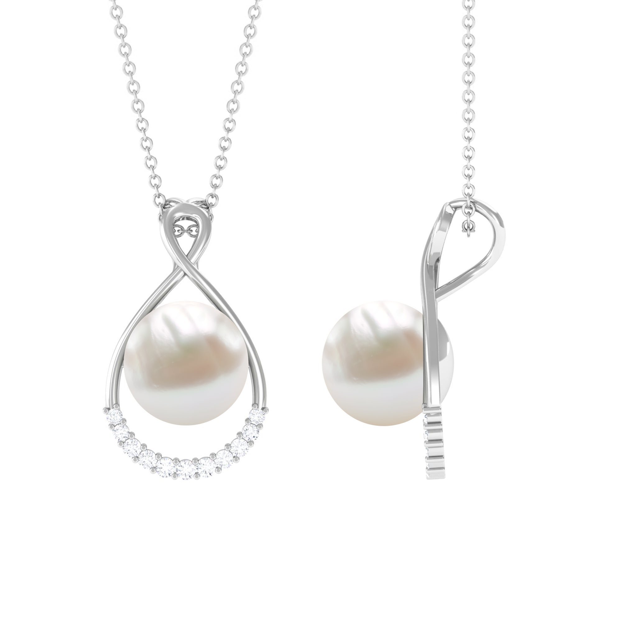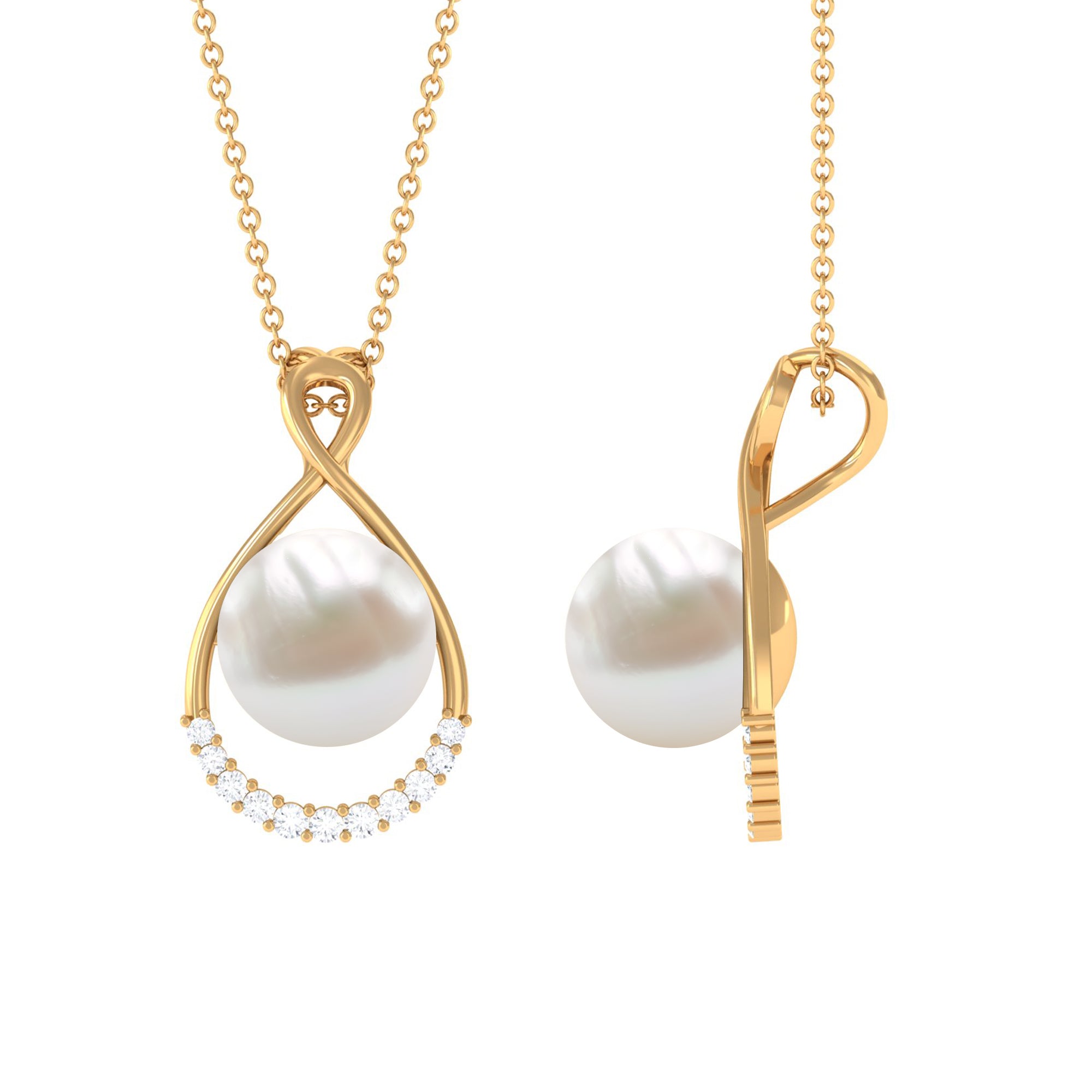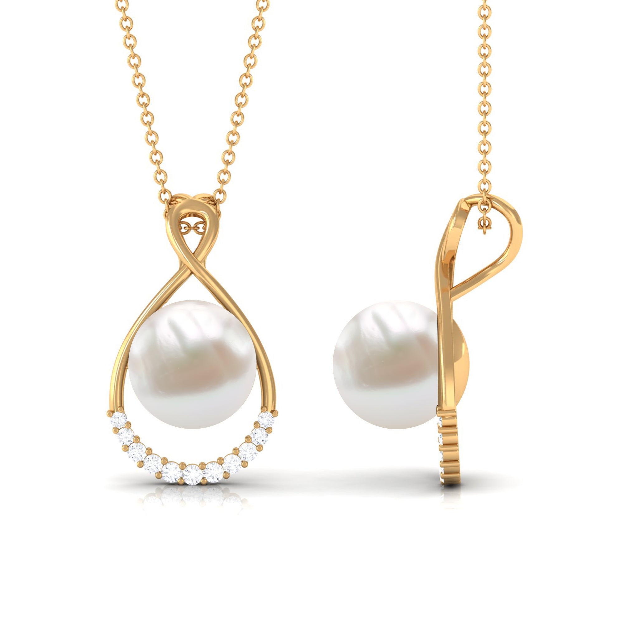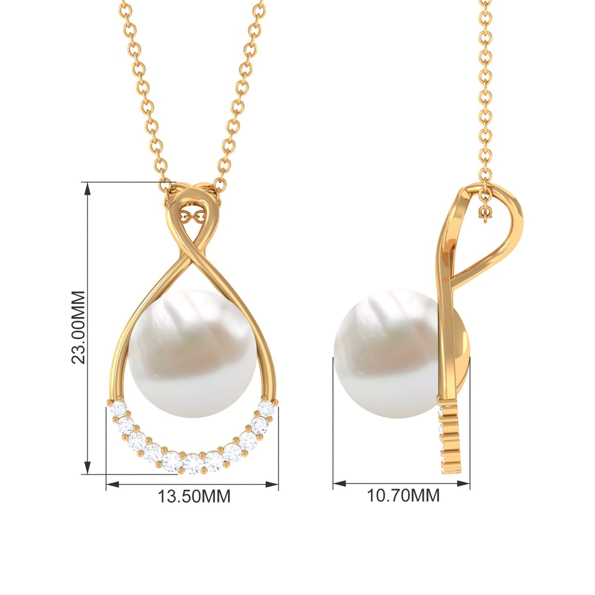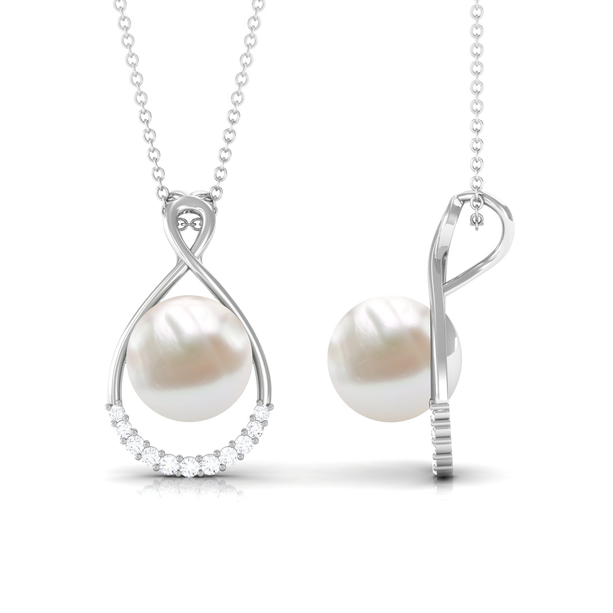This Solitaire Pendant will complement your attire effortlessly as it is embellished with Round Shape Freshwater Pearl and additional Round Shape Diamonds Accent. Get this Pearl Pendant and make her jewelry collection even more impressive by presenting it as a Birthday present. This Pearl Pendant Necklace will complement her unique personality.