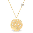 Express your personality with this meaningful Gemini Necklace studded with Round Shape Freshwater Pearl on the chain along with Round Shape Diamond in Pave Setting. This Zodiac Pendant Necklace works like a stylish lucky charm for June born ladies.