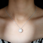 Get this Flower Pendant Necklace for your loved ones as it is embellished with Round Shape Freshwater Pearl and Round Cut Moissanites assembled in a Floral Design. Flaunt this Pearl Pendant Necklace with your casual or dressy attire for an enchanting look. This Floral Pendant Necklace makes a wonderful present for her.