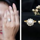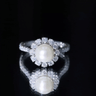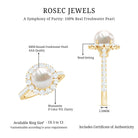 The Glittering Halo of Moissanite is accentuating the Freshwater Pearl in an appealing way. This White Pearl Engagement Ring gives a touch of an aesthetic flower. This Freshwater Pearl Engagement Ring is a piece of fine jewelry, it is a must-buy Pearl Ring.