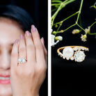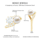 Get this breathtaking Cocktail Ring for your lovely wife and show her your love. This Two Stone Ring features 7 MM Freshwater Pearl and Moissanite over the Bypass Shank studded with dainty Moissanite gemstones. She will flutter with love and joy and will always keep this Pearl Ring close to her heart.
