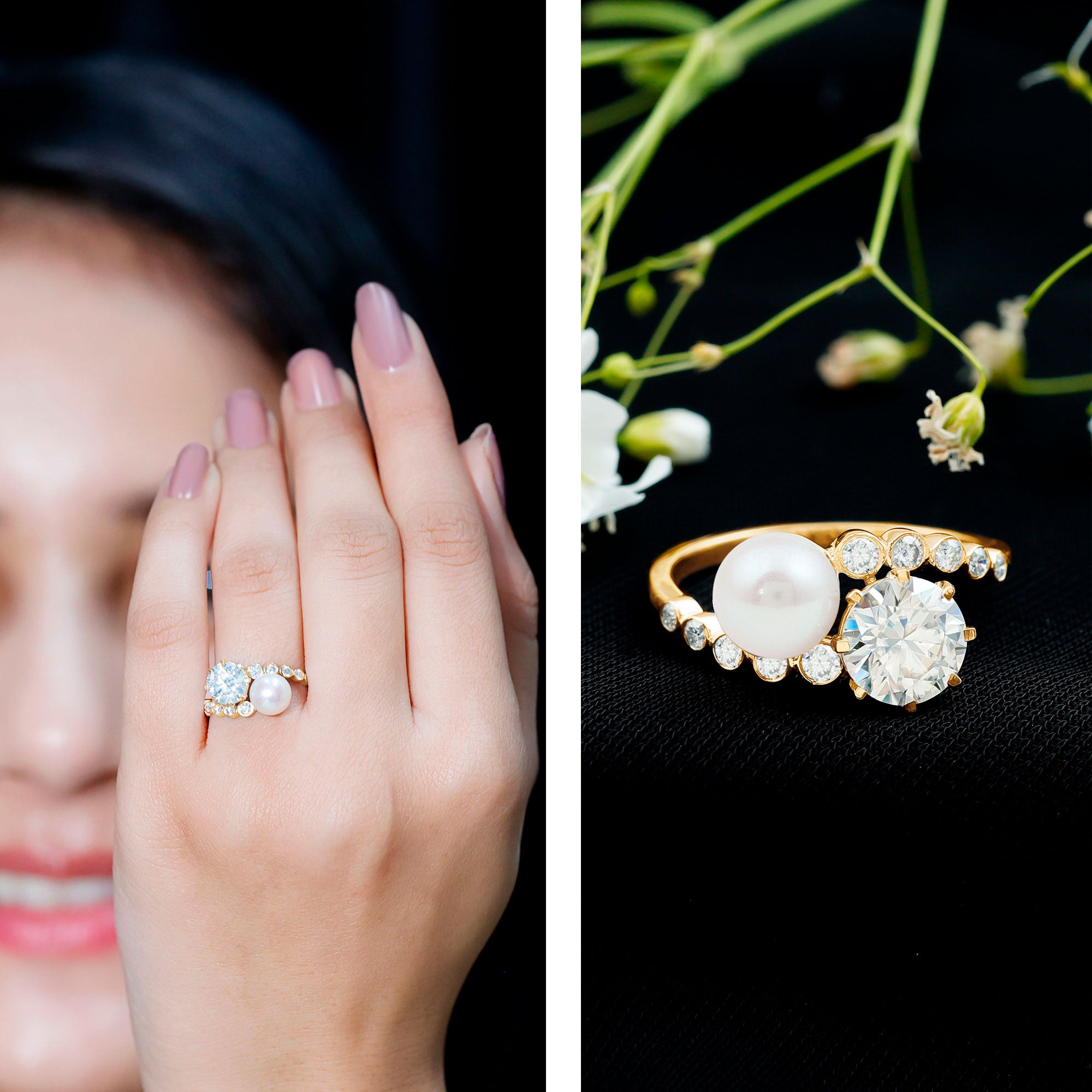 Freshwater Pearl and Moissanite Toi Et Moi Cocktail Ring