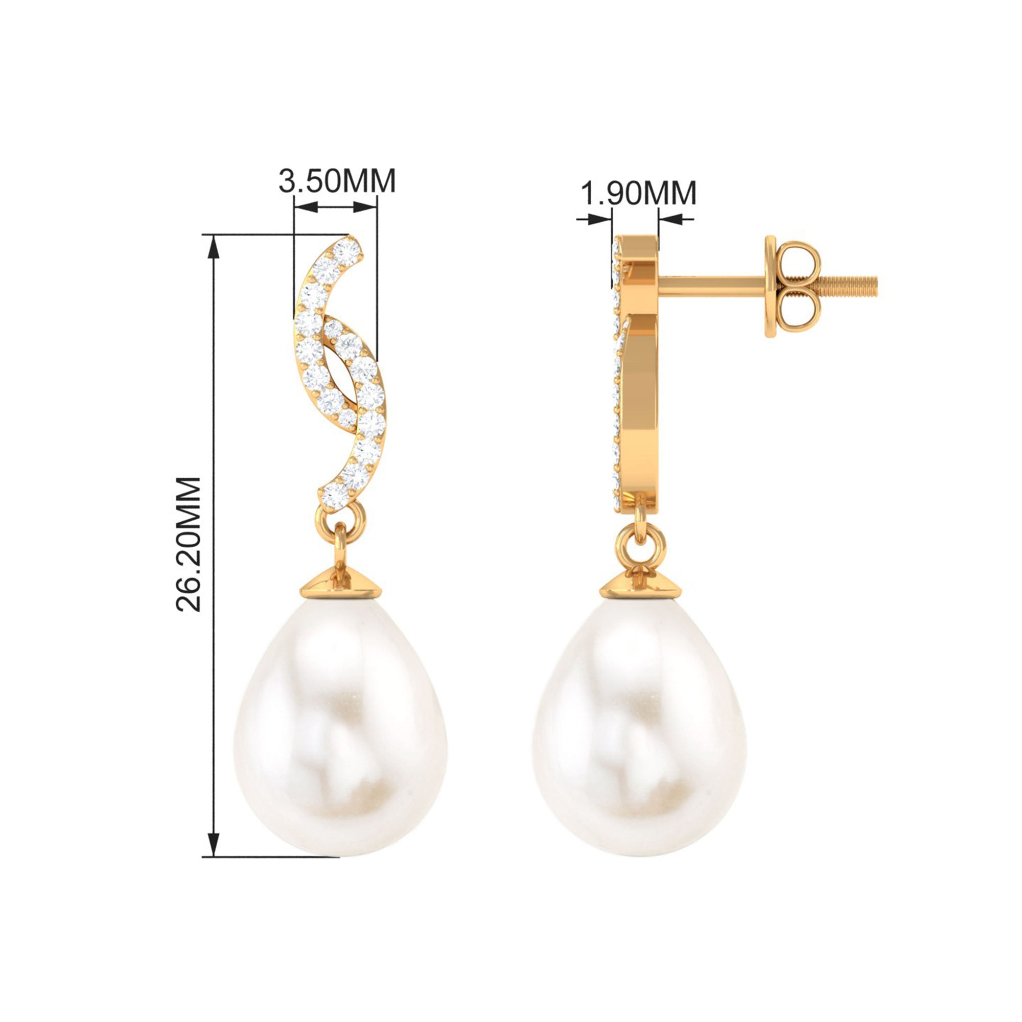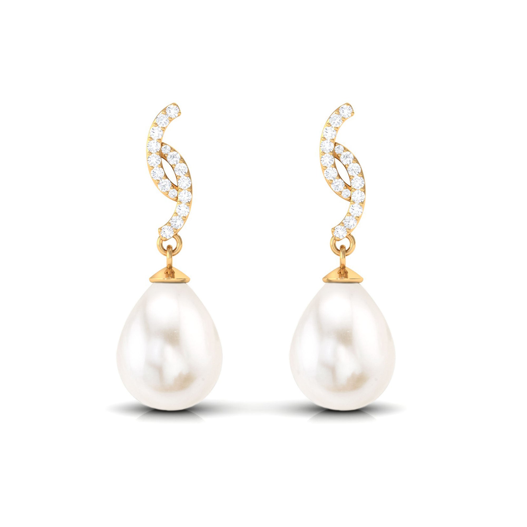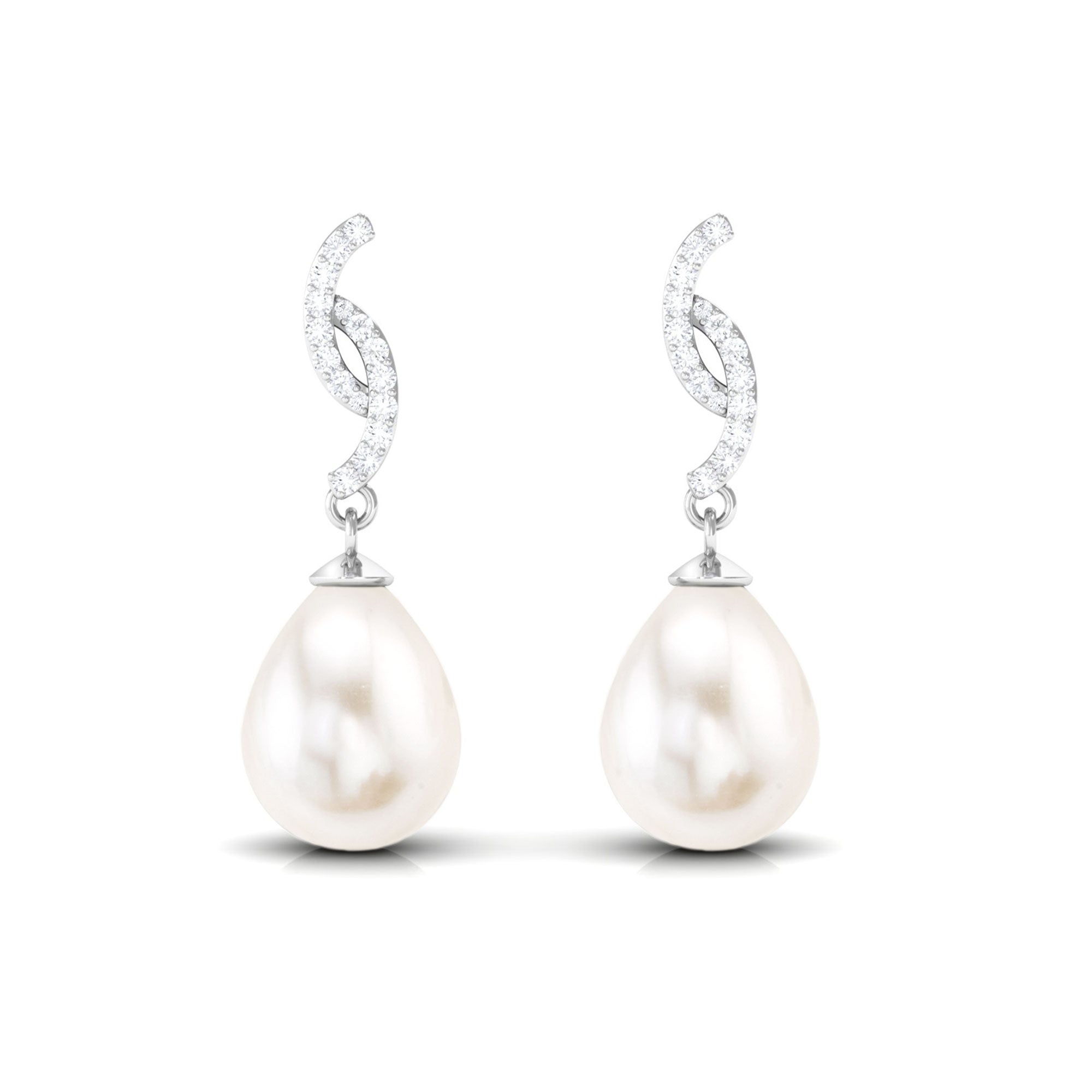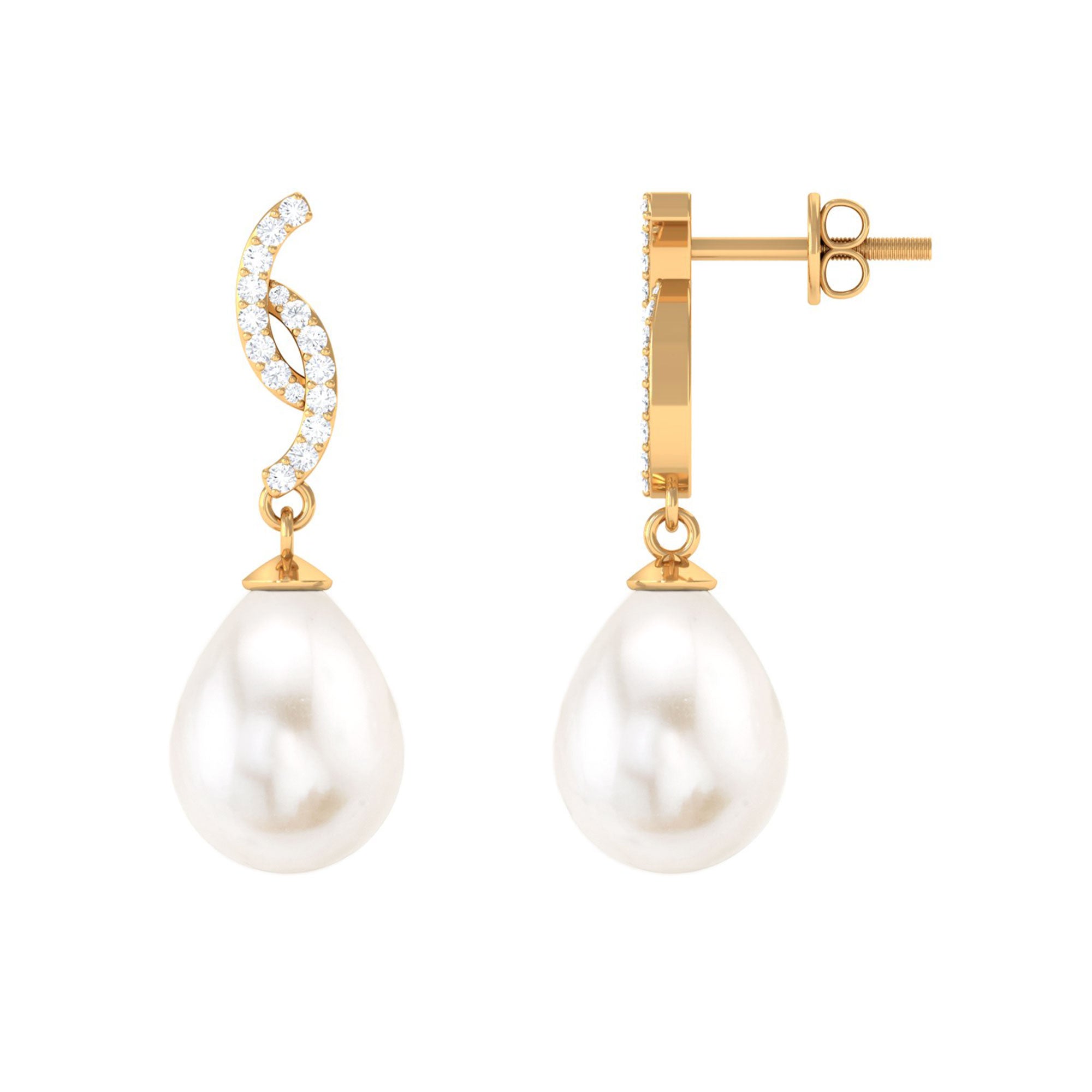 Elevate your style with these contemporary Drop Earrings, featuring a drop shape Freshwater Pearl and round Diamond Accent that adds a touch of glamour and sophistication. These pearl earrings are crafted with exquisite attention to detail, and the combination of pearls and Diamond stones creates a timeless and elegant look that is perfect for any occasion.
