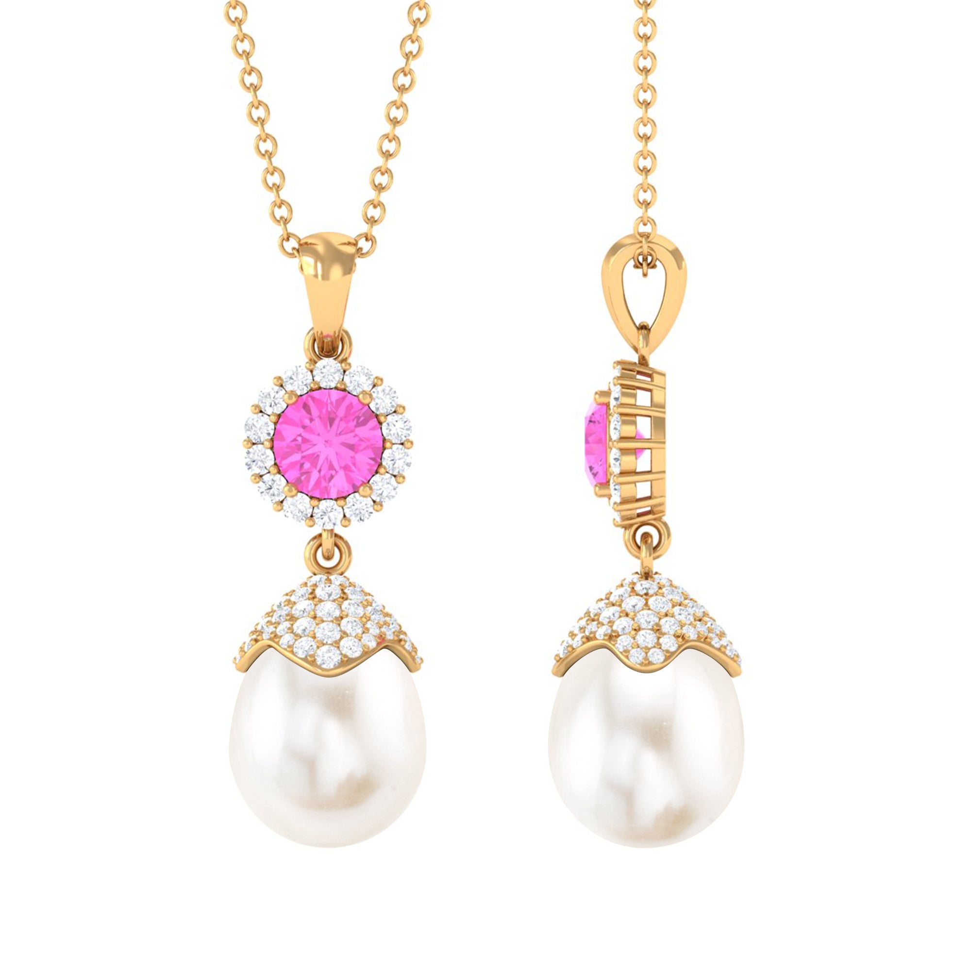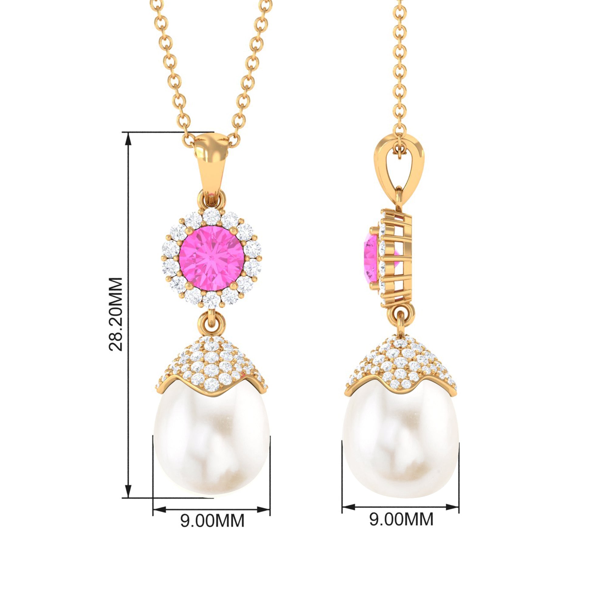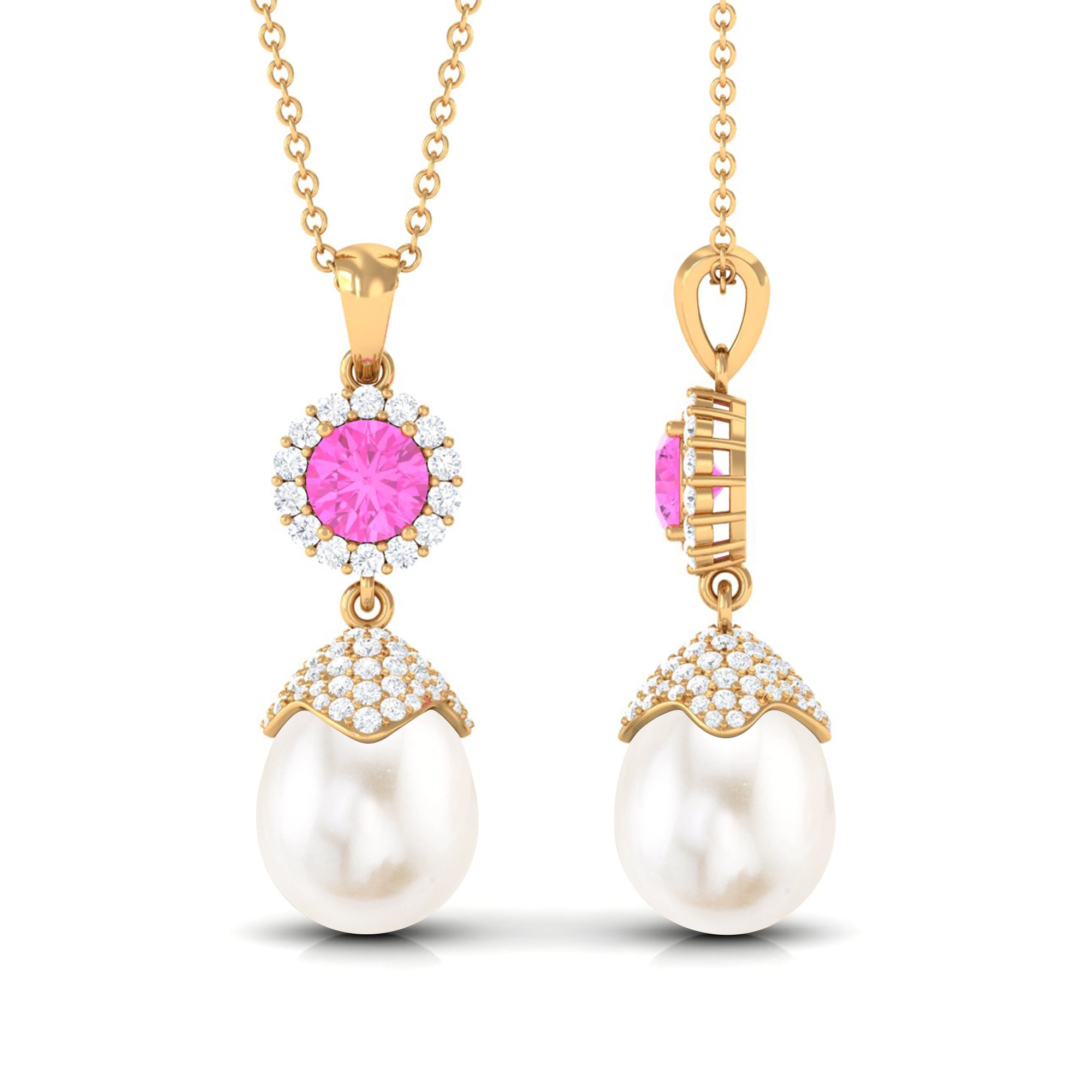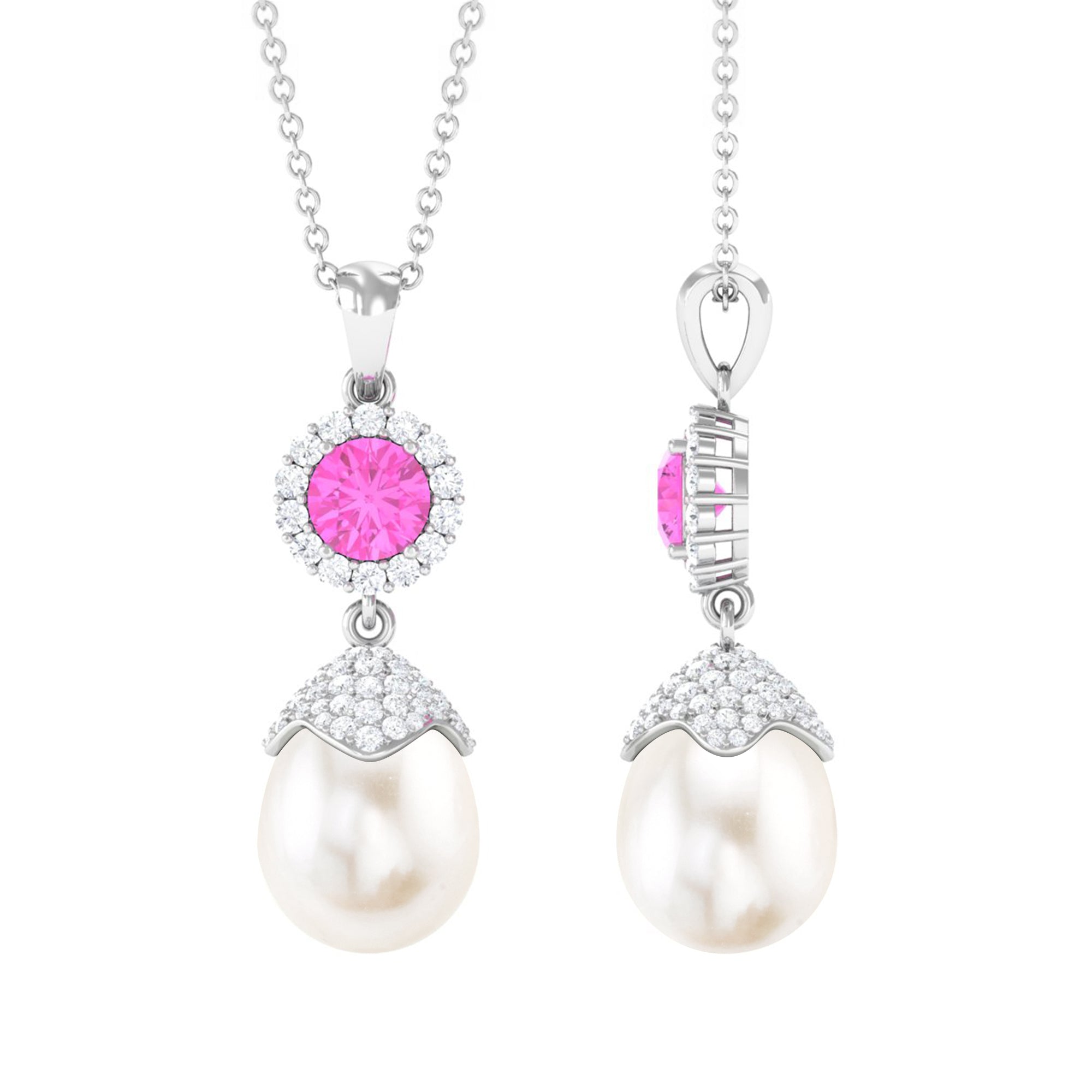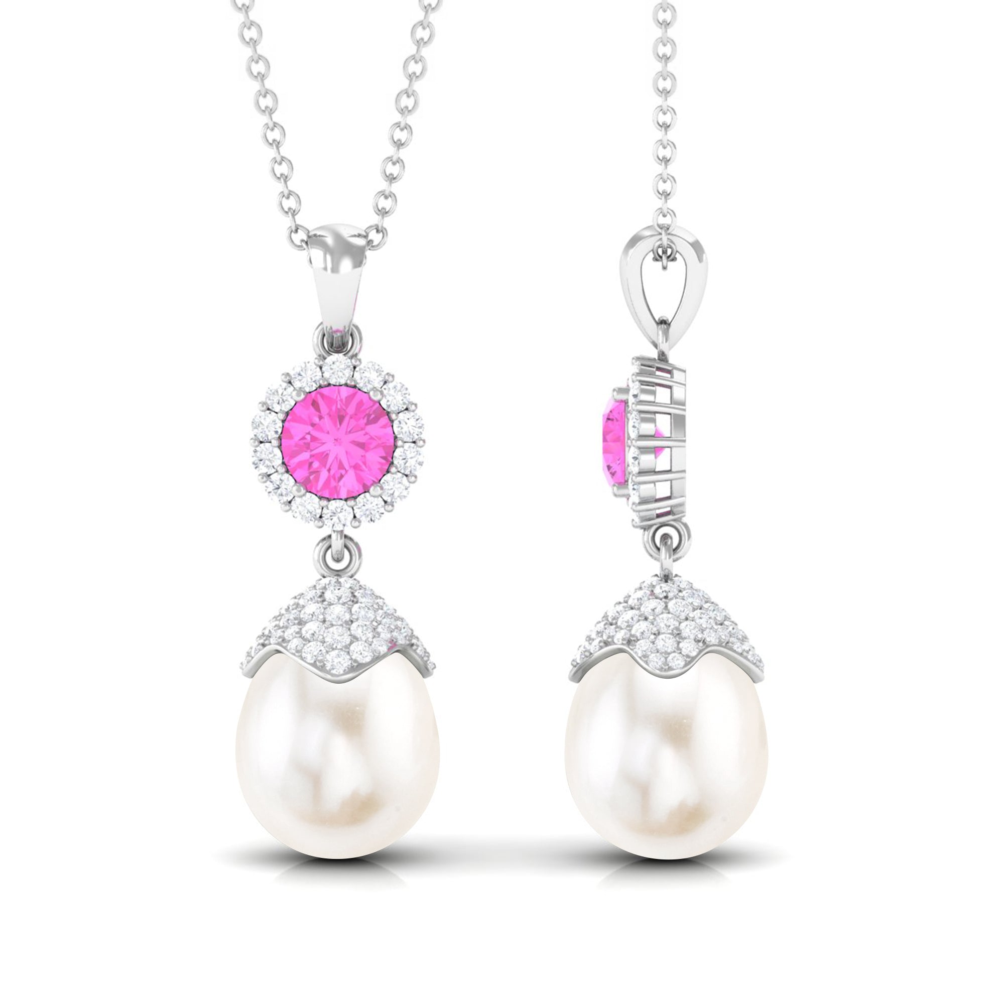 Freshwater Pearl Designer Drop Pendant with Pink Sapphire and Diamond