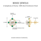 Grab these amazing Halo Stud Earrings embellished with Round Shape Freshwater Pearl secured by Bead Setting and dainty Round Diamonds and Lab Grown Emerald studded as Halo. Look charming no matter where you are heading, out for a coffee, or a party with your best friends when you wear these Pearl Earrings. Make her Christmas wish come true by getting her a precious pair like these Freshwater Pearl Earrings as a christmas gift.
