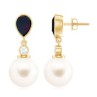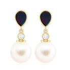 Freshwater Pearl Drop Earrings with Black Opal and Moissanite