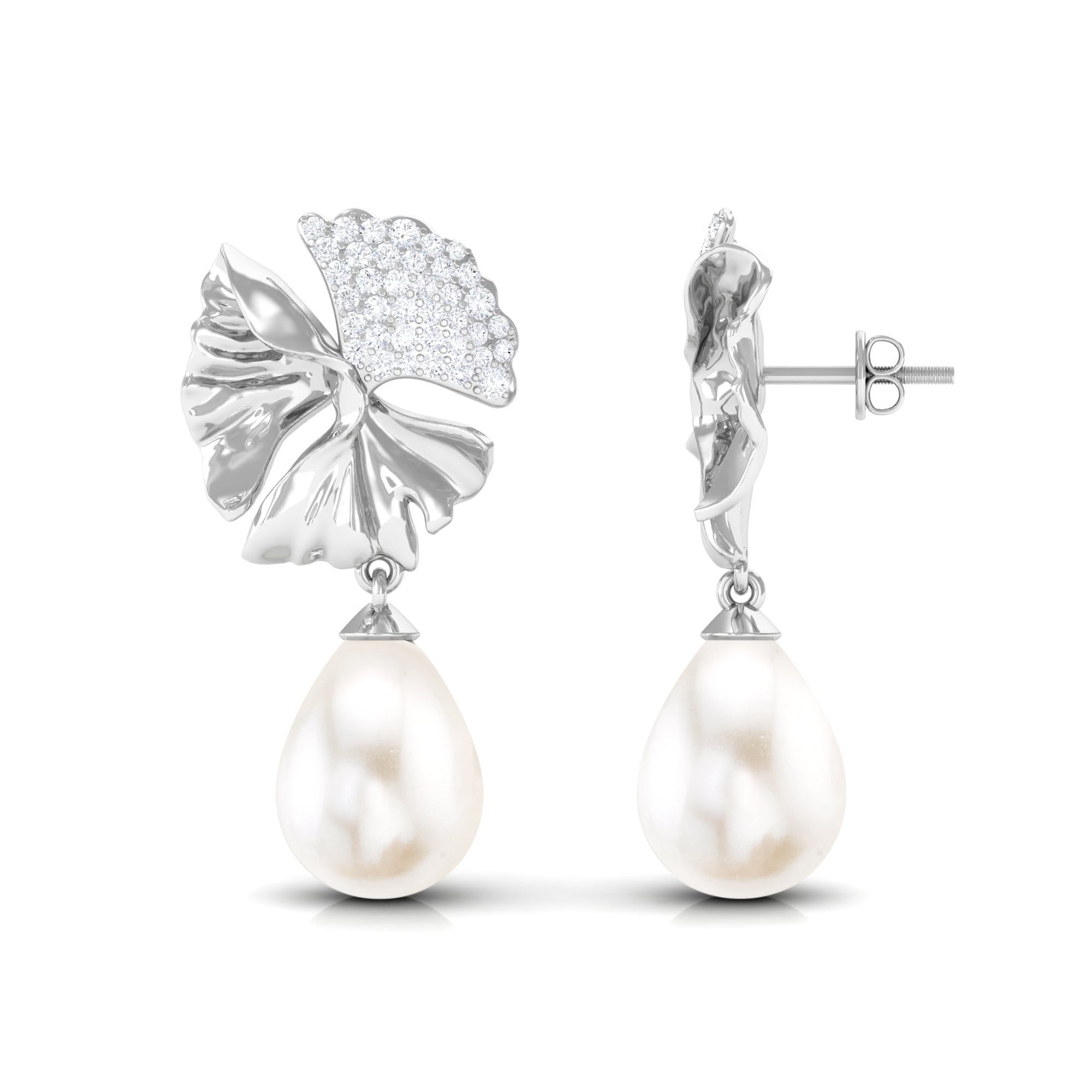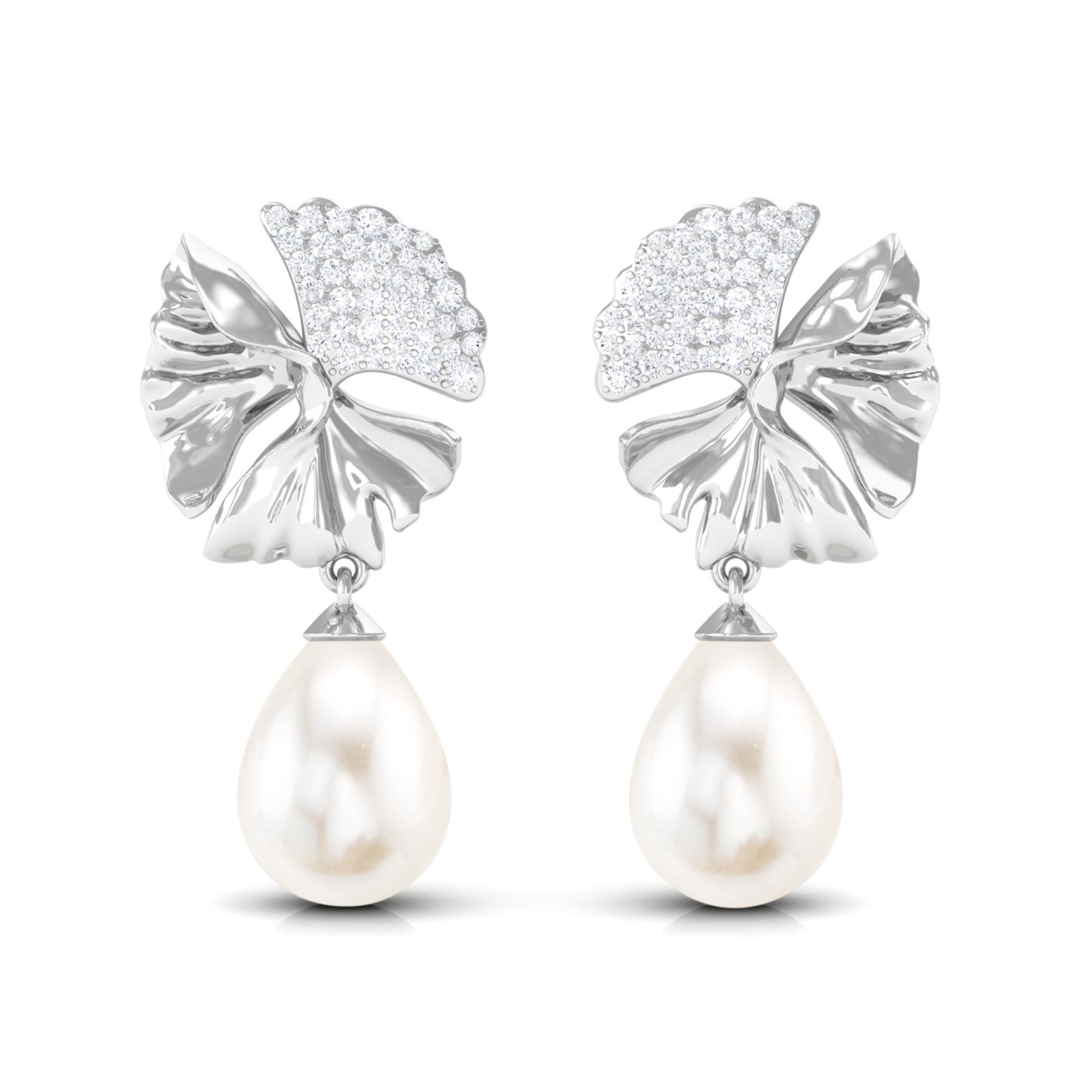 Freshwater Pearl Drop Earrings with Moissanite Accent
