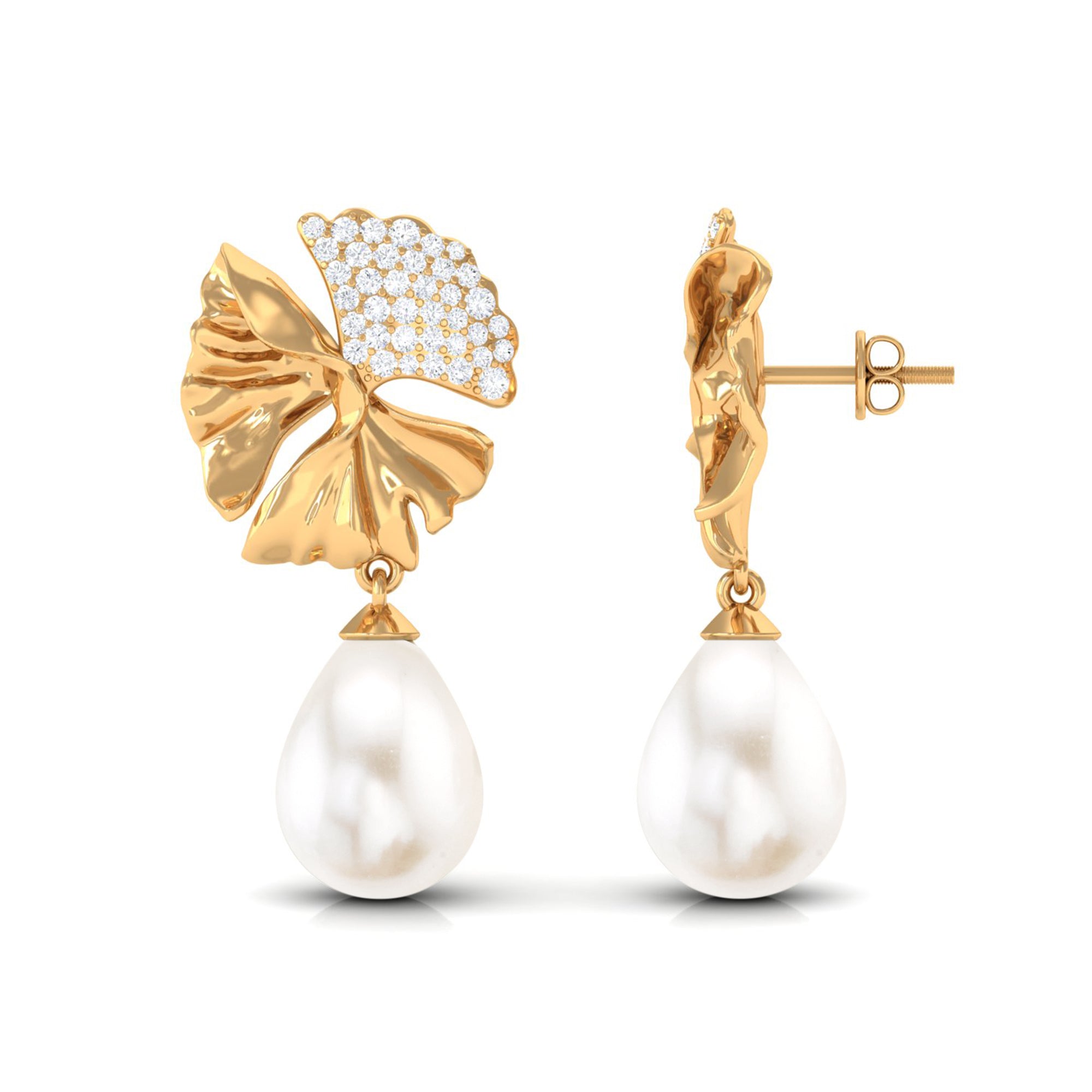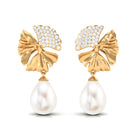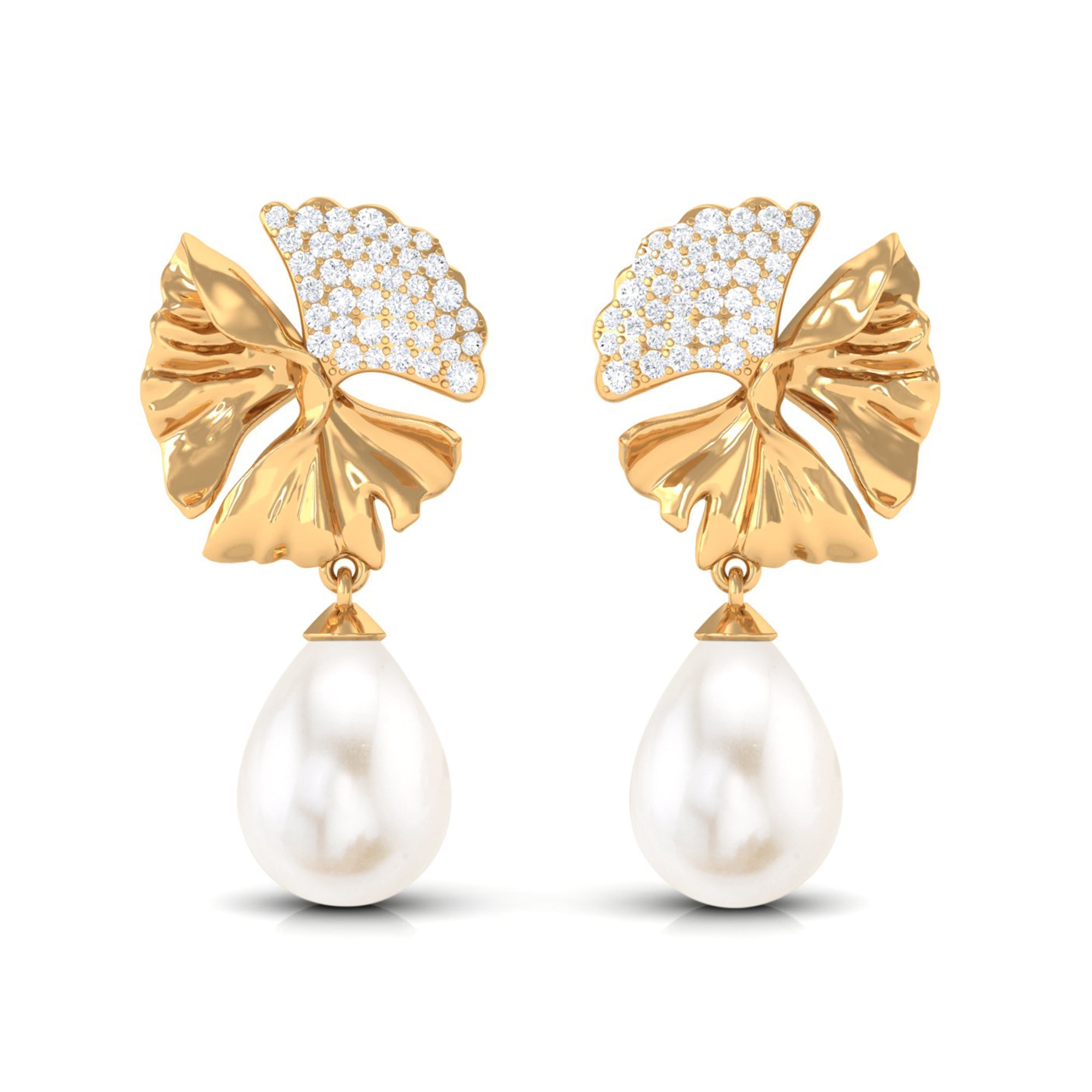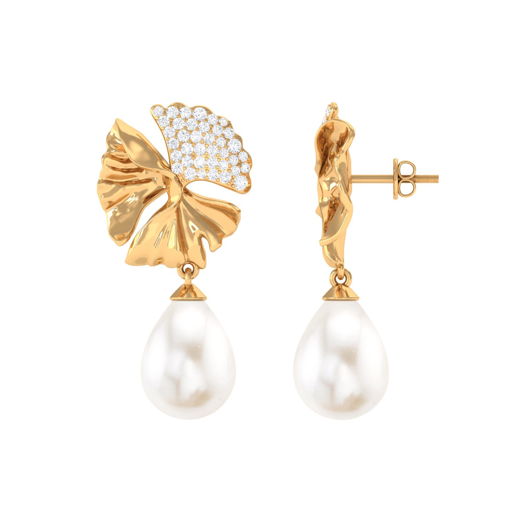 Embrace the exquisite allure of our Freshwater Pearl Floral Earrings, adorned with Moissanite on a flower motif, perfect for diva-like elegance.